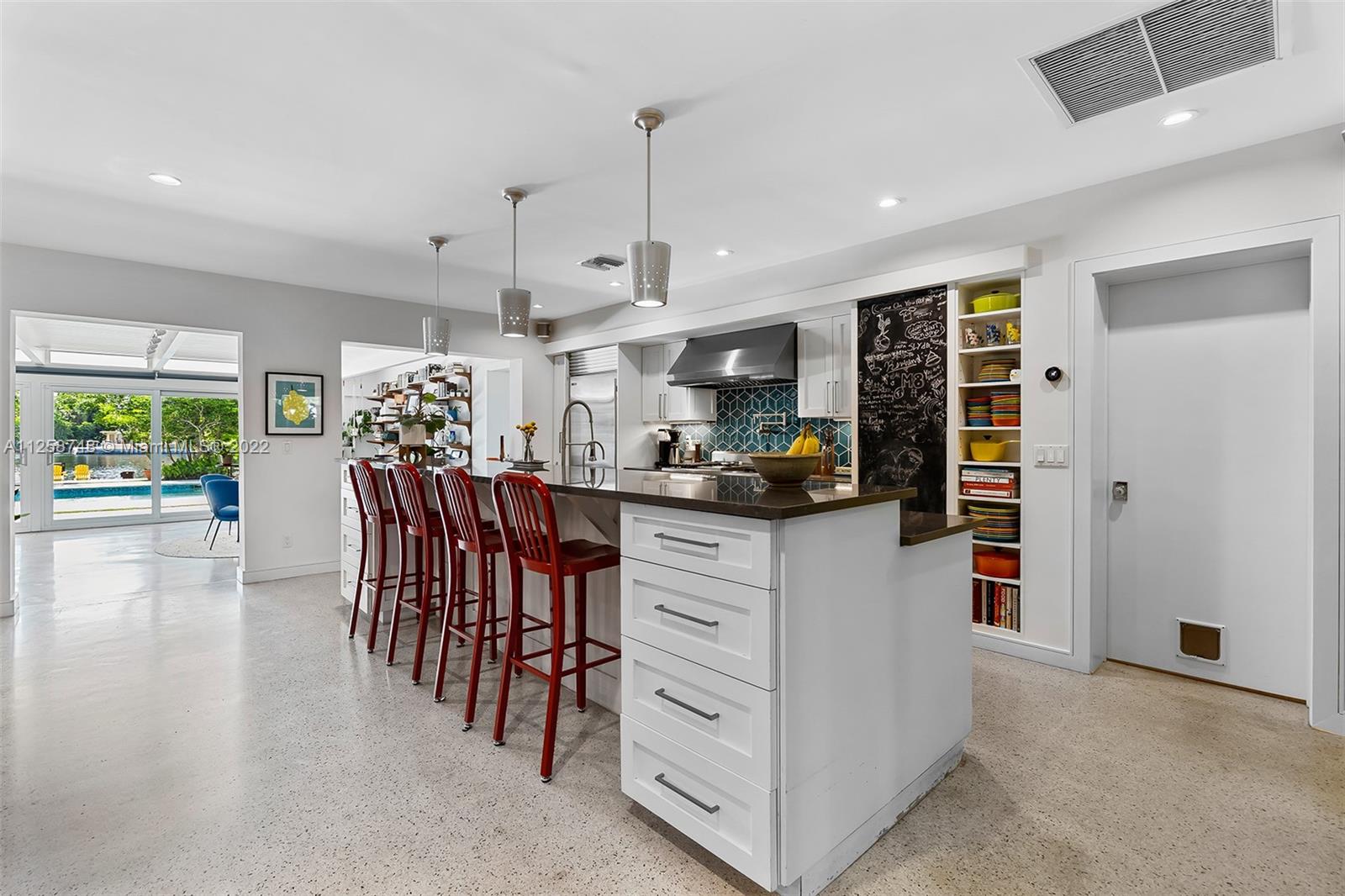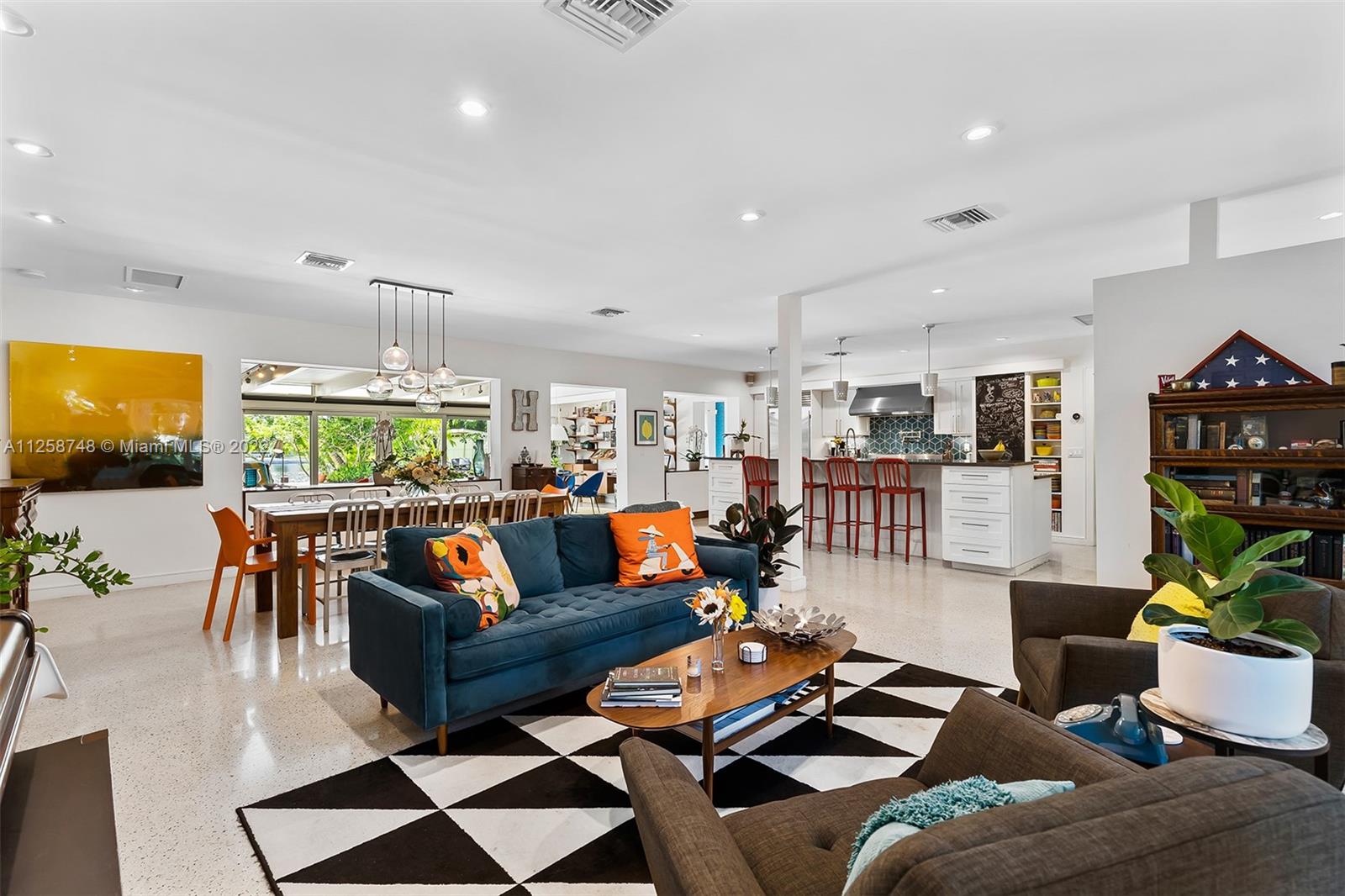 Beautiful, waterfront mid-century modern house on a 15,000+ square foot lot. With a view of downtown on one of the widest parts of the Middle River, this location has it all. In one of the most desirable school districts, you can enjoy bike rides (or walks for the ambitious) to the beach, and the watersport section of the Middle River directly behind the property. The house was fully renovated in 2013. The open floor plan is perfect for entertaining, and upon entering the house you are greeted with a view of the river. A spectacular Black Mahogany tree in the front courtyard shades the house in the mornings, and the enormous back yard has fantastic sunset views of the Middle River. A property you must see to fully appreciate. A true mid-century masterpiece on Middle River Drive.