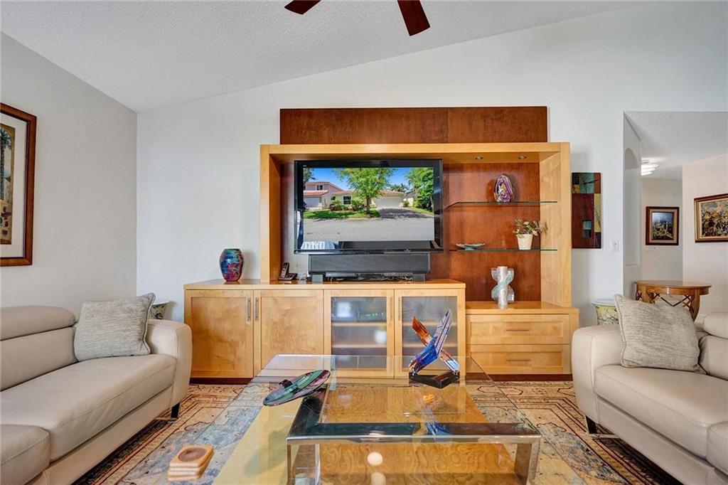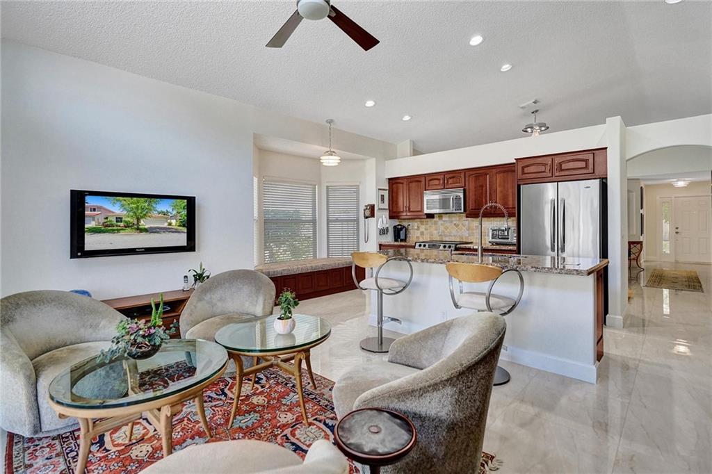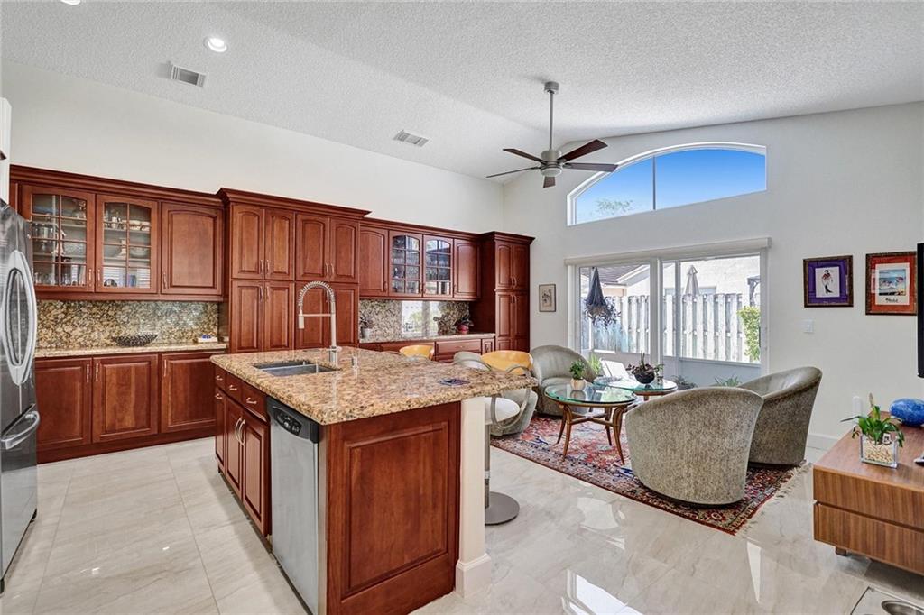 Buy this "Oakridge favorite"! Redwood model w/ 3 bedrms, 2 baths. Lg open floor plan, impact windows, new porcelain floors, Hi ceilings, screened patio & 2 car garage. Spacious & bright Liv. Rm & Din. Rm. Great for entertaining & Holiday celebrations. Walk thru to the enormous Kitchen/Family room. Wall to Wall custom cabinets. SS appliances, Center Island, Bay window w/ built-in bench. Enjoy cooking or watching TV. Visit the spacious Master suite w/ its large walk-in closet & luxurious Master bath w/ sep. tub & Shower. The 2 additional Bedrooms & Bath are in their own wing. One is being used as an office. Guard gate, Tennis & other Sports, E-Z walk to Houses of Worship. Near I95, Turnpike, Airport, Beaches. Come see this fabulous home. You'll love it. Don't miss this great opportunity!