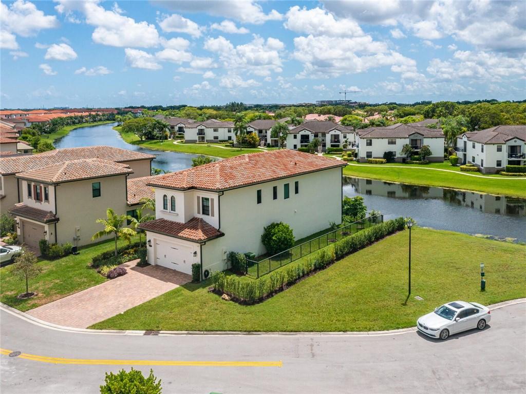 4 bdrm 3 bth + loft (can be converted to 5th bdrm) w/ 1 brm/1bth on the 1st flr.. This beauty sits on a beautiful cul-de-sac lake lot w/ an open green space on one side. Sought after Raintree development, a gated community. This home is a lovely, bright, open, contemporary & is in excellent condition boasting w/ hurricane impact windows & doors, tile floors, beautiful kitchen w/ wood cabinets, Quartz Counters, SS GE Profile appls., eat at island & walk-in pantry. Other features include laund. rm w/ washer & dryer, covered patio & private fenced yard. The Primary suite boasts his/hers walk-in closet, large windows, balcony & beautiful bath w/ dual vanities, Quartz counters, soaking tub & walk-in shower w/ frame-less glass. Driveway fits 4 cars. Community clubhouse, pool, playground & gym.