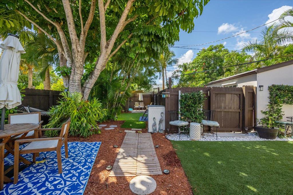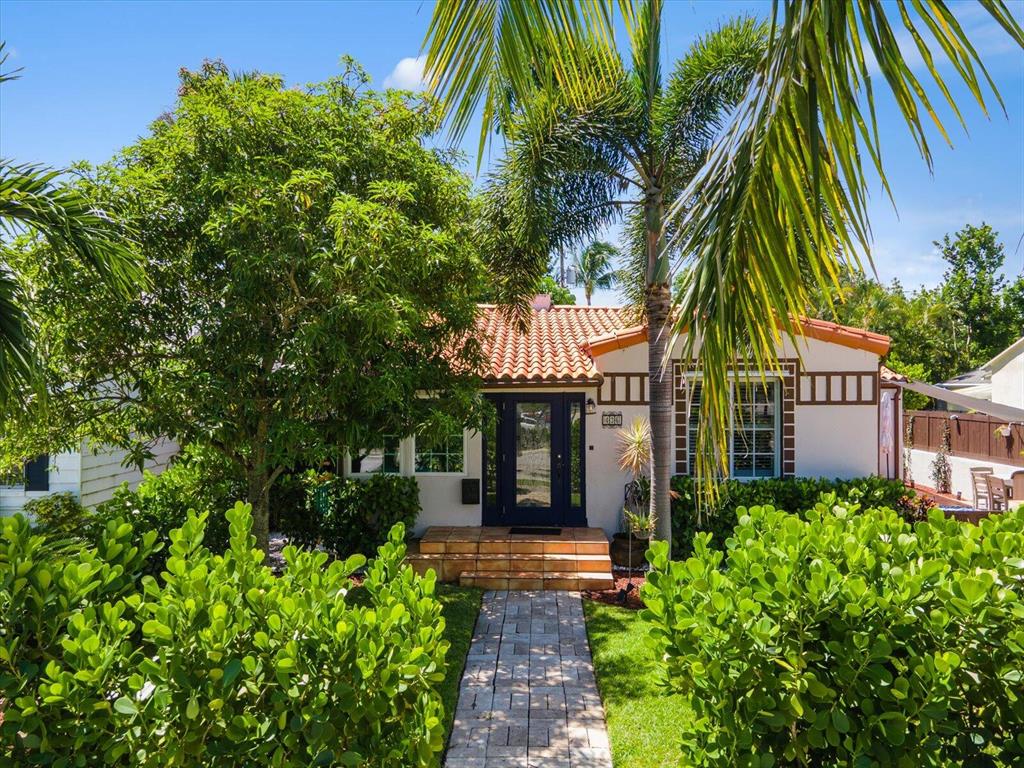 Charming 3/2 home with real wood floors, granite countertops, stainless steel appliances, crown molding, plantation shutters, closets in all bedrooms, and new impact doors and screen doors. The exterior boasts a barrel tile roof, new brick driveway, fruit trees, tiled side patio, and large fenced in backyard with a gazebo covered travertine patio, turf, lush landscaping, and shed. The property also includes a studio + 1 bath guest cottage perfect for short term rentals with lofted bed, brand new window A/C unit, and private patio, alleyway entrance, and parking spot. Property is located in Northboro Park Historic District, just steps away from Rybovich Superyacht Marina and (under construction) Icon Marina Village.