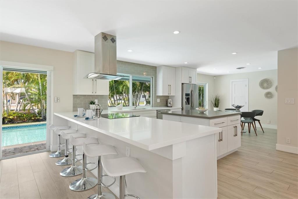 The Perfect 10--Stunning remodeled 3BR/3BA/2CG/75' waterfront MODERN pool home is perfectly positioned on a cul-de-sac street in Coral Ridge Isles. Beautifully designed open floorplan features: Chef's eat-in kitchen w/ tremendous island, bkfst bar & cabana bath. Luxurious master suite: WI closet, dual sinks, glass shower. Floating vanities. Spectacular views of the sun-drenched, saltwater pool, wide canal & impeccable landscaping (offering the ultimate privacy). NEWER: WHOLE HOUSE GENERATOR, roof, impact windows/doors, garage door, cabinetry/appliances, wood-plank tile, dock decking (w/ water, electric & whips), hot tub, landscape lighting, concrete driveway, fence, gutters. Laundry room under air w/ storage galore! Minutes to beach, 3 Int'l airports, restaurants, etc. Steps to Pinecrest.