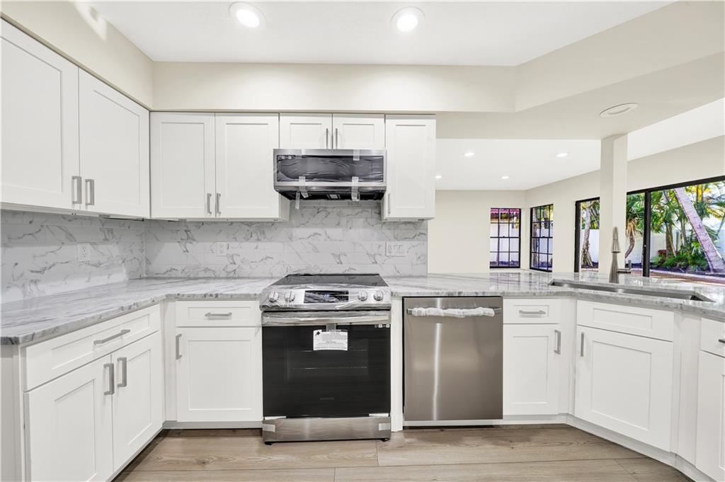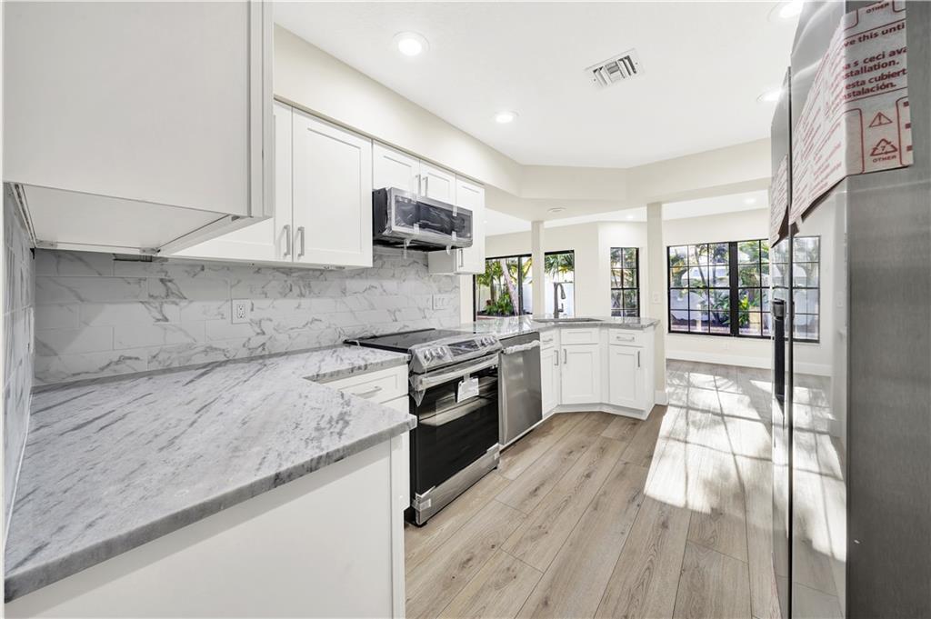 Beautifully presented Single Family Home in a gated Central Boca Raton Community. This home has many features including; New Roof (tiles on back order) with 7 year warranty, Shaker White Kitchen Cabinetry, Quartzite Counter-tops, modern backsplash, Stainless Steel Appliances with 12 month warranty, waterproof vinyl flooring throughout, oversized 3 Car Garage, modernly designed bathrooms, Dual Zone AC's, community pool, central vac, and a private backyard with garden views. Location is second to none; close to high-end retail shops, fine dining, major highways, and some of the best public schools around.