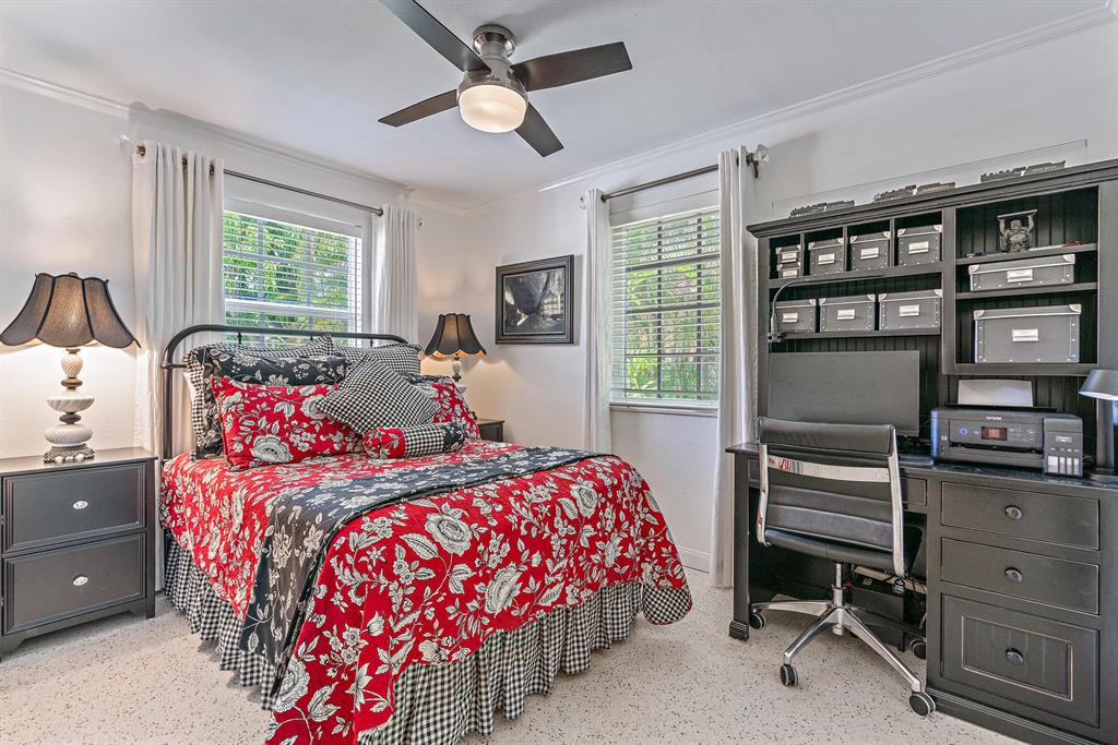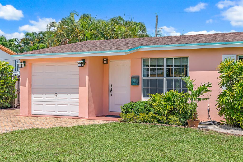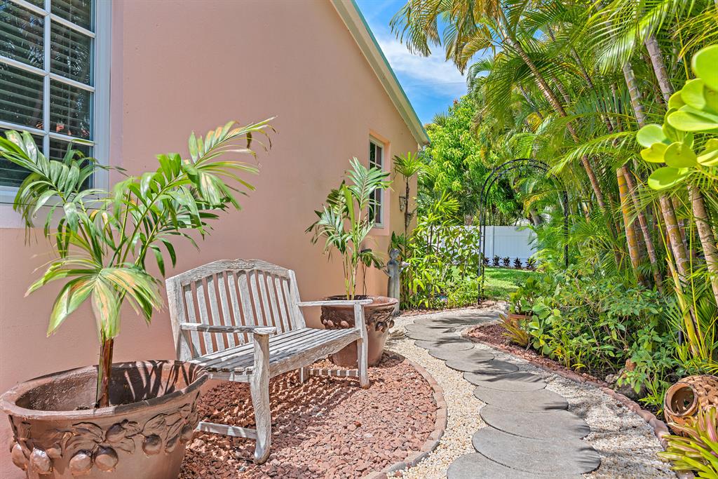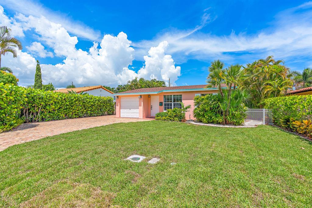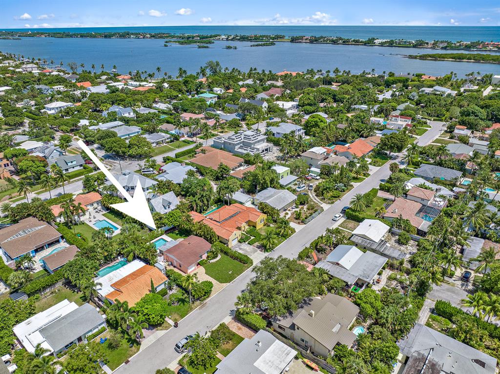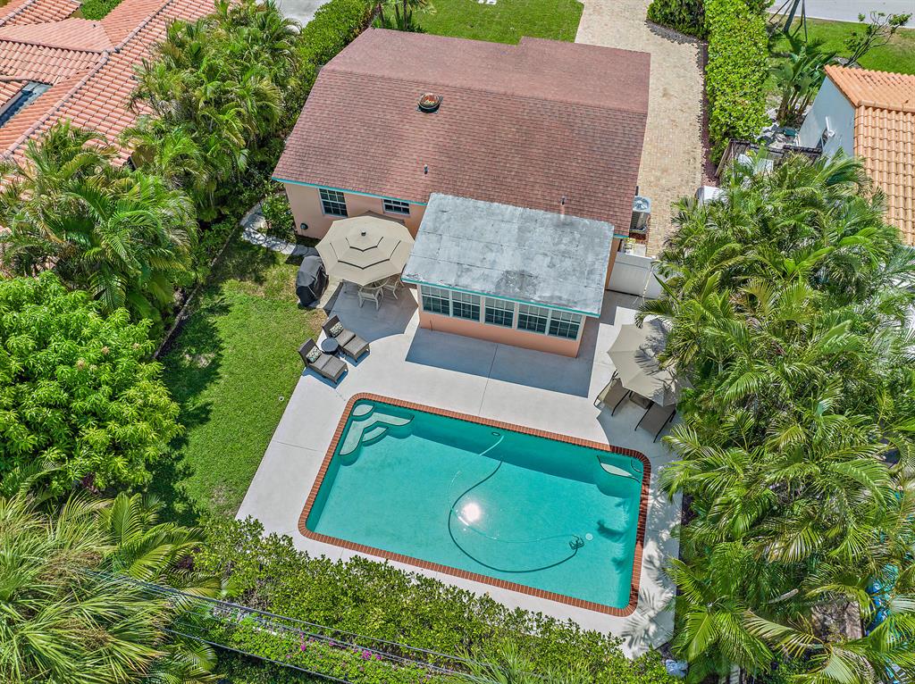 Charming 2 bed/1 bath South of Southern home with swimming pool. Fantastic east-of-Olive location on a cul-de-sac with a deeded easement to Flagler Drive. Take a stroll along the gorgeous Intracoastal Waterway. This mid-century home has been meticulously cared for & lovingly maintained. Features: impact windows, 2021 AC, terrazzo flooring, brick driveway, an updated bathroom, walk-in pantry/laundry room, cozy Florida room w/ plantation shutters, & a music studio. The studio can be converted back into a full-size garage as needed. You'll love the spacious, lush, fully fenced backyard! The large swimming pool & patio are perfect for lounging, & entertaining. This 'SoSo' home is close to tennis courts, the park, beautiful beaches, great restaurants, downtown, PBI airport, The Square & more.