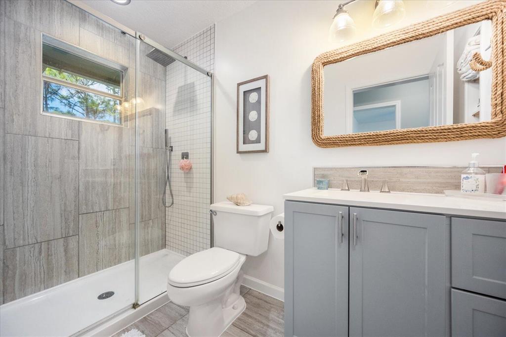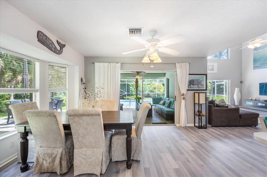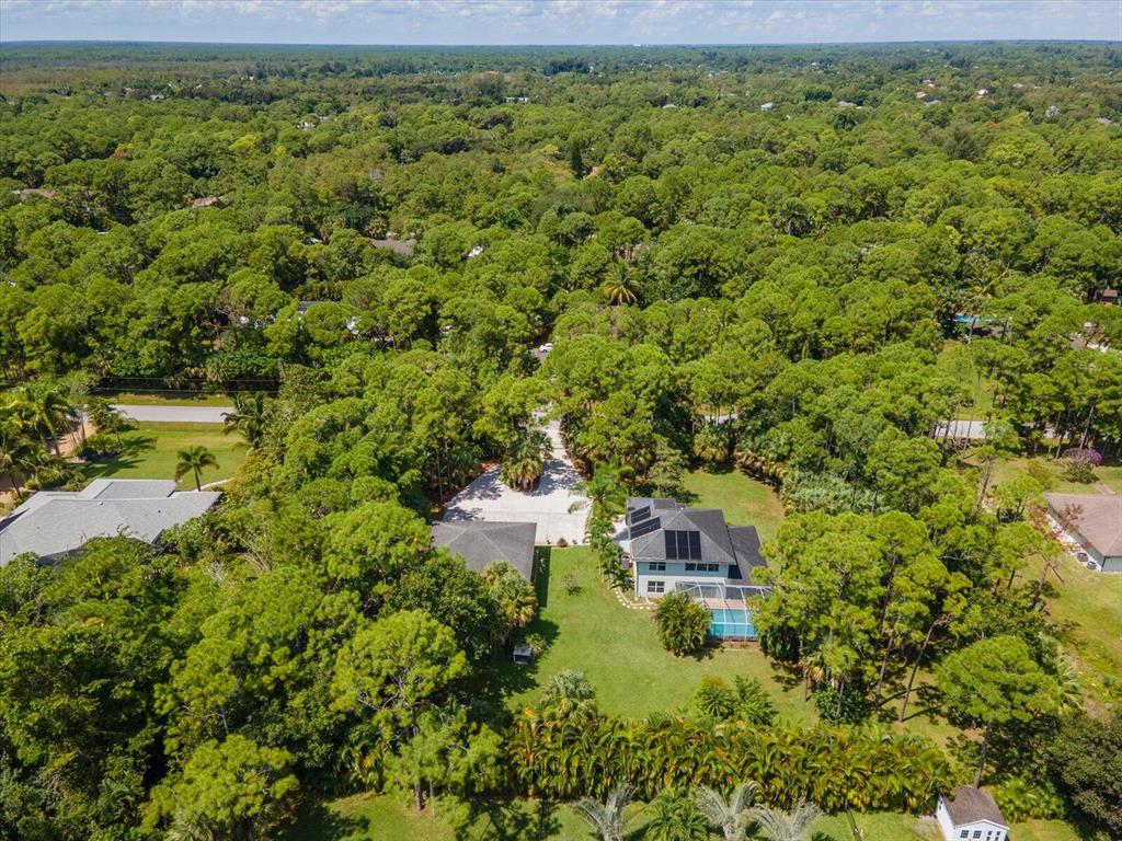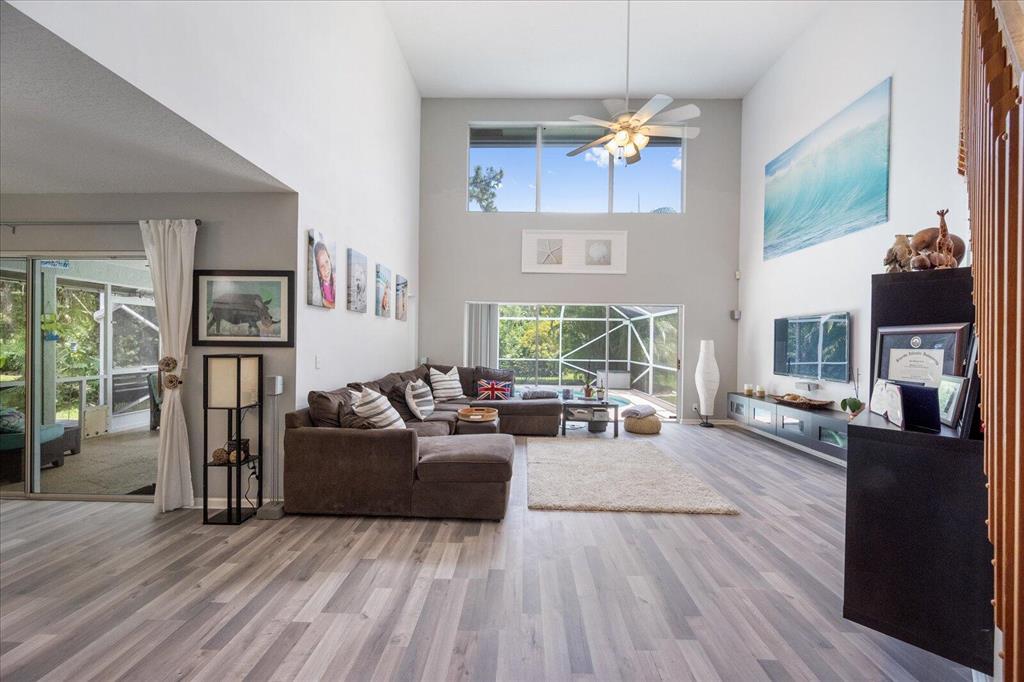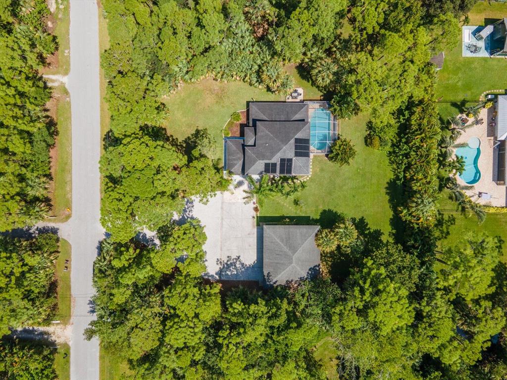 Take a look at this gorgeous unique property! A two story 4 bedroom 2.5 bath pool home with seperate 1,575 sqft CBS outbuilding sits on a private, peaceful 1.17 acre wooded lot in highly desired Palm Beach Country Estates. The home features an updated modern kitchen, brand new laminate flooring, a spacious open layout, soaring vaulted ceilings, tons of natural sunlight, screened in solar pool with diamondbrite, covered patio, fully fenced in yard, central vac, well & city water. Convenient first floor master suite including a large bathroom with double vanity, soaking tub & walk in shower, 3 spacious bedrooms upstairs & one updated full bathroom, half bath downstairs, attached 2 car garage, CBS detached garage with carport. No HOA, close to the beach, shopping plazas, A-rated schools.
