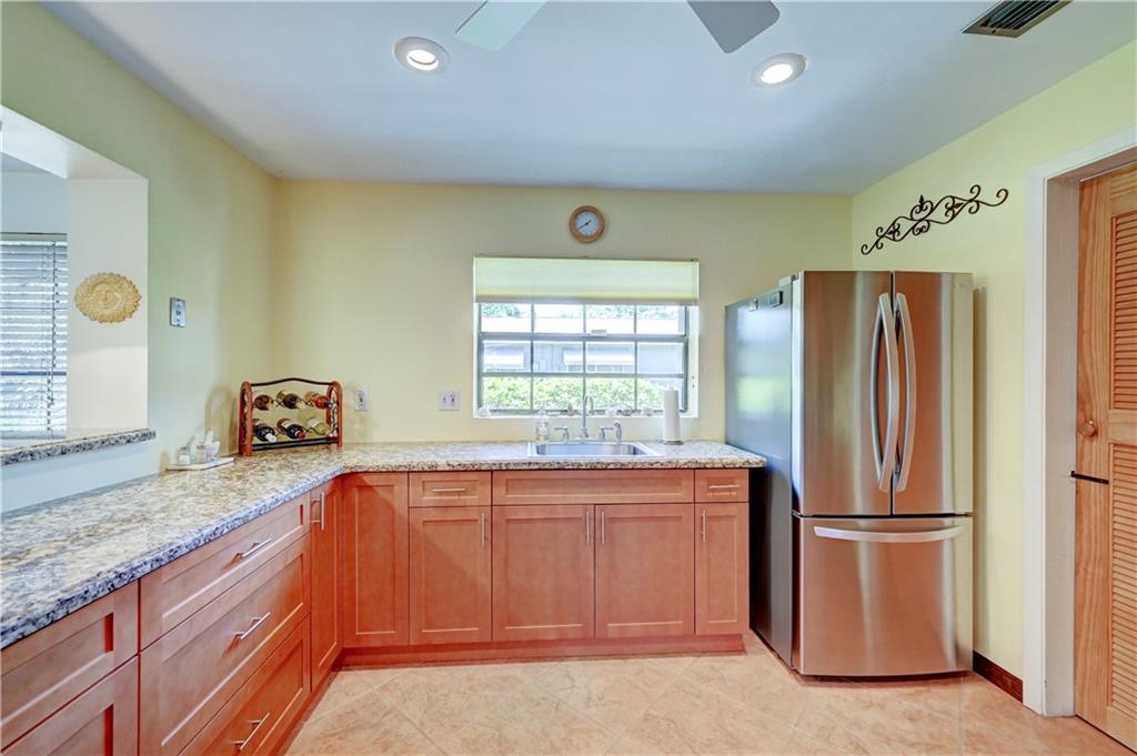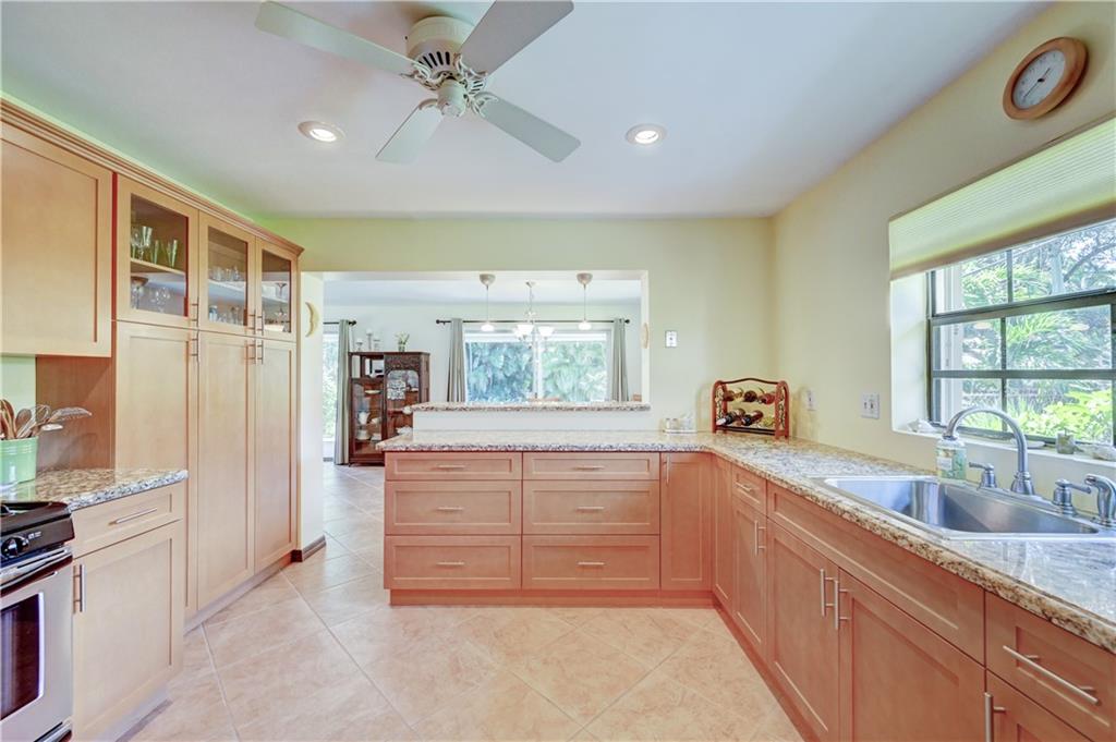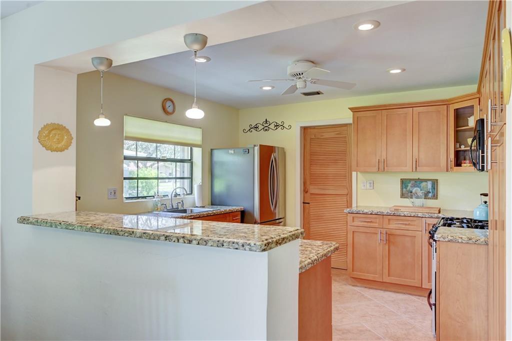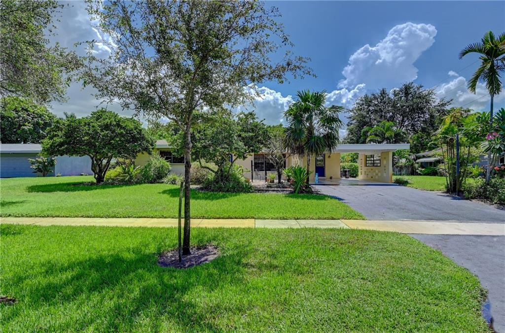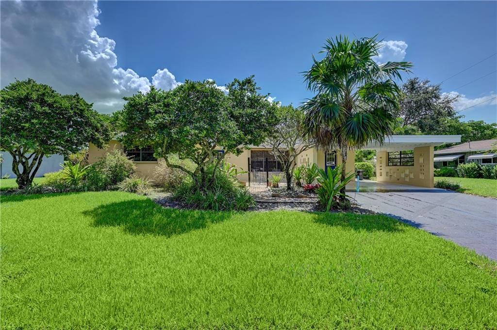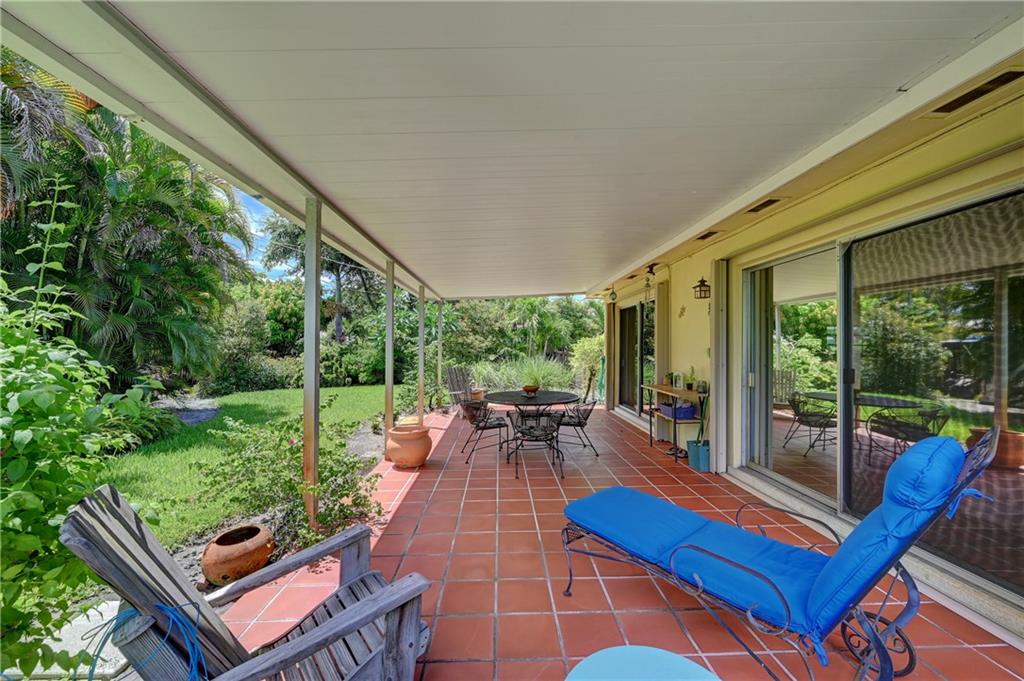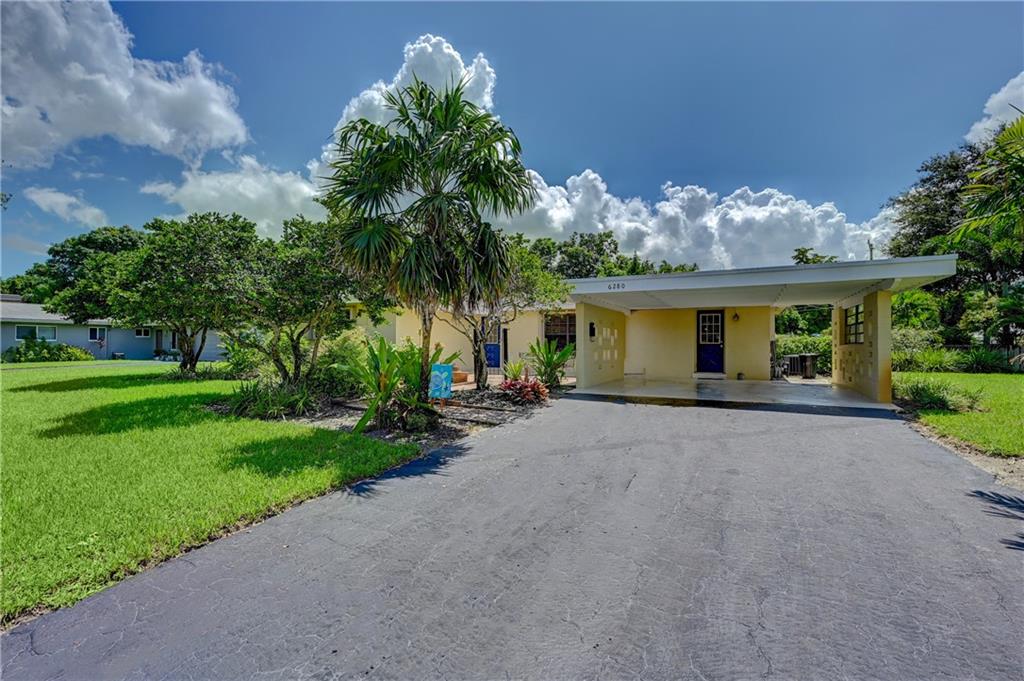 Bright and airy Old Florida 3/2 home with 2-car carport. Updated kitchen features newer stainless steel appliances (gas range), Granite countertops, and custom wood cabinetry. Dining and living rooms open up to 11' x 29' tiled patio with an insulated roof. Tropical landscaped yard with 2 avocado trees and a mango tree for optimum privacy, seclusion, and alfresco dining. Open front patio. Huge yard/lot. New roof in 2018. Accordion shutters (full wind protection). Check attachments for additional info. Easy to show.