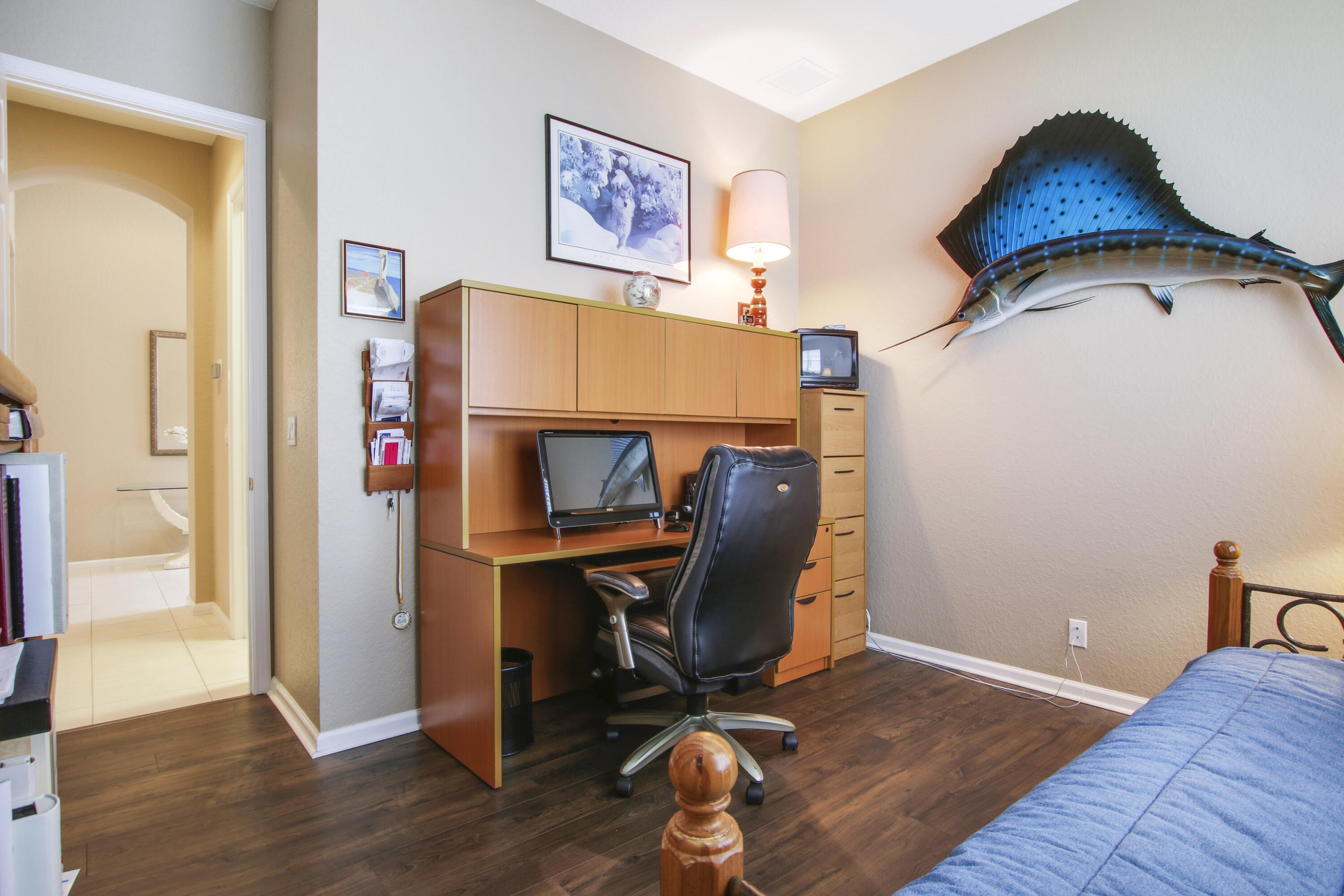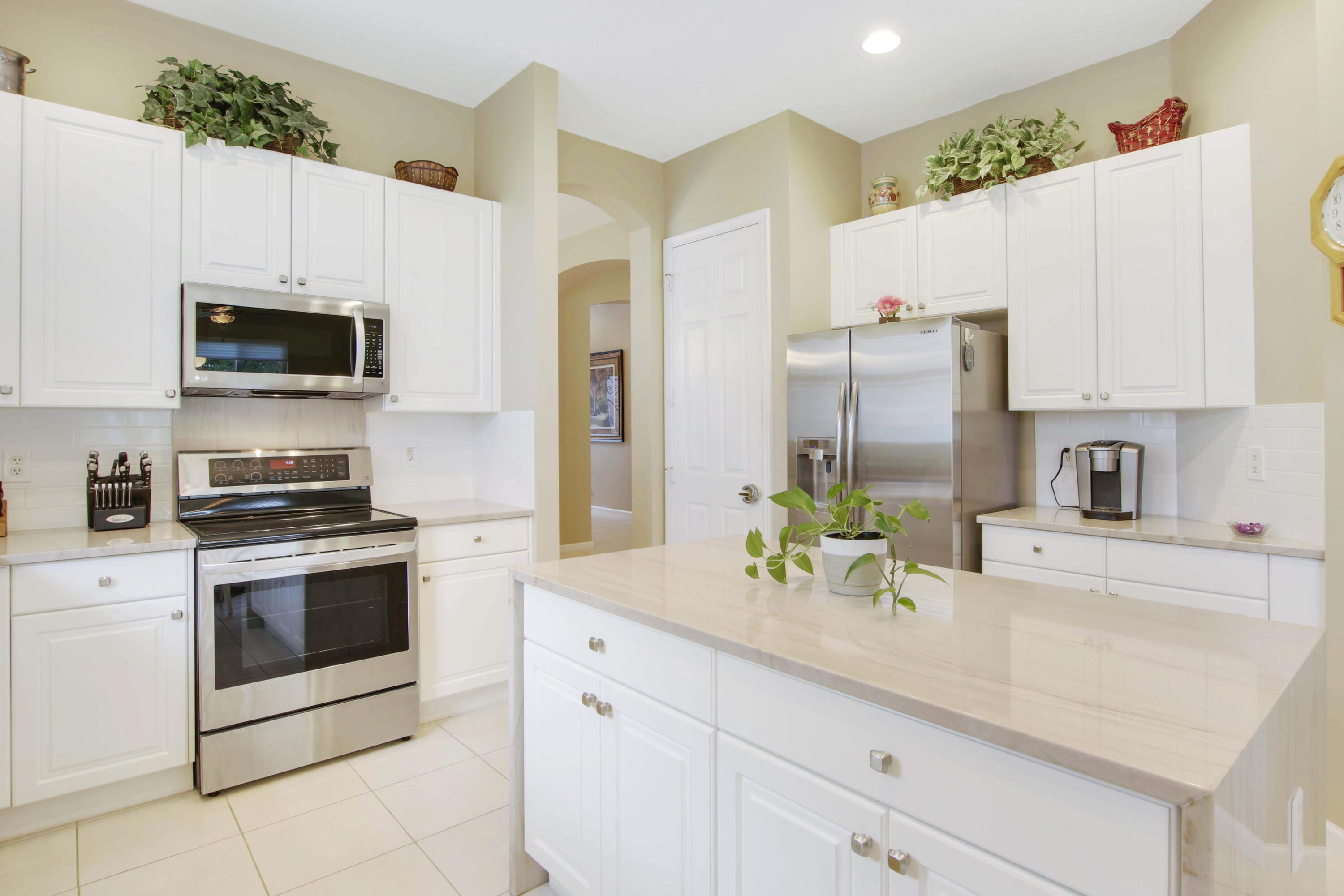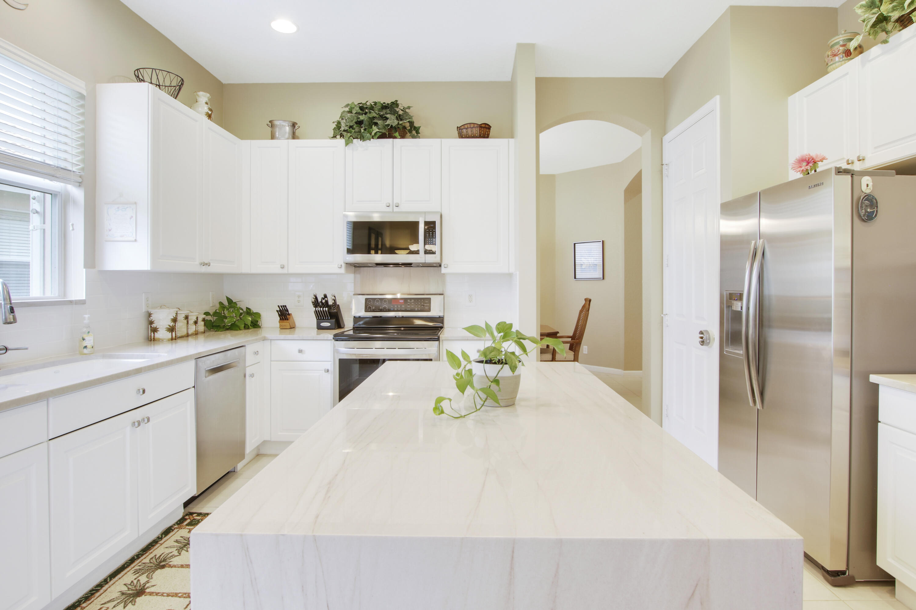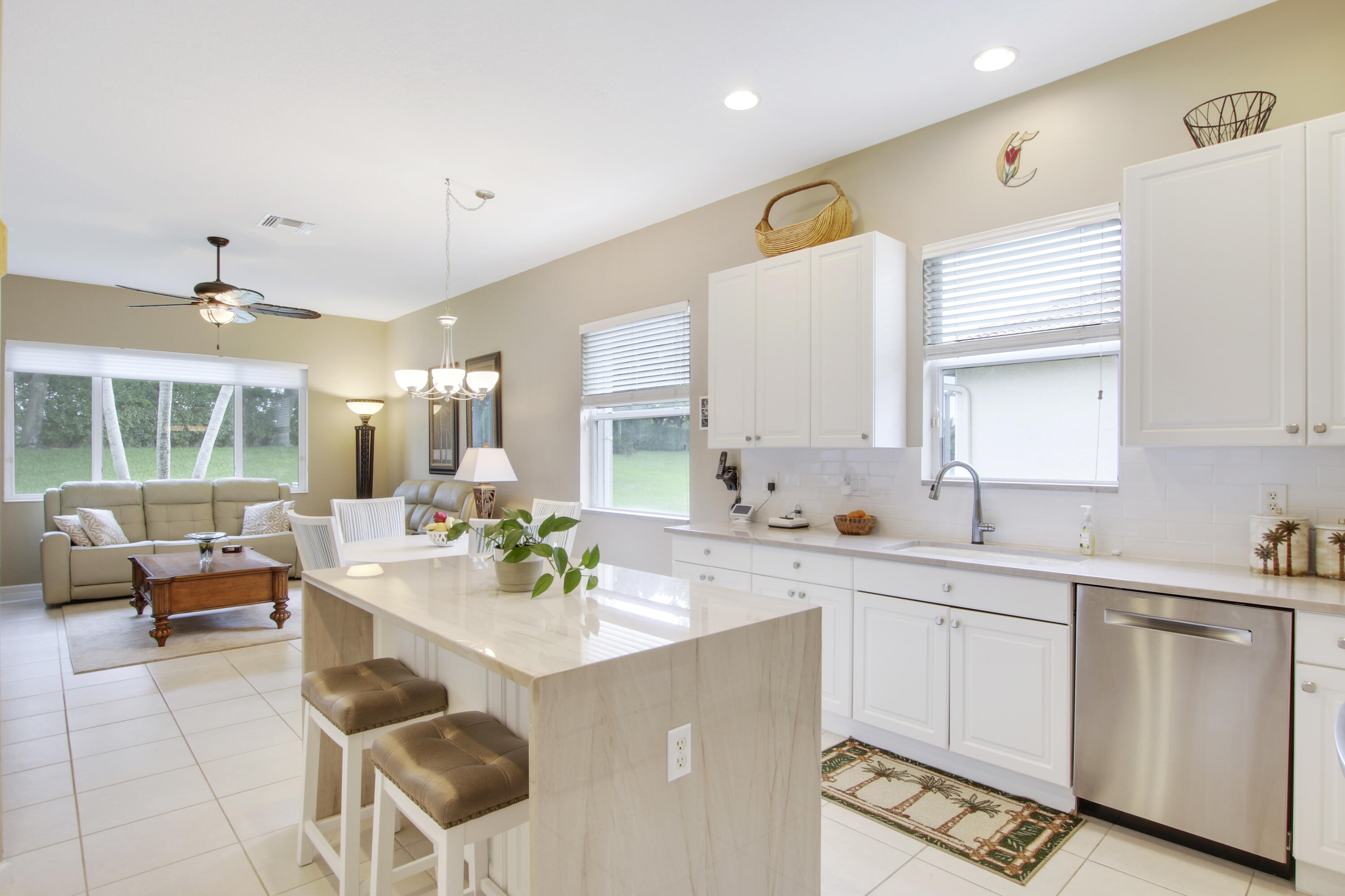 Rarely Available is the largest Providence Model in the highly sought-after Neighborhood of Sailfish Cove in the Active Adult Community of Baywinds. Located in the heart of West Palm Beach & in close proximity to Wellington, Royal Palm, Westlake, Rosemary Square, & PBI Airport. This amazing home boasts 3 beds & 3 baths with an office/den that can easily be converted into a 4th bedroom. The master has two walk-in closets, dual vanities, & a whirlpool tub. The kitchen has been updated with quartzite countertops with a waterfall island, subway tile backsplash, & stainless appliances. The guest bath has also been updated with quartzite. The back patio has been extended with a full screened lanai & the back yard is fully fenced with a partial water view & a view of the preserve. Baywinds