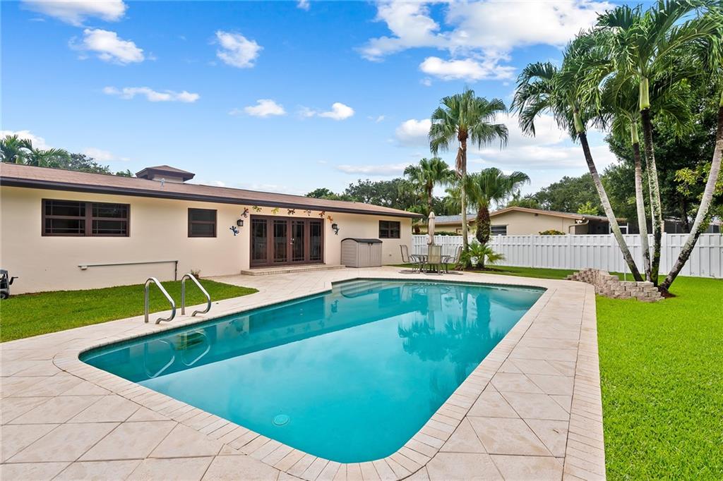 Gorgeous, open concept 3 bedroom/2 bathroom pool home located in highly desirable Plantation Gardens. This light, bright substantially updated home boasts porcelain tile floors throughout the living area, gourmet kitchen with Miele coffee system, new AC (2022), a roof replaced in 2021, hurricane protection including: impact windows, doors and shutters, newer washer/dryer (2021), a newer dishwasher (2021) and a security system. In 2017, cast iron plumbing was replaced with pvc plumbing. In addition, there is lush, tropical landscaping and newer, white, pvc fencing (2018) that surrounds an oversized backyard and sizeable pavered pool deck. This home is move-in ready and offers ample room for entertaining friends and family inside and out!