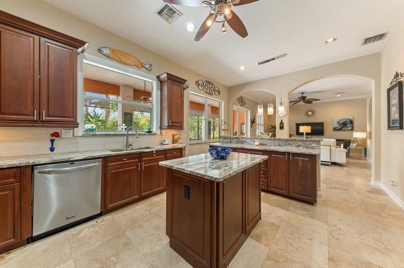5 Bedroom tropical paradise located in Lakes of Laguna. This home has a recently renovated chef's kitchen, new roof and solar panels, free form saltwater pool with rock waterfall, spa and outdoor kitchen. Truly a one-of-a-kind backyard overlooking the lake. This is perfect home with lots of outdoor living and grilling on an oversized lot! Move in ready and lovingly cared for!