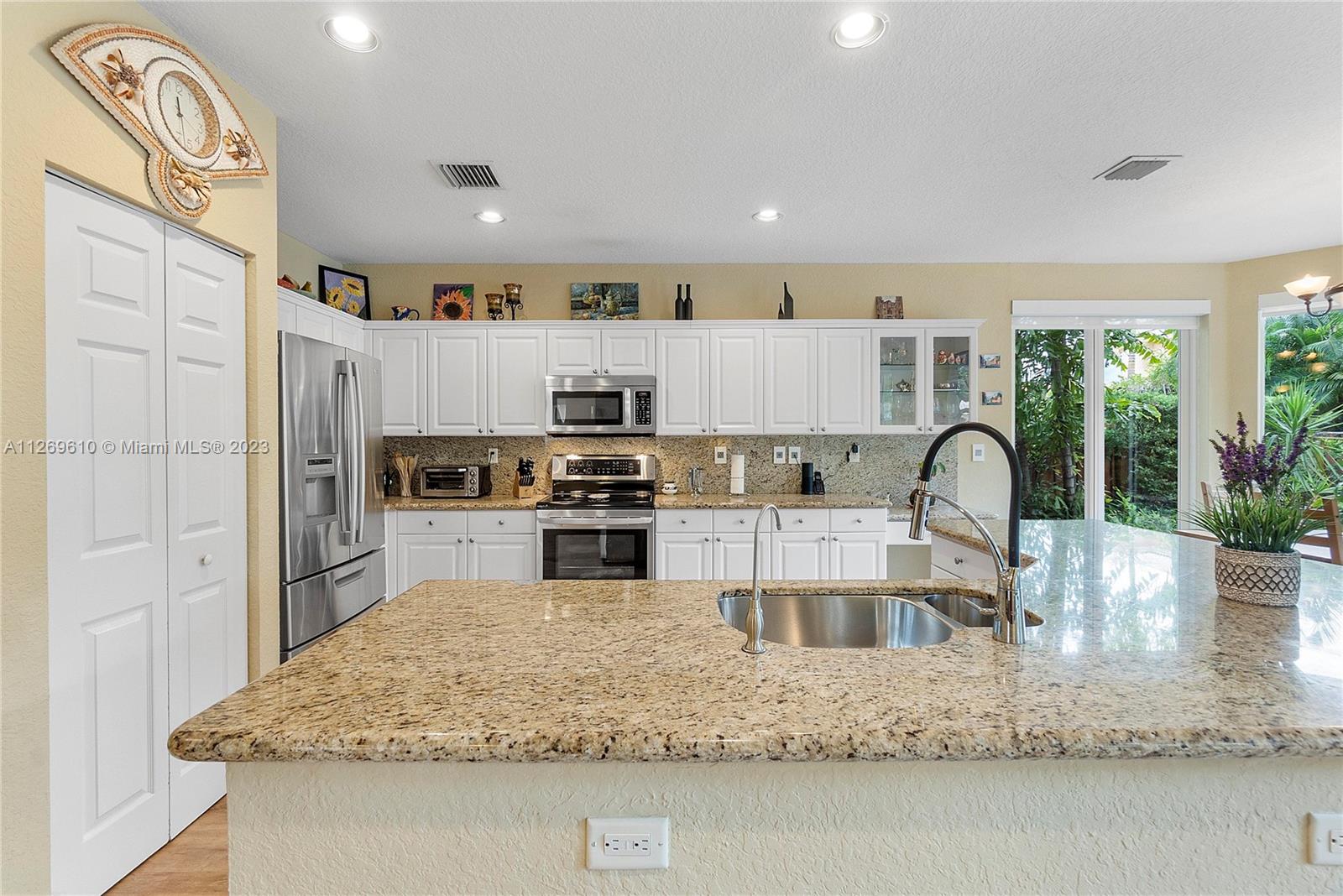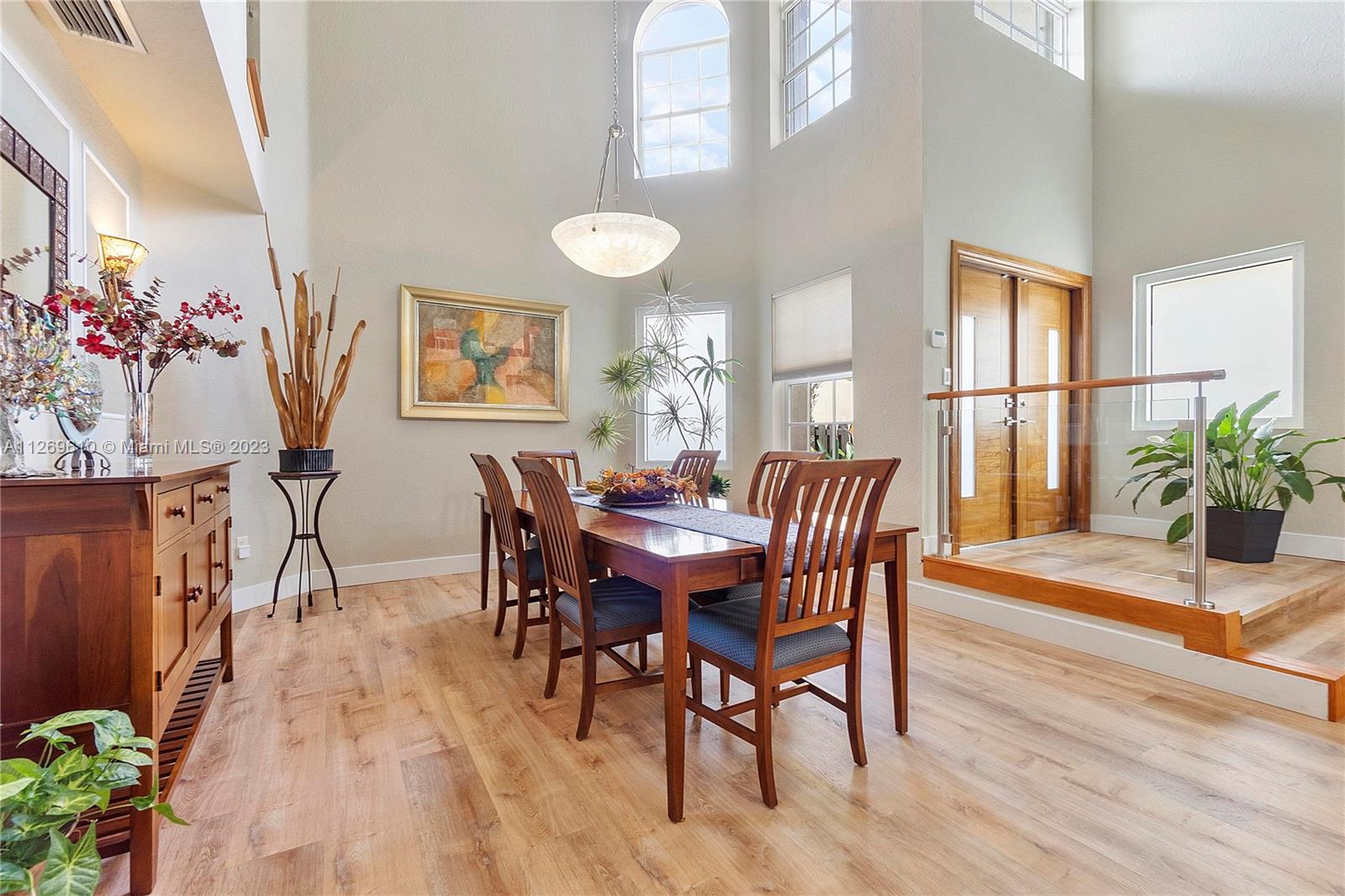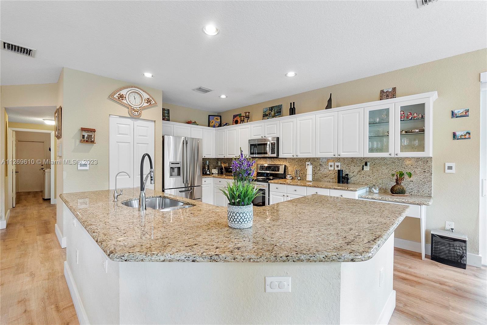 Spectacular luxury home nestled on a plush landscaped oversized corner lot in the Exclusive community of Doral Isles. This well-maintained home features 5 bedrooms and 3 Bathrooms with one bedroom and full bathroom on the first floor. Picturesque windows and doors surround the kitchen, breakfast nook and large family room overlooking a beautiful pool and manicured landscaped patio. Unique staircase with glass and wood combination leads to an oversized master suite with sitting area, ensuite bath with double vanities, Roman tub, shower and bidet. Upstairs loft with desk separates Master from 3 additional bedrooms and updated bathroom. St Croix subdivision is in close proximity to Resort style Clubhouse, Olympic Pool, Cafe, Gym, Tennis, Ballroom, Basketball, Baseball, Soccer, Volleyball.