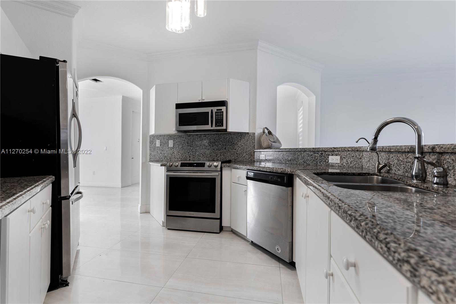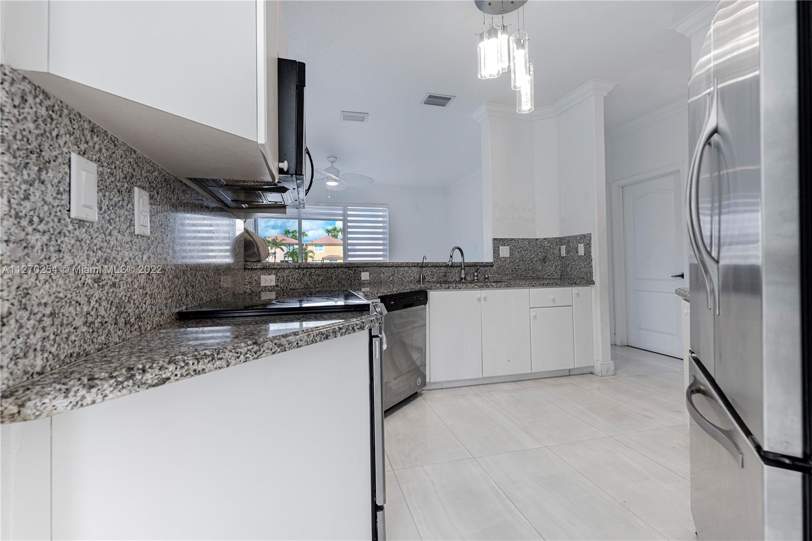 Watch the beautiful sunset from your private fenced lakeview patio, perfect for relaxing or entertaining. This lakeview 2-car garage townhome in the gated community of Polynesian Island of Doral features 4 bedrooms, 3 full baths, with a 1/1 downstairs. Modern kitchen w/SS appliances, spacious living room & dining room with custom zebra blinds. Large master bedroom with his & hers walk-in closets, dual sinks, hot tub & separate shower. One of the bedrooms was made into a huge custom closet. Washer & dryer upstairs too. This house also has Solar Panels! Buyer will pay low monthly FPL bill. Amenities include: swimming pools, clubhouse, tennis court, BB court, gym, & kids playground.