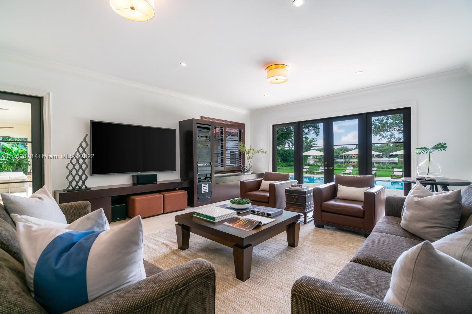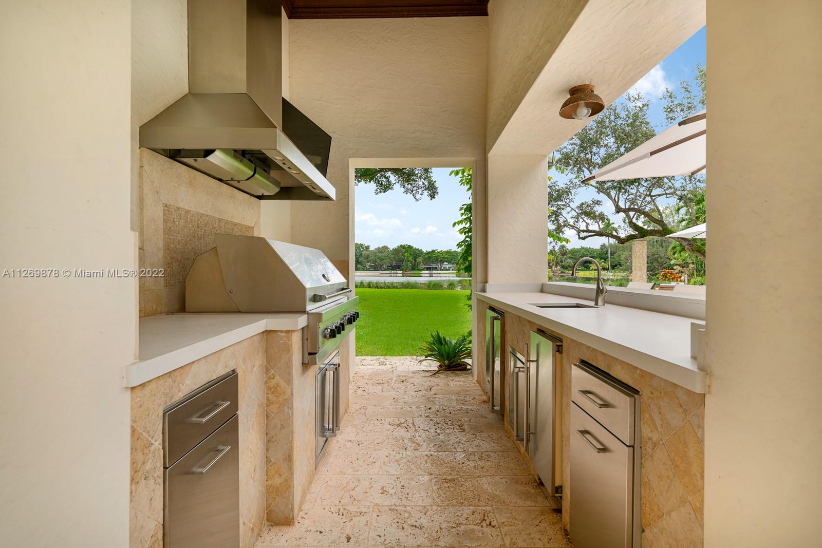 Spectacular 9,482 Sq.Ft. estate with 6 bedrooms and 7.5 baths, on nearly an acre in the guard-gated community of Hammock Lakes. The home has a new roof and an air-conditioned 3-car garage with a gym. Stunning lake views, lush landscaping, arched hallways and vine-covered porticoes. Elegant light-filled living spaces with high ceilings, 2 family rooms, 2 offices and bar. Chef's kitchen with marble center island, wood cabinetry and stainless steel Viking and Miele appliances. The main suite has 2 custom walk-in closets and a spa-like bathroom with double vanities, expansive shower and commodious bathtub. Outdoors have covered terraces ideal for relaxing, barbecue area, pool, fire pit, half basketball court and sandy beach. Resort-style living in an enchanting setting.