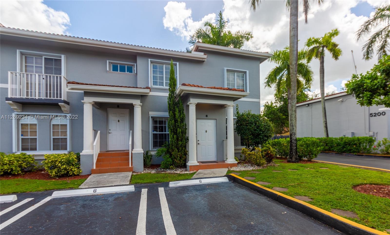 Cozy home in gated community. Kitchen and bathrooms upstairs have been remodeled. No carpet. Lots of storage. Hurricane shutters. Fenced patio for outdoor entertaining. Unit has two parking spaces directly in front of door entrance, and lots of guest parking available. Community pool and clubhouse. Close to Great Schools and easy access to Turnpike and 826.