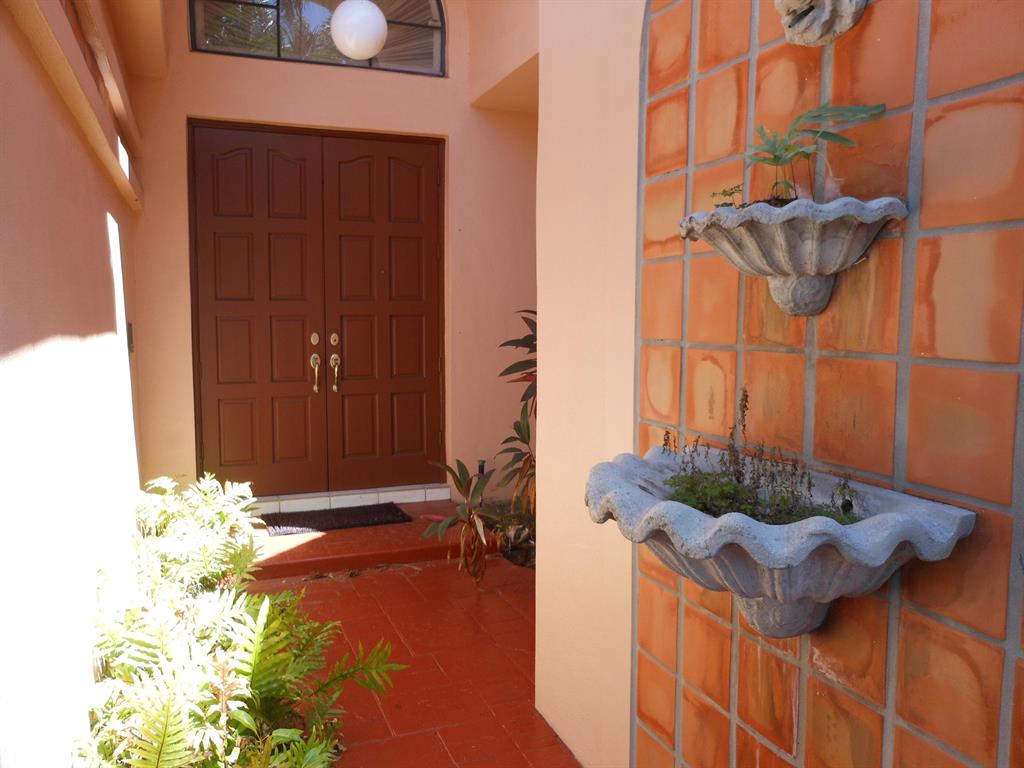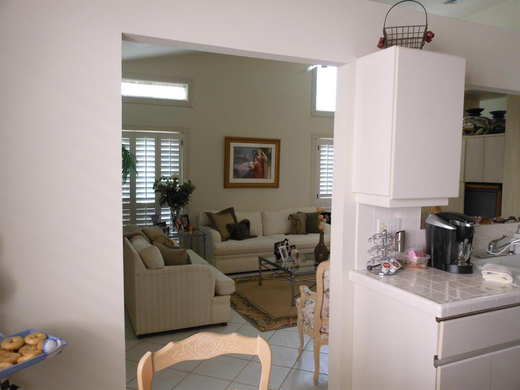 A touch of European charm is the best description of this home as you open the gate to the front entrance surrounded by foliage and a wrought iron fence. There is an open feeling as you enter. The home has skylights so it is bright and cheery. Popcorn has been removed from the ceilings and the main walls are knock down finished. There is ceramic floor tile throughout except the bedrooms which are carpeted. The kitchen overlooks the spacious family room which then leads out to the patio. The patio overlooks a huge green belt area which allows complete privacy. The family room has plantation wooden shutters on all the windows. The master bedroom leads into a private bathroom with 2 sinks, a shower, bath and bidet. The 3 bedrooms have a split bedroom floor plan. Great house waiting for you