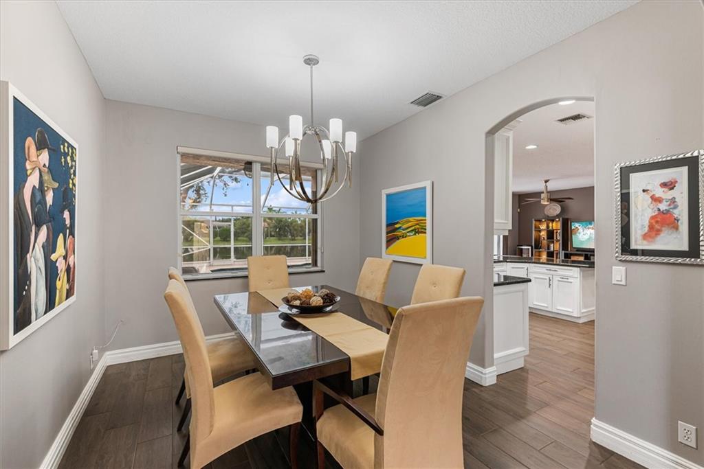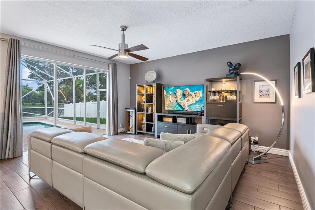 One look and you will fall in love with this stunning waterfront home. Spacious and open interior with wood plank porcelain tile floors & plenty of natural light. The designer kitchen features white cabinets with under and upper cabinet lighting, granite counters, glass tile backsplash and new s/s appliances, double oven & induction cooktop. Also on the first floor is a custom-built in-home office with ensuite bathroom. Walk upstairs to the open loft area, secondary bedrooms & updated bathroom. The expansive Owners suite offers a perfect place to unwind and enjoy the water view. Upgrades include accordion hurricane shutters, crown molding, custom closets, oversized shower & soaking tub. The backyard boasts breathtaking water views, screened in heated pool with salt system & covered lanai.