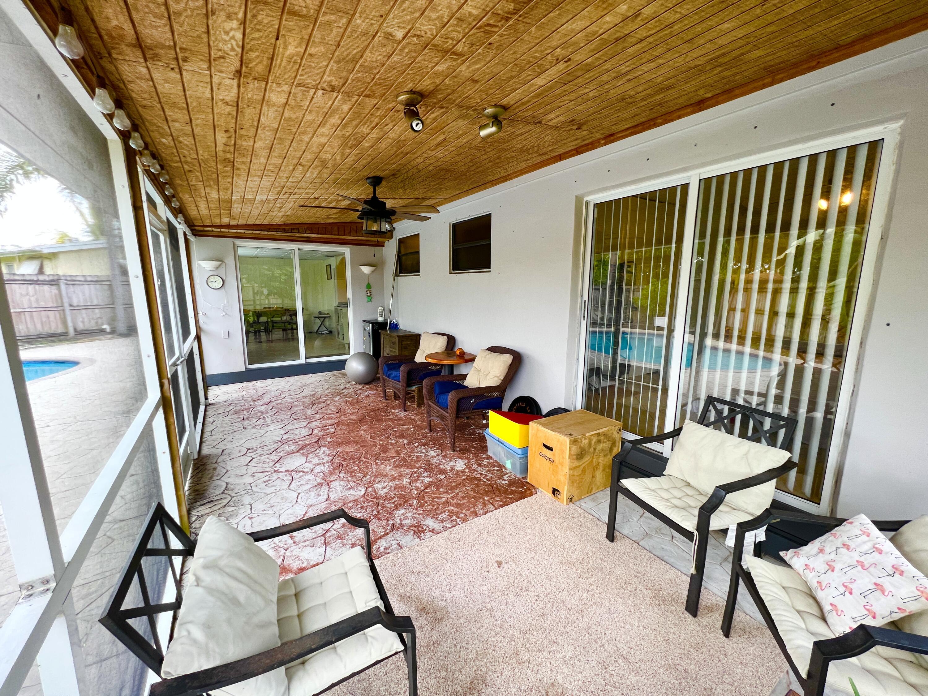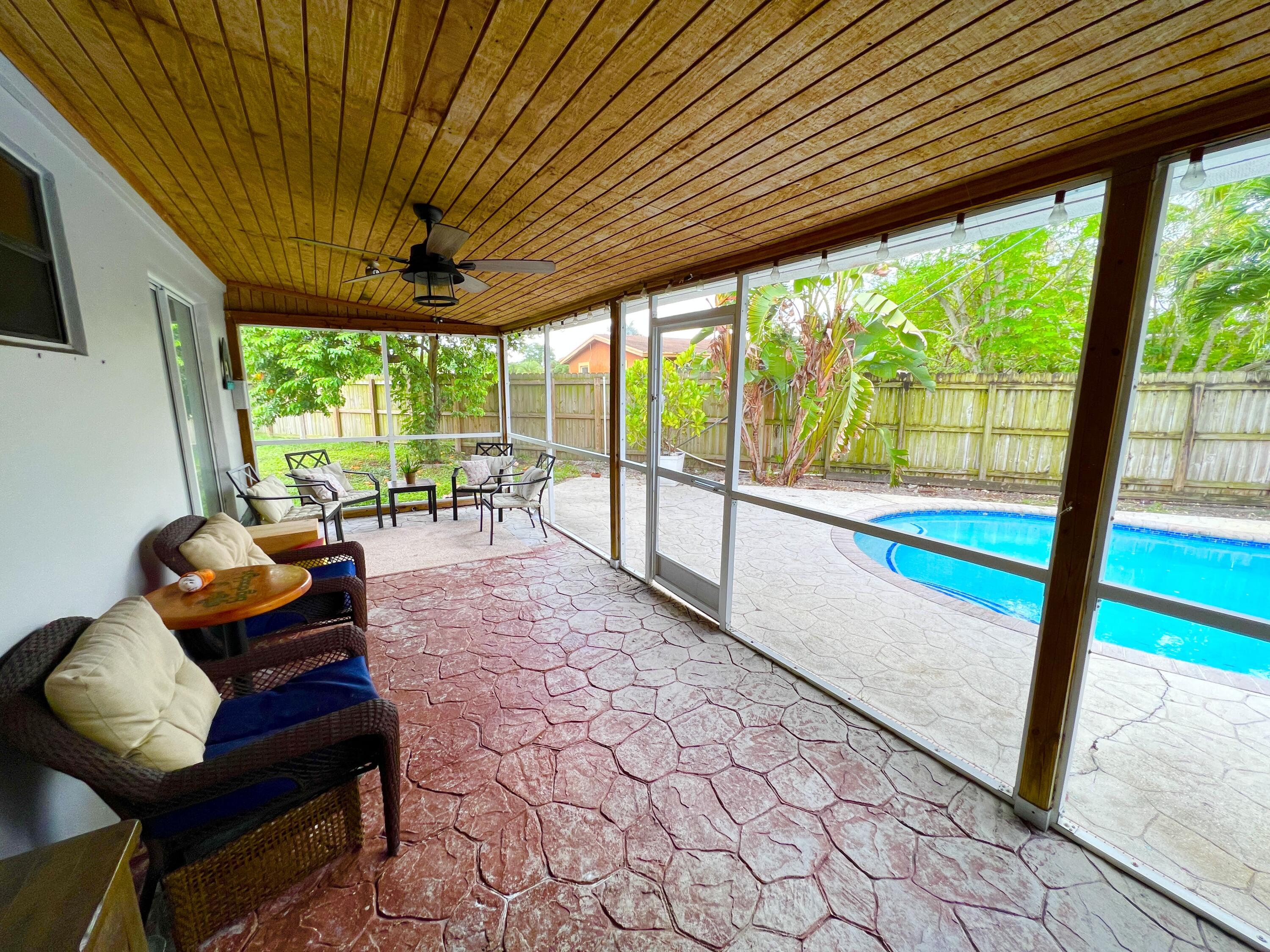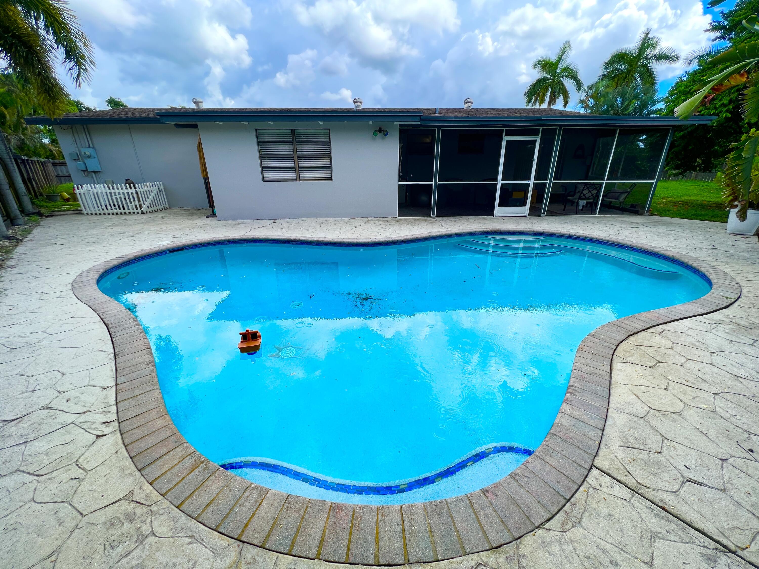 Charming 3 bedroom 2 bath CBS pool home on a huge 1/4 acre corner lot. Oversized 2 car garage with 220 AMP service and additional paved driveway fenced in for boat/RV, beautiful free form pool with new tile and diamond brite, new pool pump. Private Fully fenced yard with fruit trees (starfruit, orange, soursop, guanabana), screened in porch, freshly painted exterior, new bathroom vanities, brand new washer/dryer and dishwasher, tile flooring through out the home, laundry room inside, spacious flex room/office space off the kitchen. Community boat launch with ocean/intracoastal access!! Conveniently located near shopping, airports, schools.