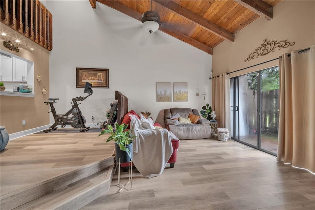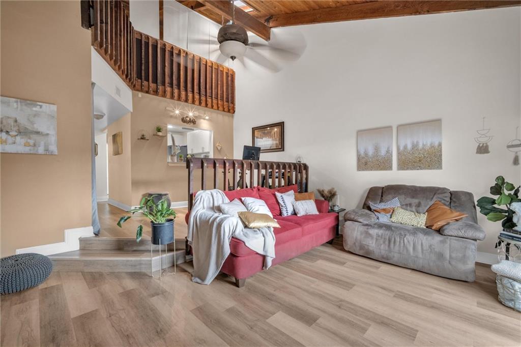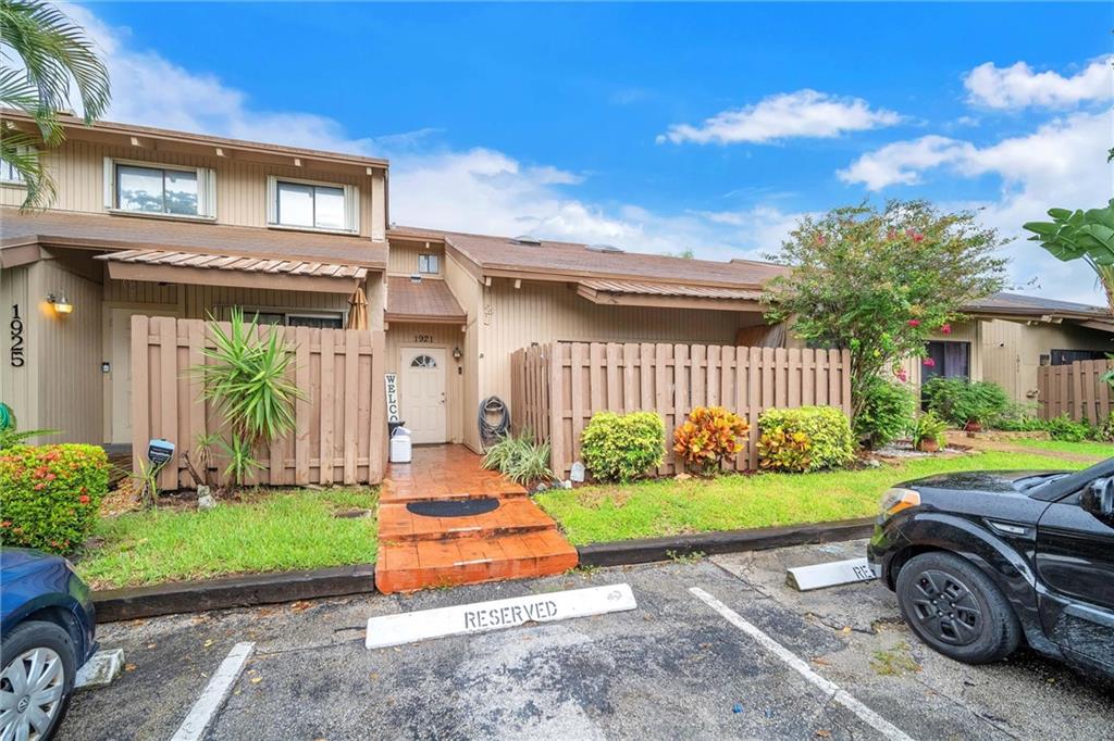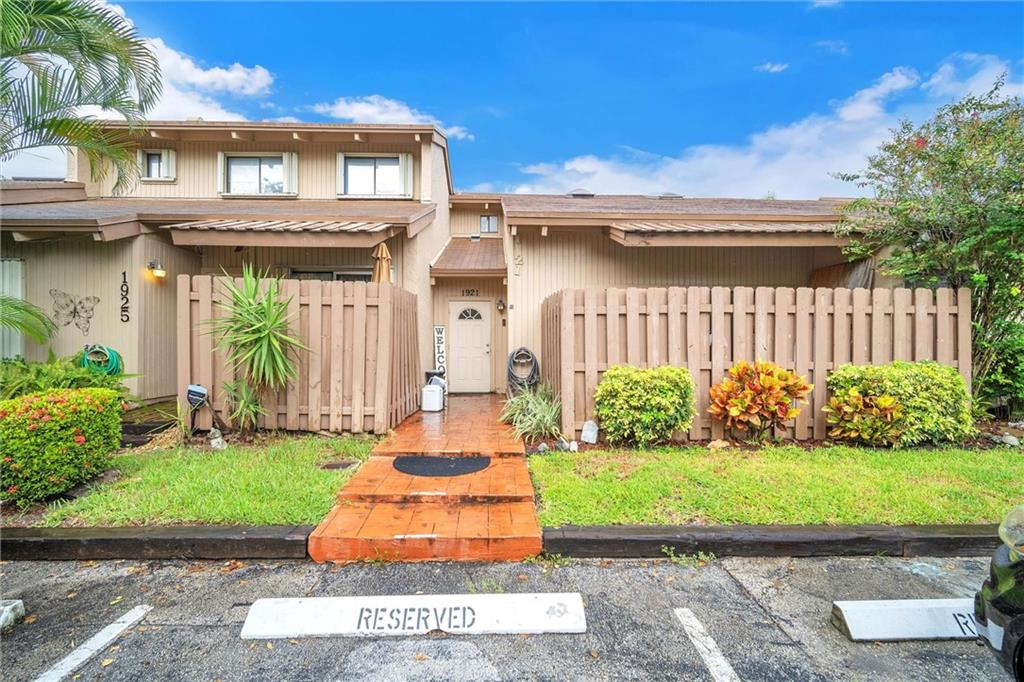 Escape to lovely loft living in this beautiful Davie two story town home located on the lush green golf course. Home features newer roof with vaulted ceilings, newer AC & water heater, wood look laminate floors, updated kitchen with SS appliances, indoor laundry with full size washer & dryer, fenced in paved patio backs to the golf course and includes shed. Additional fenced front terrace accessible from main living area. Main level features 1 bedroom. Flow upstairs to the spacious primary master suite featuring two walk-in closets and your own private balcony where you see nothing but the green. Centrally located near the Tower Shops with plenty of shopping, restaurants & entertainment. Easy access to highways.