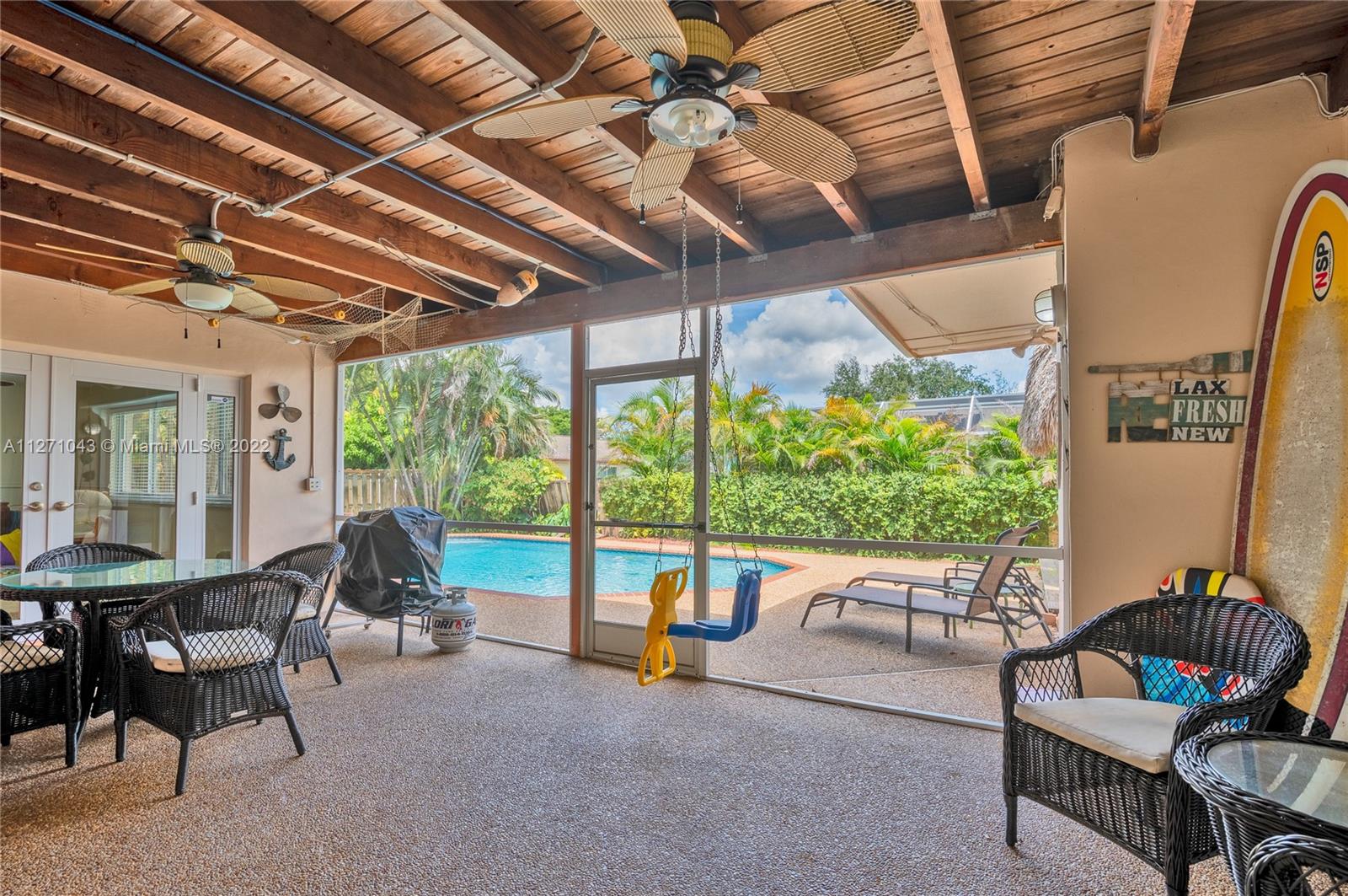 Banyan model 4 bedroom (family room possible 4th bedroom) 2 full baths - impact windows and doors - NEW ROOF IN 2021 - newer appliances - remodeled kitchen - covered patio - open pool area - Tiki Hut - storage shed included - oversized pool w/equipment - widened concrete driveway - corner lot - room for a boat - newer a/c system 2017 - crown molding - new pool pump - upgraded garage door - full wind mitigation - ring door bell system - seamless gutters - freshly painted exterior - call LA if any questions - all Cooper City "A" rated schools -NO HOA FEES.