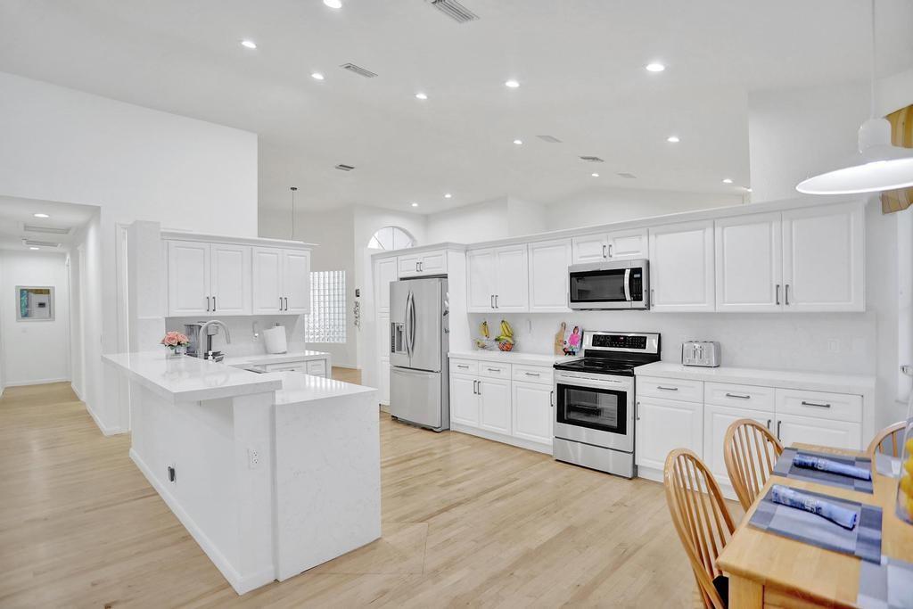 Motivated seller. Spectacular lake views and magnificent sunsets from this gorgeous 4 bedroom, 2.5 bathroom home. Metal roof with 50 year warranty (2007) & AC units replaced 2017 & 2021. Gated Silver lakes community near clubhouse, pool, park & boat ramp. Gourmet eat-in kitchen has SS appliances, farmhouse sink & quartz counters. Gorgeous open floor-plan has wood floors, French doors & windows providing natural light, volume ceilings with recessed lights, freshly painted interior, wood burning fireplace & a screen enclosed patio. Master bedroom with sitting area overlooking a preserve & lake, walk-in closet & patio access. Master bathroom has marble floor & shower. Split floor plan has the primary bedroom on left & 3 bedrooms on right. Accordion shutters. *Realtors read broker remarks.