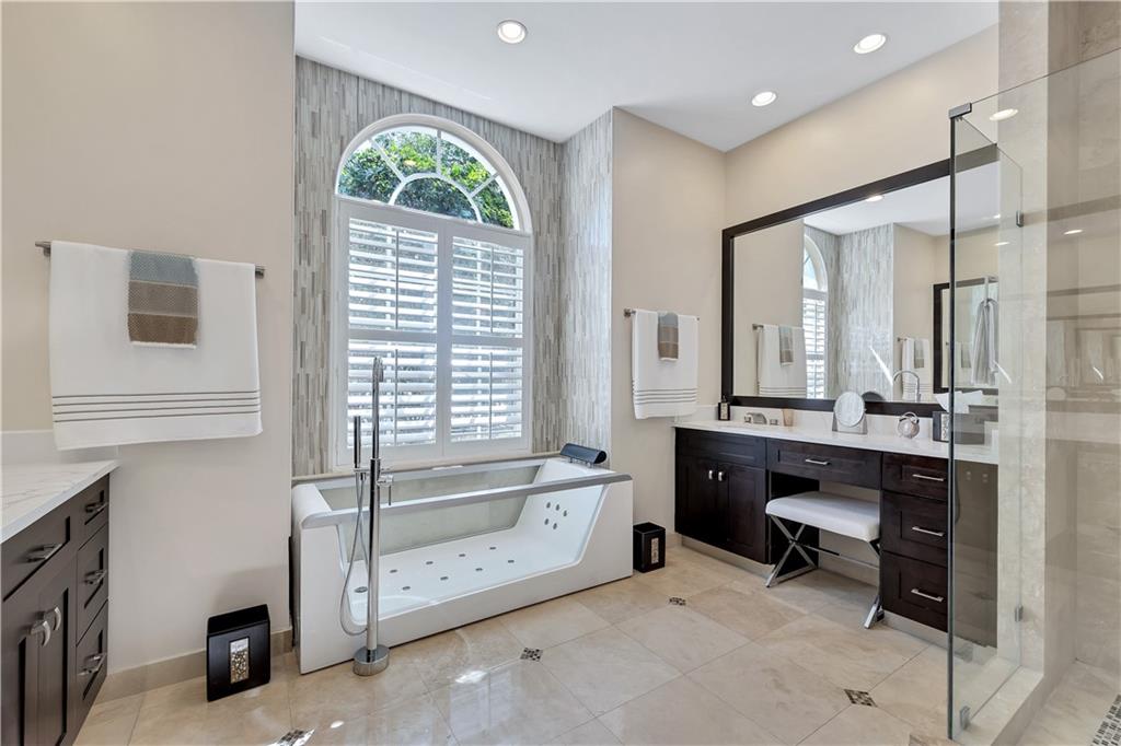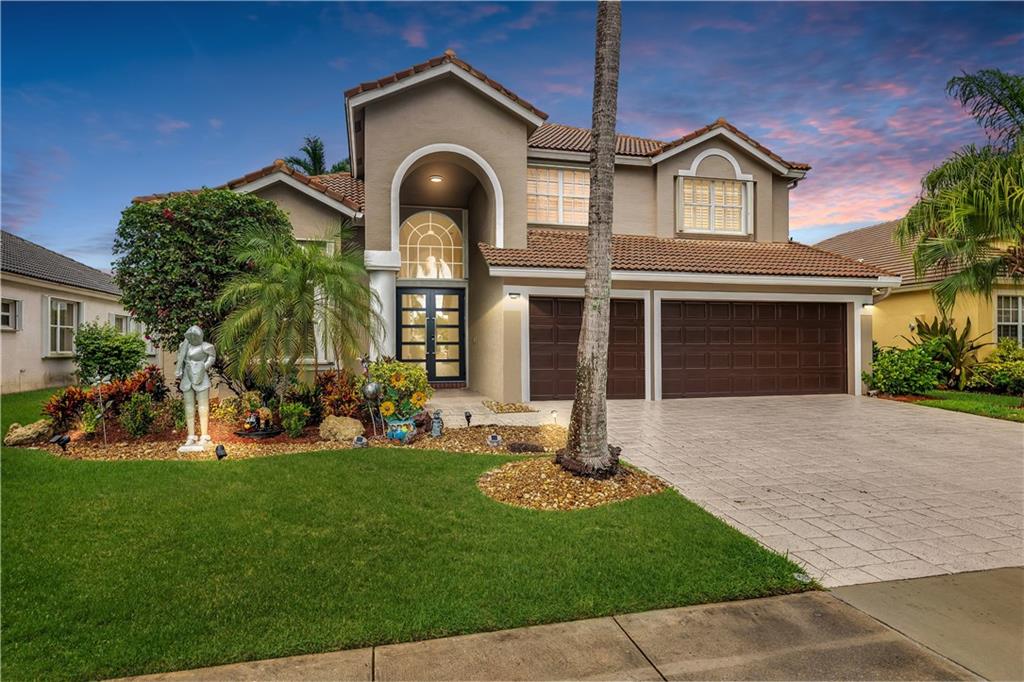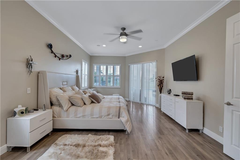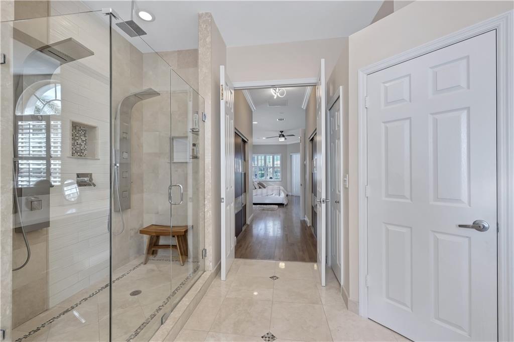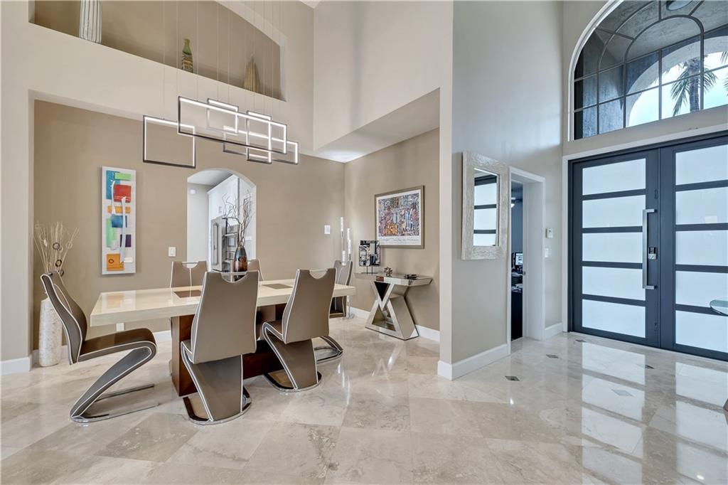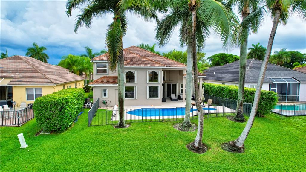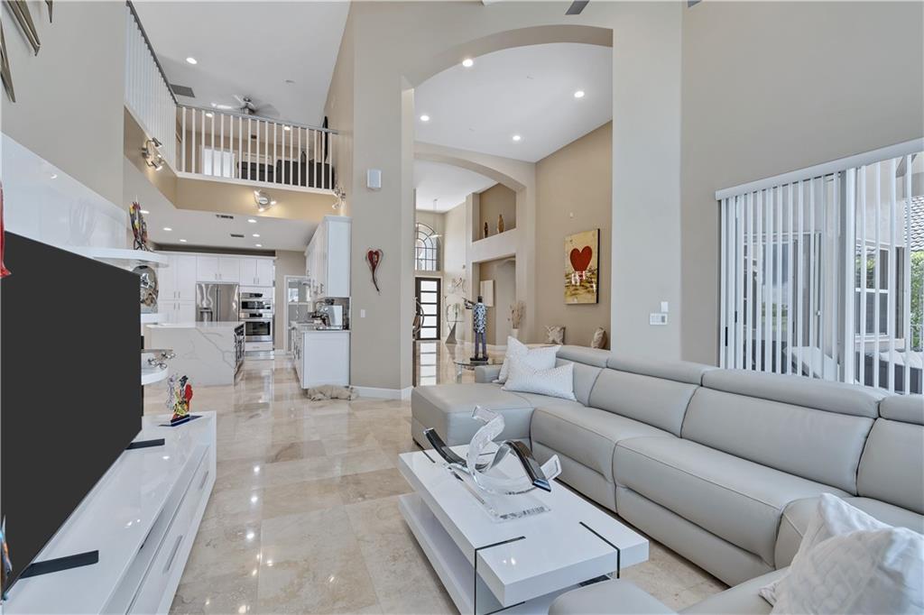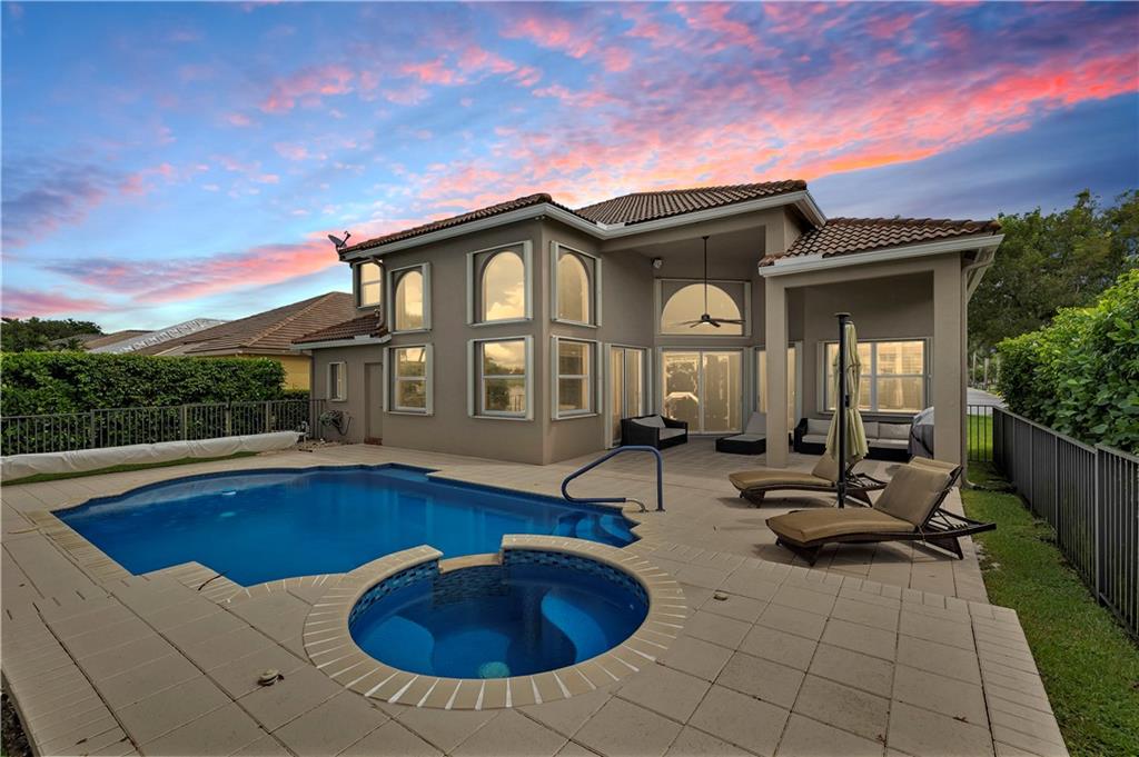This home is stunning! The front dual door is hurricane rated w/10 frosted panels, a self securing latch & custom made handles seen nowhere else. Inside, your foyer sets the stage w/extra high ceilings in both living areas & dining that create a grand ambience where the fixtures & upgrades add to the allure. The mini bar in the living room, large windows w/heated pool & water views, modern fans/chandeliers & LED recessed lights are just some of features. The designer kitchen will drop your jaw w/a waterfall quartz island, wine chiller & pull out seats. The top of the line appliances & endless pantry/storage options with wow your guests. In addition to the 5 beds there is an office & loft, full home auto-generator, accordion & planation shutters! Roof is excellent condition!