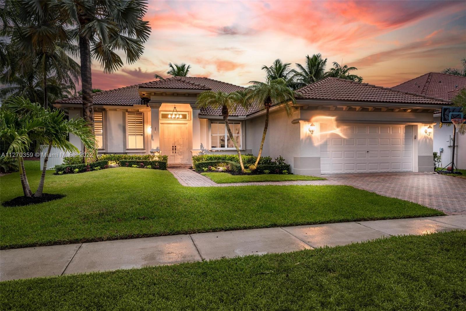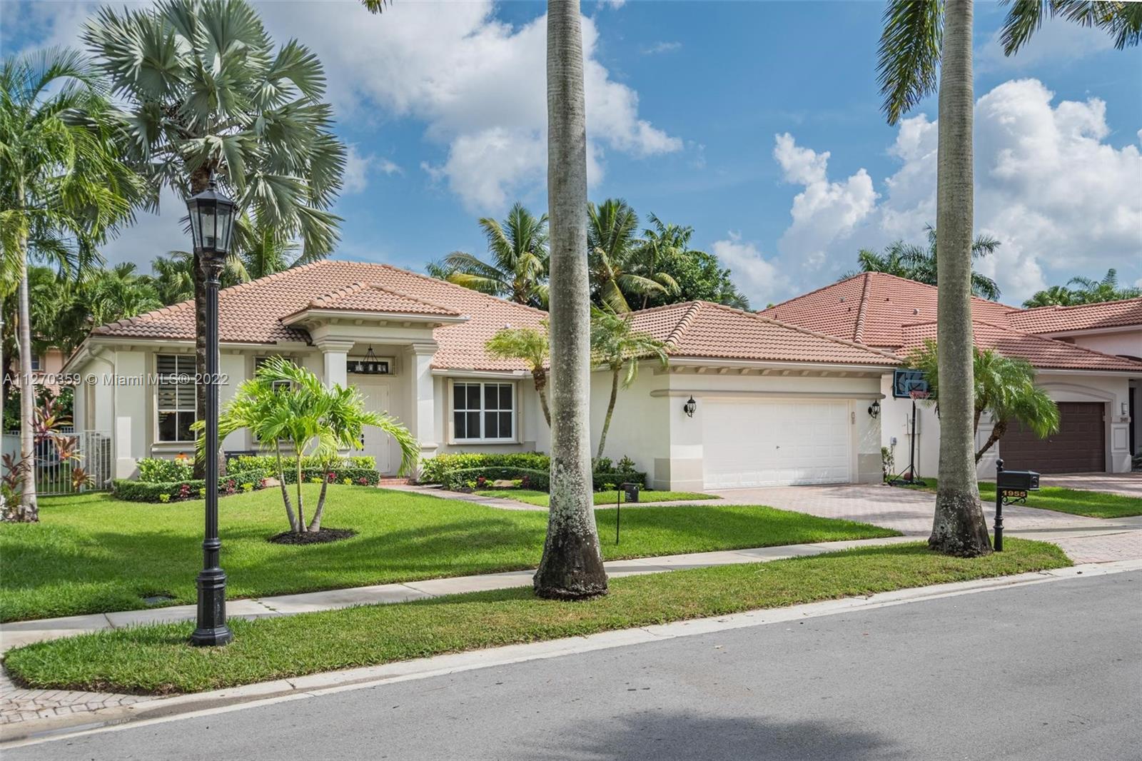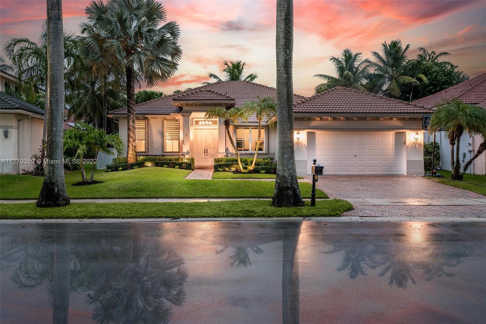 Welcome to this highly upgraded home set back on a quiet Royal Palm tree lined street in the prestigious guard gated community of Weston Hills Country Club. Enjoy all of the renovations in this gorgeous, meticulously maintained home including professionally designed white chef's kitchen, new flooring throughout, new custom moulding & shaker doors & new recessed lighting throughout. Gorgeous brand new modern heated swimming pool with smart LED lighting, upgraded tiles & diamondbrite (2022), new travertine pavers & fence (2022), Rheem A/C (2021). Professionally landscaped front & backyard. Bright open floor plan with volume ceilings make this home an entertainer's paradise. A quick walk to the playground, soccer fields, basket ball court & bus stop for Weston's A+ rated schools.