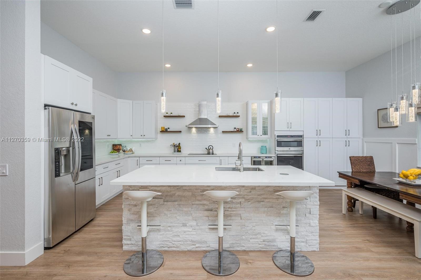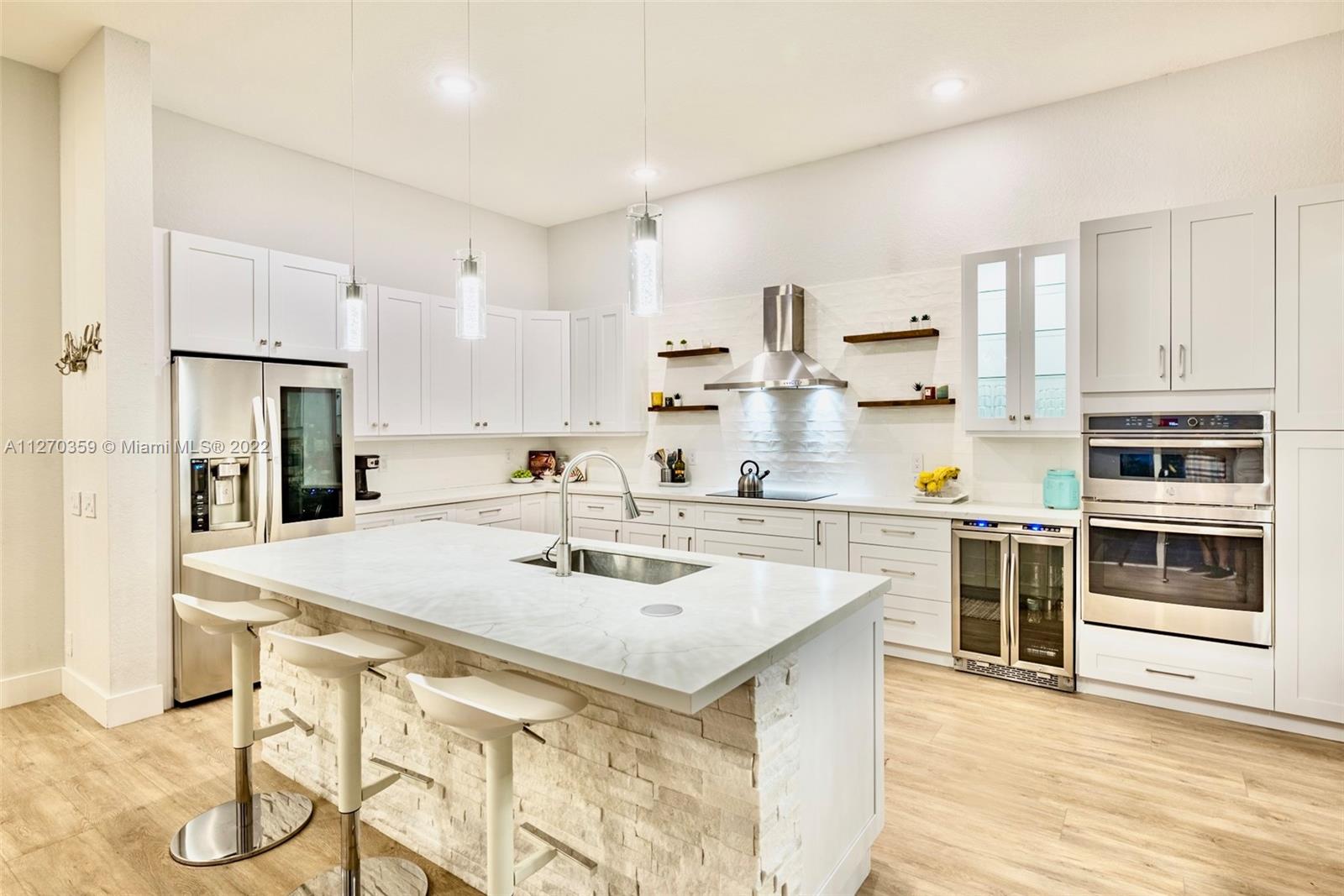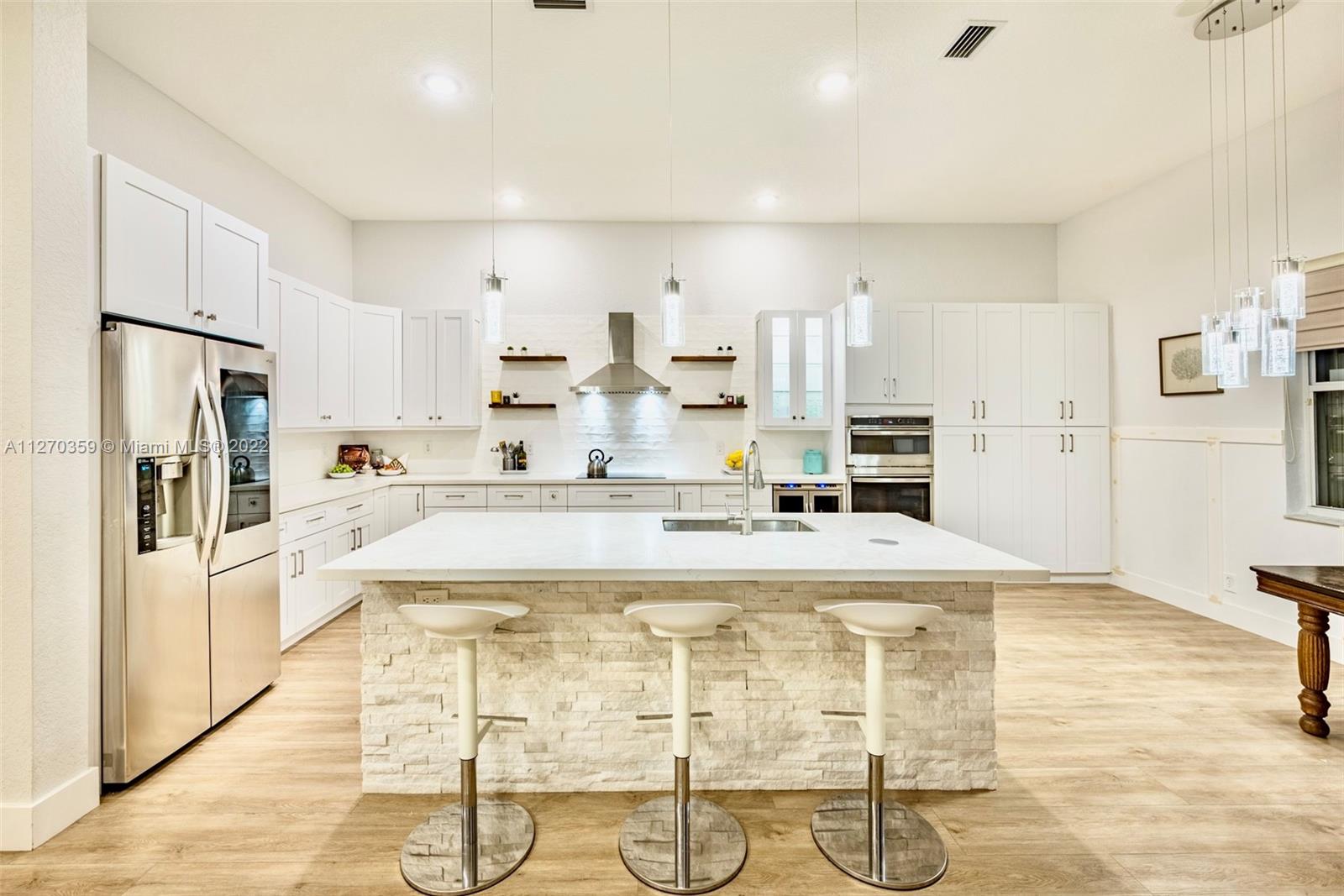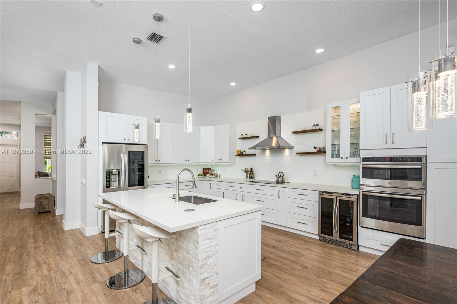 Welcome to this highly upgraded home set back on a quiet Royal Palm tree lined street in the prestigious guard gated community of Weston Hills Country Club. Enjoy all of the renovations in this gorgeous, meticulously maintained home including professionally designed white chef's kitchen, new flooring throughout, new custom moulding & shaker doors & new recessed lighting throughout. Gorgeous brand new modern heated swimming pool with smart LED lighting, upgraded tiles & diamondbrite (2022), new travertine pavers & fence (2022), Rheem A/C (2021). Professionally landscaped front & backyard. Bright open floor plan with volume ceilings make this home an entertainer's paradise. A quick walk to the playground, soccer fields, basket ball court & bus stop for Weston's A+ rated schools.