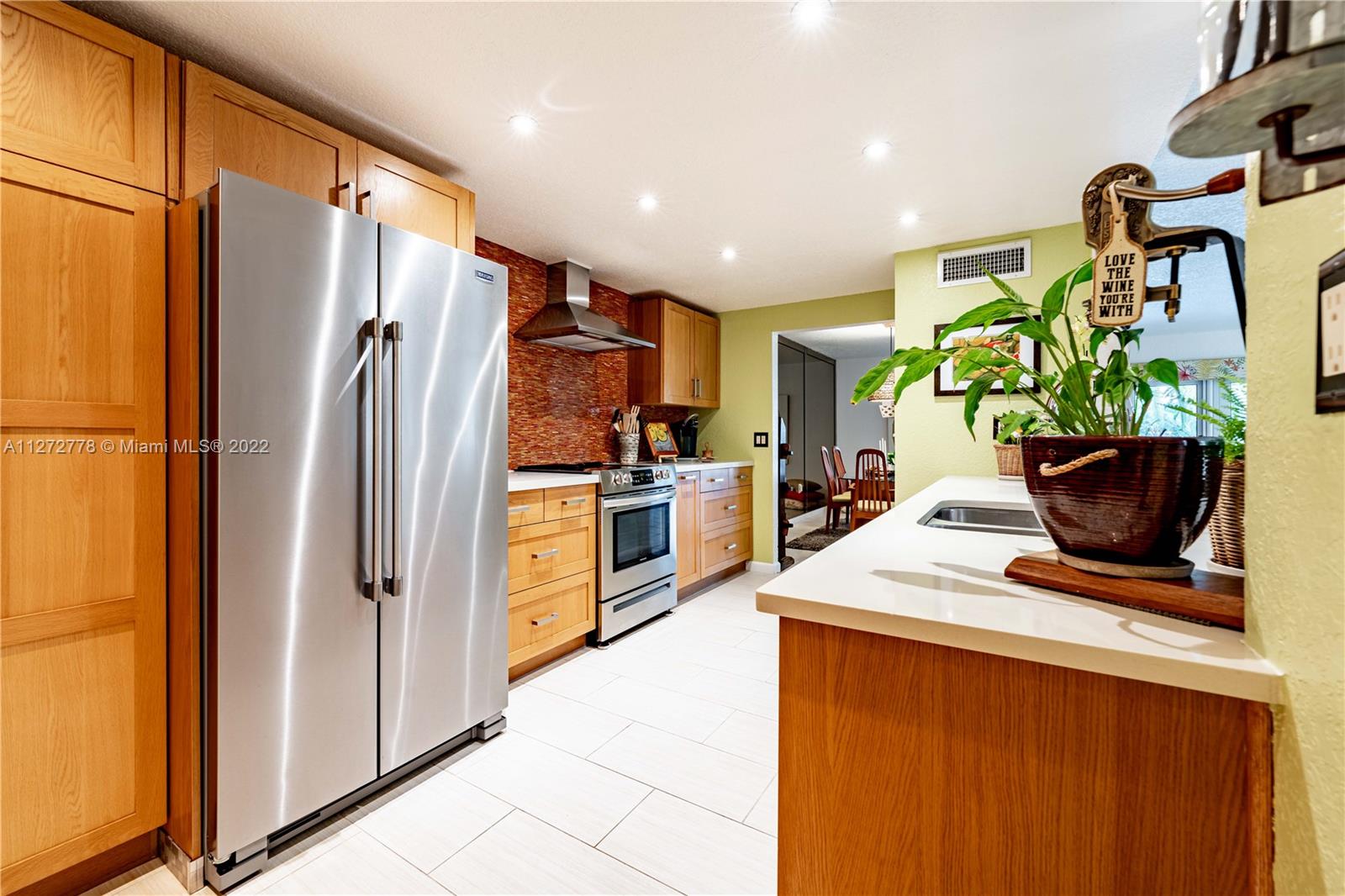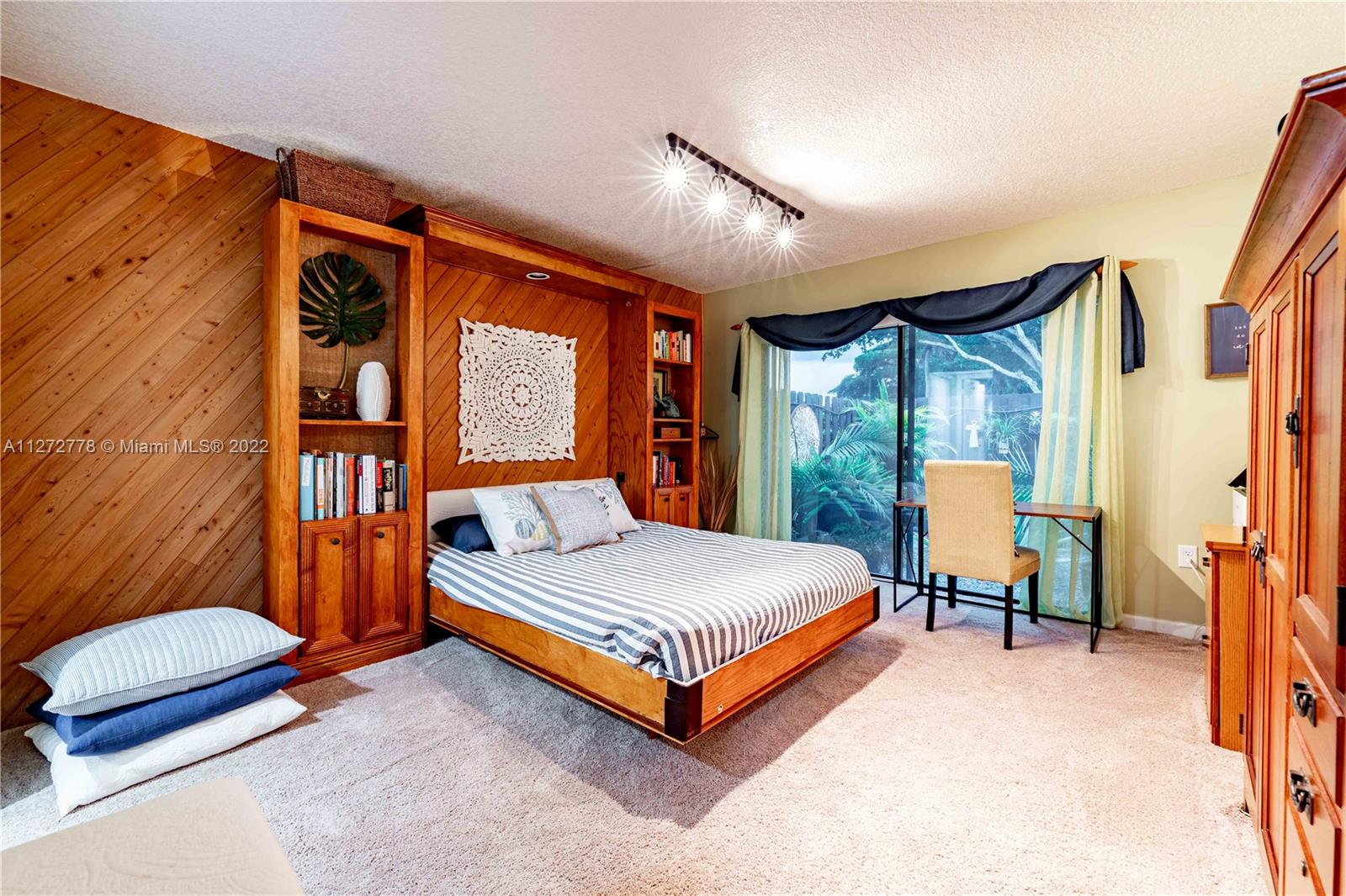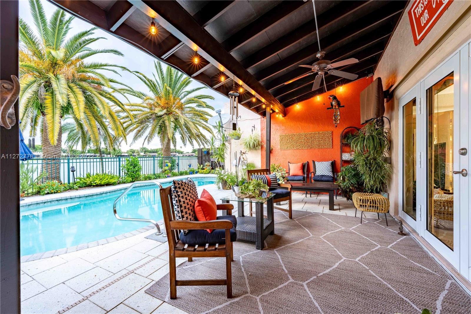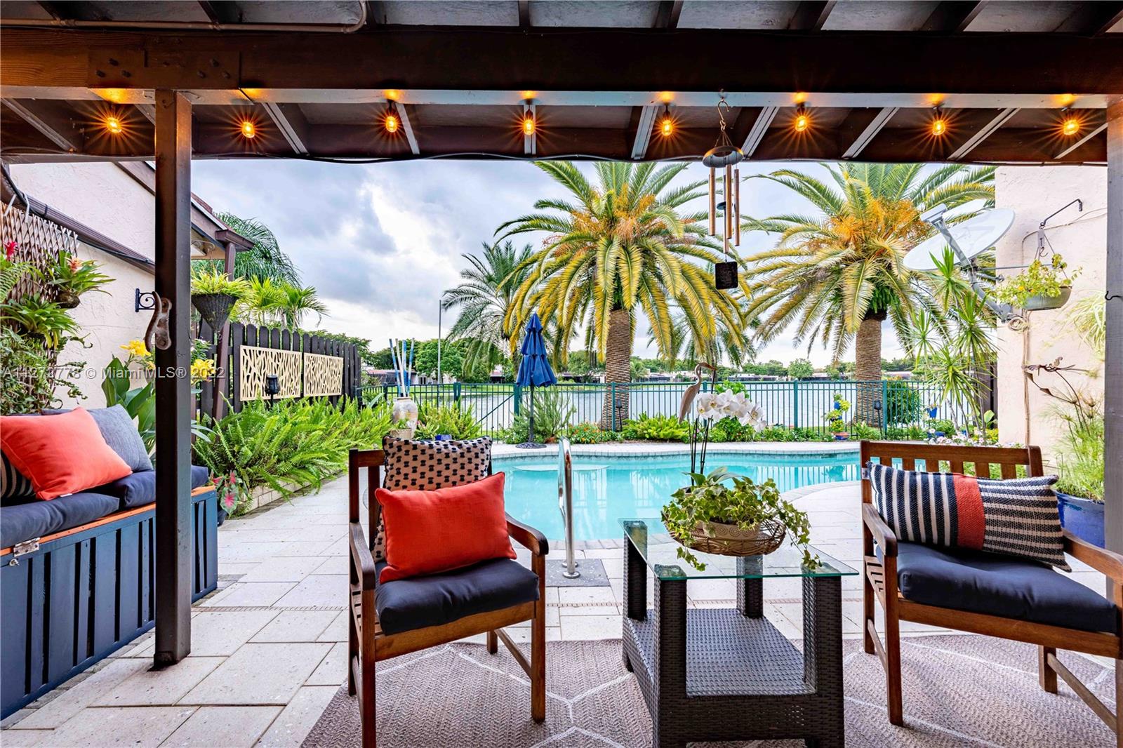 Absolutely Stunning Home with a pool overlooking the water! Walk into your new home with an amazing open concept, an updated kitchen with quartz countertops, updated cabinetry, water filtration system, plenty of pantry space, and newer stainless steal appliances. The master bedroom was finely decorated with crown molding and custom wallpaper, it also has walk-in closet and an amazing bathroom with a beautiful pedestal sink, and a large shower with two shower heads; the oversized second bedroom comes with a handcrafted Murphy bed and two closets. In your patio you’ll see this wonderful pool with a Saltwater chlorination system, upgraded landscaping, and also a customized pool pump storage. In addition this home features a brand new A/C installed in 2022. This is a must see.