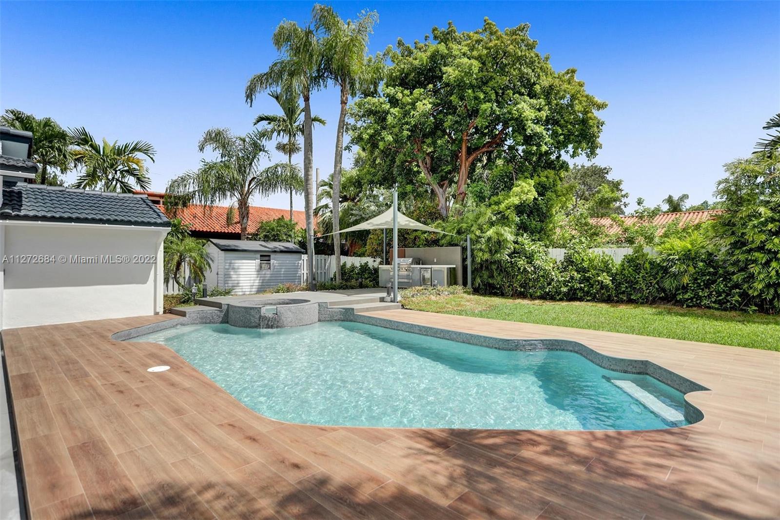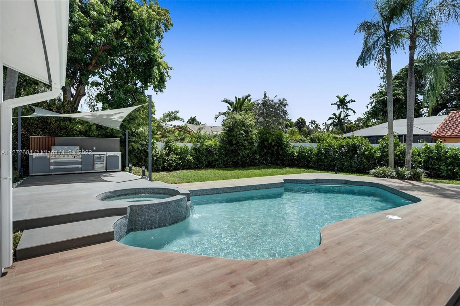 A fabulous lot of 9600+sqft.FULLY renovated beautiful neighborly street, modern designs, high-end materials. Located in the Gated community of HighlandLakes.OPEN FLOOR PLAN connecting living areas 4 beds,3 full baths, and 1/2 baths. There is ample IMPACT that enhances the natural light. The closets are all built-in with custom cabinetry and all rooms are spacious and great size. Porcelain floors, New appliances, wine cooler.Large backyard that bodes for a great entertaining space. Modern architecture. The superior construction and attention to detail are sure to please the most discerning buyer. The rarely available oversized lot includes a majestic pool and several lounging/play areas ideal for entertaining guests. Brand new summer Kitchen.Renovated roof, electrical,and plumbing conduits.