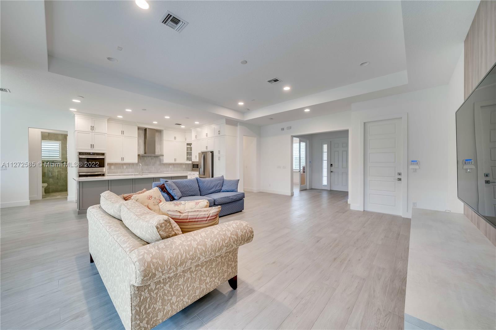 Like New - 4 bedrooms, 2.5 baths, 3 car garage home in gated community of Ranchette Ranches. Only 9 homes in this private gated community in the center of Cooper City; well known for its excellent school system. This home is fully upgraded with porcelain flooring throughout, fully upgraded kitchen with wood cabinets and quartz countertops, top of the line stainless steel appliances, plantation shutters throughout the entire home, upgraded bathrooms, impact glass, built-in high-end closet furniture and more. Over $100K of upgrades in this beautiful home with an airy open floor plan. 4th bedroom is currently used as a den; easily convertible by installing closet doors. Owner is ready to sell. Don't miss it.