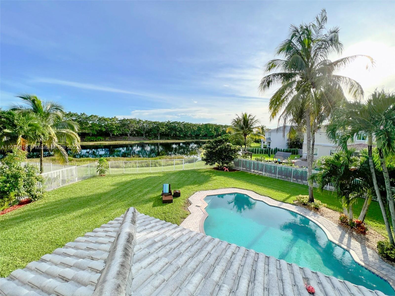 Home nestled in the exclusive The Ridges gated neighborhood. This home has it all!! 6 bathrooms, 4 baths and 3 car garage with pool and stunning lake. The kitchen boasts a center island, open clear space with an unique exterior view. The perfect balance for casual and formal entertaining alike. Glass sliding doors open to a private and bright backyard. Family room, kitchen, dining room and living room leads out to the patio.Walking distance to the best A+ rated schools and Weston library. 24 hour security service and a club house with amazing amenities such as pool, tennis courts, walking open spaces. Please come to make a tour and make this your new home.