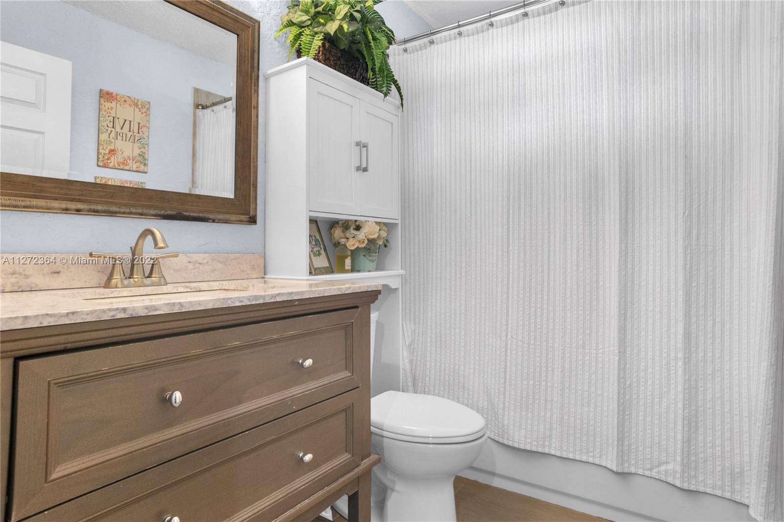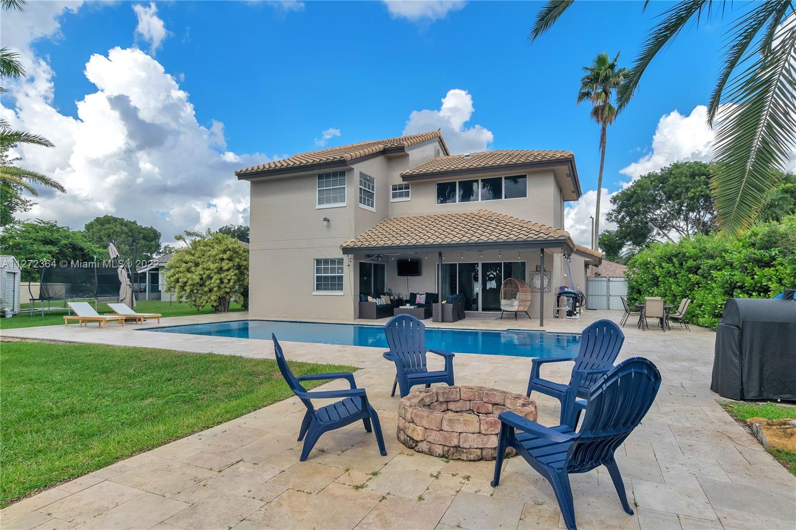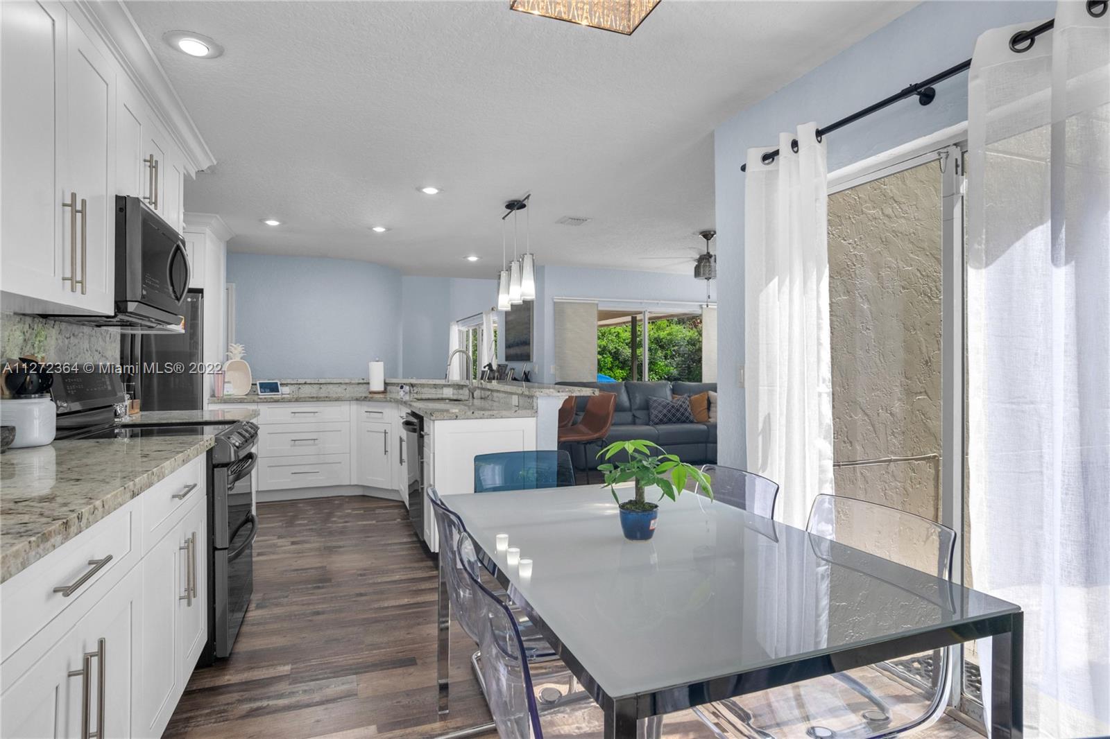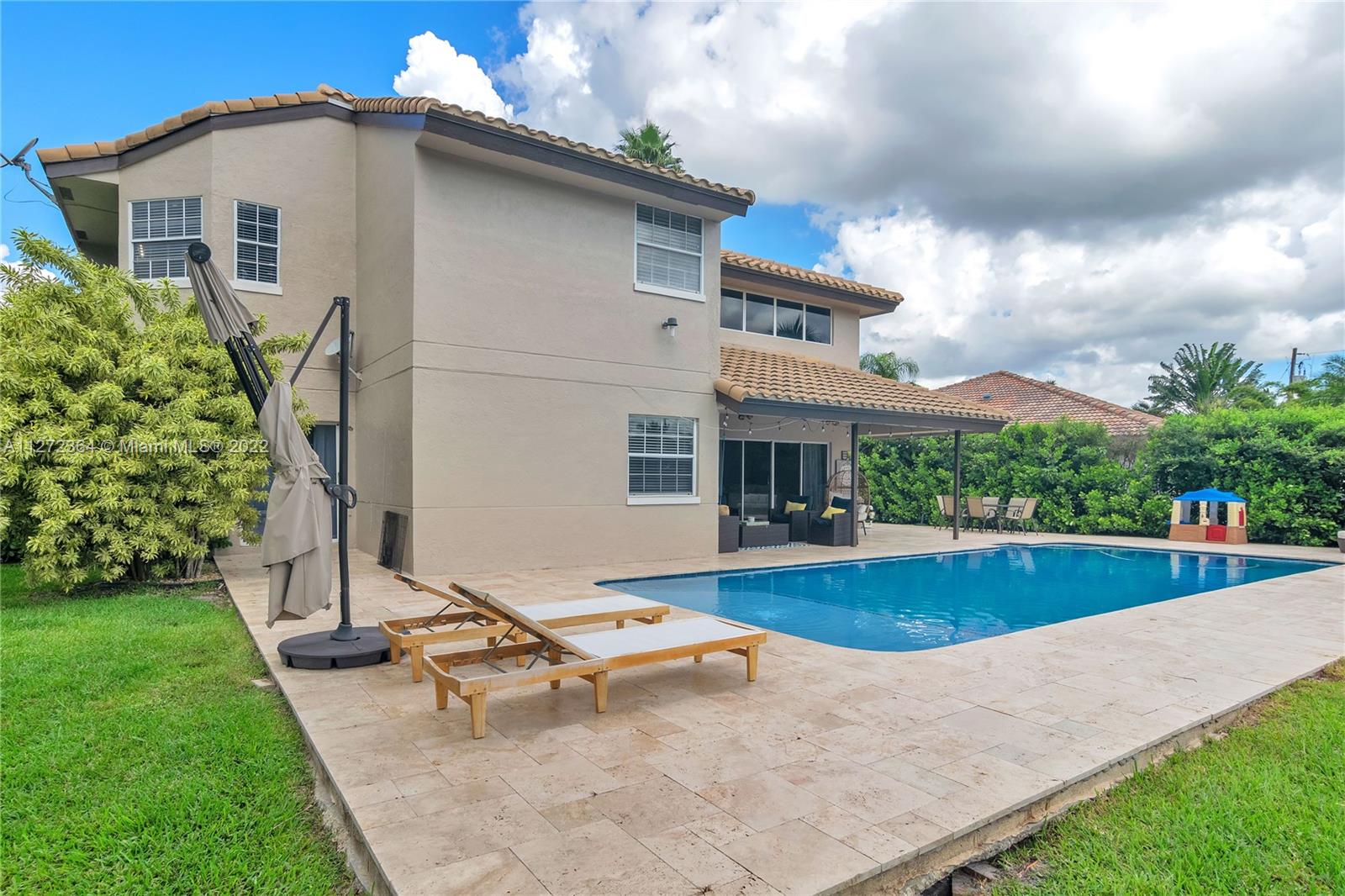 This gorgeous 2 story home in the hidden community of Stirling Village, offers all the modern design elements expected in a completely remodeled home. With dramatic vaulted ceilings, plenty of natural light, a grand staircase & engineered vinyl plank floors throughout. The spacious kitchen, remodeled in 2018 along with the 3 bathrooms, was designed for entertaining with an abundance of storage. 1 bedroom & bath downstairs; upstairs find the master suite, remodeled in 2021 featuring separate vanities and a glamorous freestanding tub. All bedrooms offer closet organization systems. The expansive corner lot boasts a sparkling salt water pool, resurfaced in 2019 with travertine pavers & a double wide gate perfect for boat access. The heart of Cooper City, surrounded by A rated schools. NO HOA!