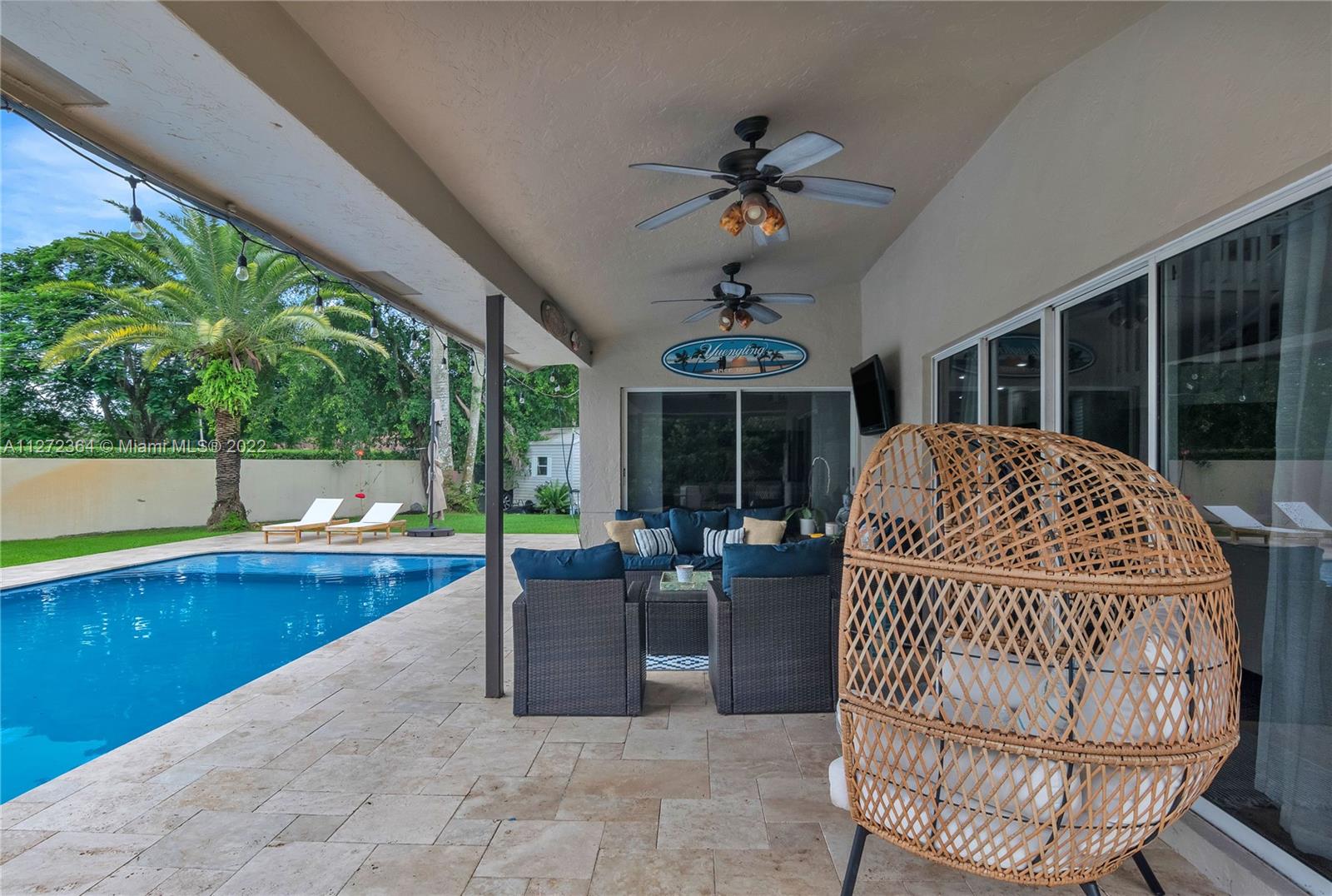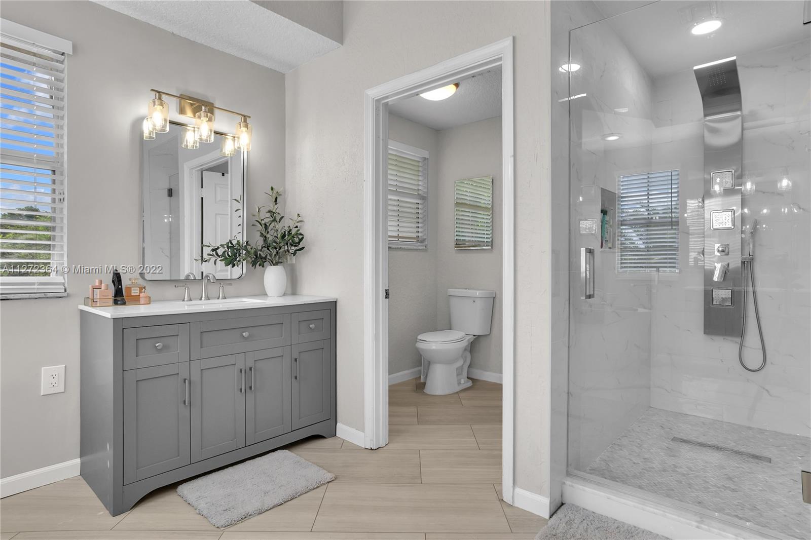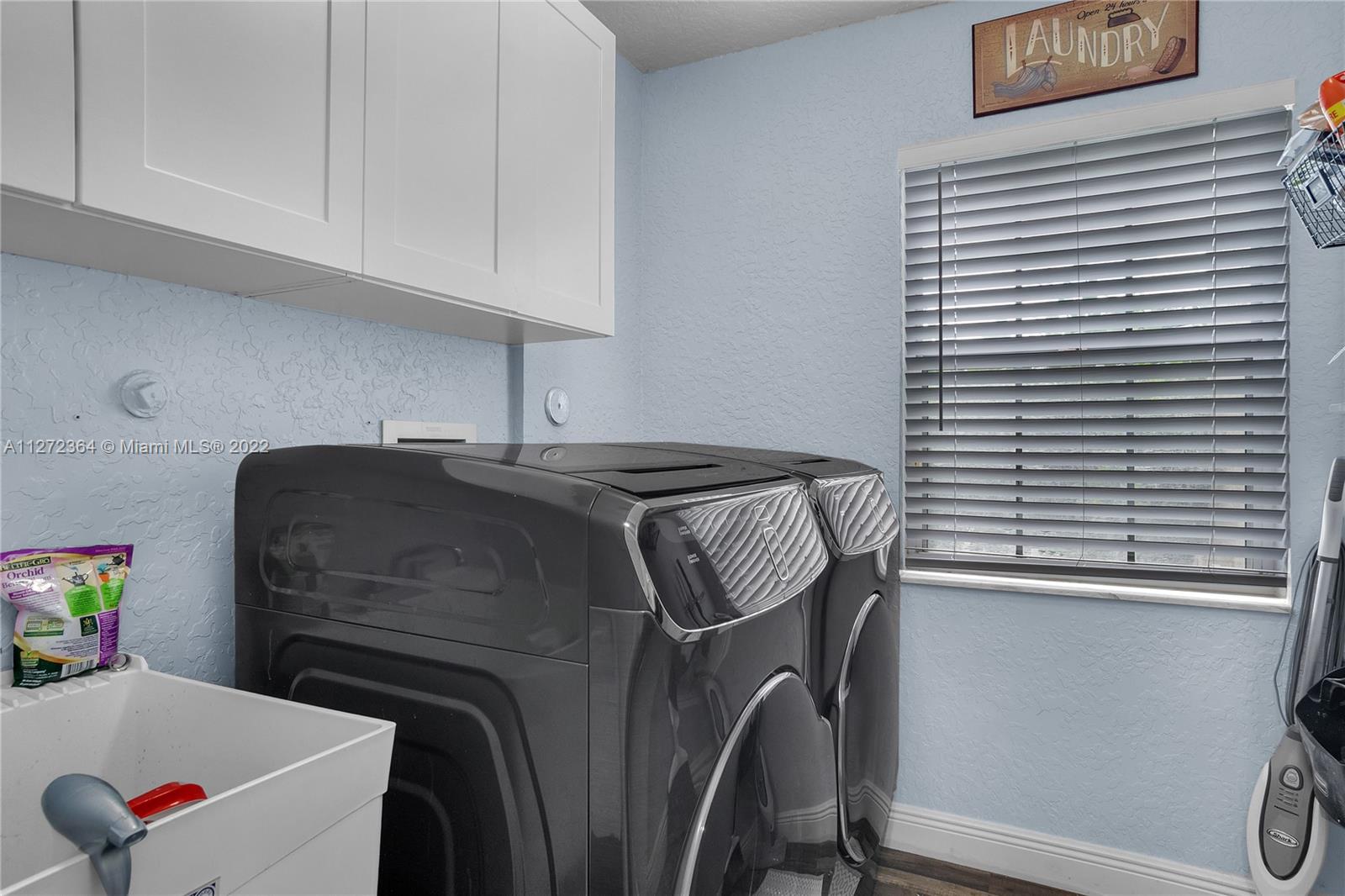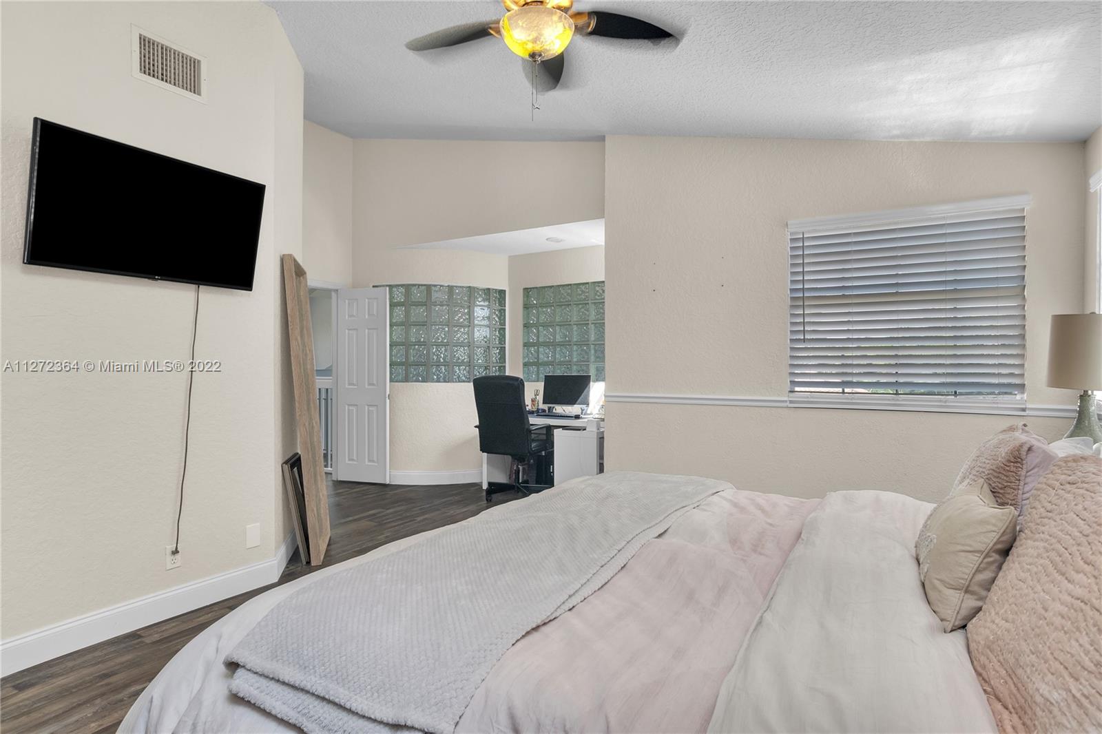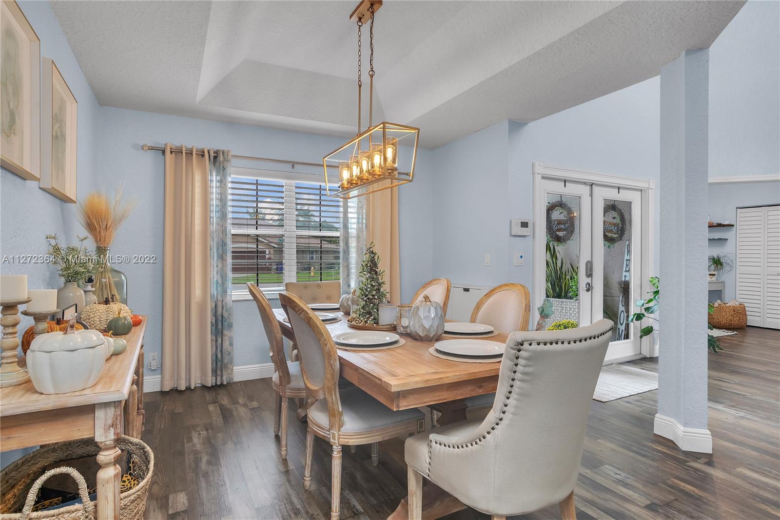 This gorgeous 2 story home in the hidden community of Stirling Village, offers all the modern design elements expected in a completely remodeled home. With dramatic vaulted ceilings, plenty of natural light, a grand staircase & engineered vinyl plank floors throughout. The spacious kitchen, remodeled in 2018 along with the 3 bathrooms, was designed for entertaining with an abundance of storage. 1 bedroom & bath downstairs; upstairs find the master suite, remodeled in 2021 featuring separate vanities and a glamorous freestanding tub. All bedrooms offer closet organization systems. The expansive corner lot boasts a sparkling salt water pool, resurfaced in 2019 with travertine pavers & a double wide gate perfect for boat access. The heart of Cooper City, surrounded by A rated schools. NO HOA!