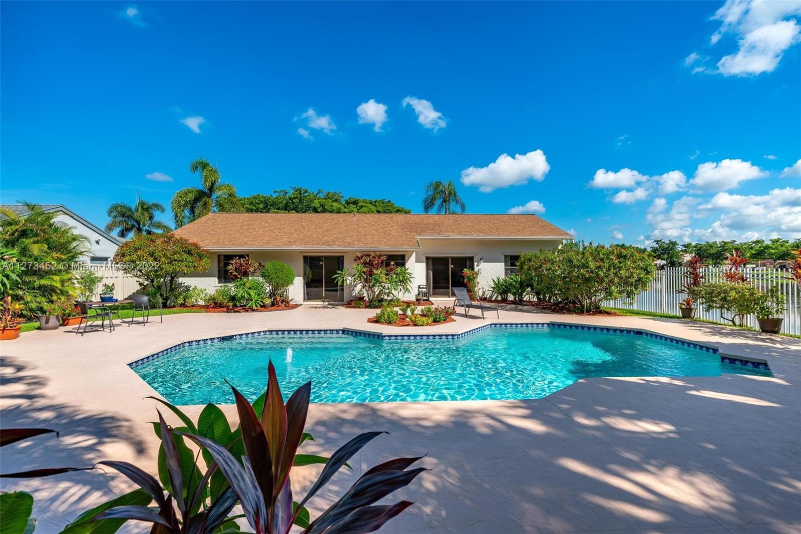 Florida living at it's very finest. Enjoy lake breezes on this huge corner lot with big sparkling pool, large deck & stunning water views. Double door entry leads to fabulous floor plan that easily flows from one room the next. This one has been meticulously maintained by the original owner. Upgraded kitchen with granite, bedrooms have laminate/vinyl flooring, tile throughout living areas. Outdoor oasis has breathtaking sunrises. Quaint front patio. Located on small cul-de-sac with super friendly neighbors. Shenandoah area has terrific walking paths for exercise or to go to the community park that features a splash pad, revamped playground, tennis & basketball courts. Easy access to highways, IKEA, Sawgrass Mall, Publix & short drive to airport or beaches. Excellent schools & Low HOA.
