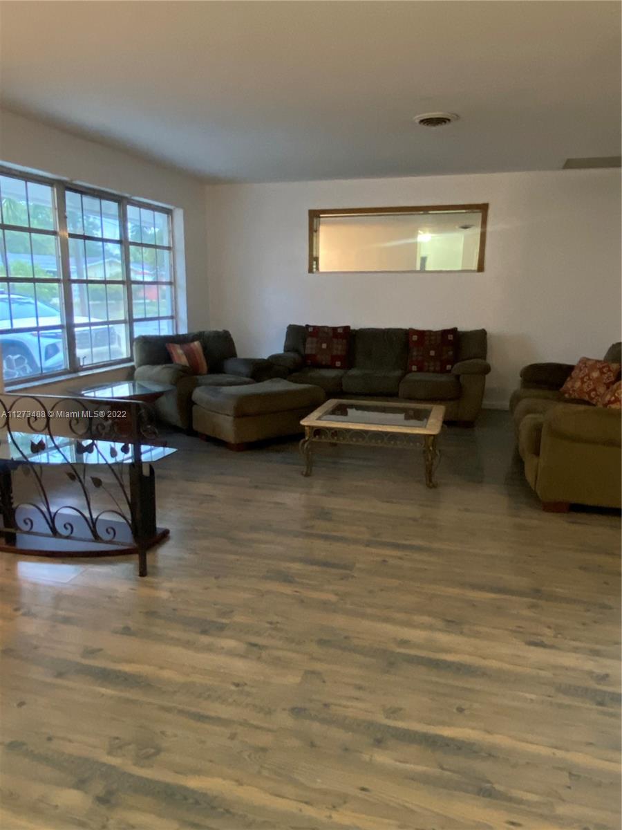 LIVE IN THE HEART OF HALLANDALE BEACH. VERY SPACIOUS SINGLE FAMILY HOME, 3/2, WITH AN OVERSIZED FAMILY ROOM ( COULD BE CONVERTED TO A FOURTH BEDROOM), WOOD LAMINATE FLOORS THROUGHOUT, HUGE LIVING/ WITH A FORMAL DINING ROOM, VERY SPACIUOS KITCHEN ( BRAND NEW REFRIGERATOR, AND RANGE OVEN STOVE. HOUSE HAS A SEPARATE LAUNDRY ROOM. CIRCULAR DRIVEWAY WITH A 1 CAR GARAGE. THIS IS A CORNER HOME, WITH AN OVERSIZED LOT. MASTER BEDROOM HAS FRENCH DOORS THAT LEAD OUT TO A WOODEN DECK TO YARD. NO HOA.