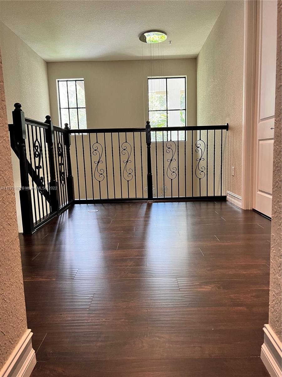 Welcome to The Grove at Raintree! This 2-story, 2.5 car garage Ventura model is tastefully updated to include custom 42" kitchen and master closet cabinetry, window shutters, entertainment unit consoles, ceiling fans, and an office/bedroom conversion. The open floorplan on the first floor provides a surrounding view from the kitchen, which includes stainless steel appliances. Porcelain tile on the main floor and upgraded dark wood laminate on steps and 2nd floor. Large master bedroom w/ double door entry features custom drapery, private patio, dual sinks, and walk-in closets. Each bedroom includes a full, private bathroom. The third bedroom is currently converted into an office with custom desks and cabinets. Convenient location near the clubhouse, pool, mail kiosk, and more.
