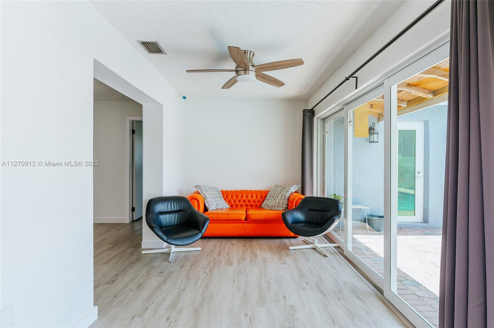Not much upgrading to do in this beautiful upgraded 3 br. 2 ba. home. You will walk into this home and notice so much living space right from the beginning. Impact windows and doors. New roof installed last year, 100% Vinyl flooring with PVC baseboards. New air handler and condenser. Gas line for Dryer and range. LED recessed lights. Gorgeous new kitchen that overlooks the pool. Master bath has a beautiful walk in shower as well as a door to the outside patio/pool. Hallway bathroom remodeled with tub and shower. 3 access points for internet, living room, TV area, and inside the master closet for security purposes (security cameras etc.) All the walls have been been painted white for a blank canvas. Separate laundry room off the kitchen with door that leads outside and to the garage.