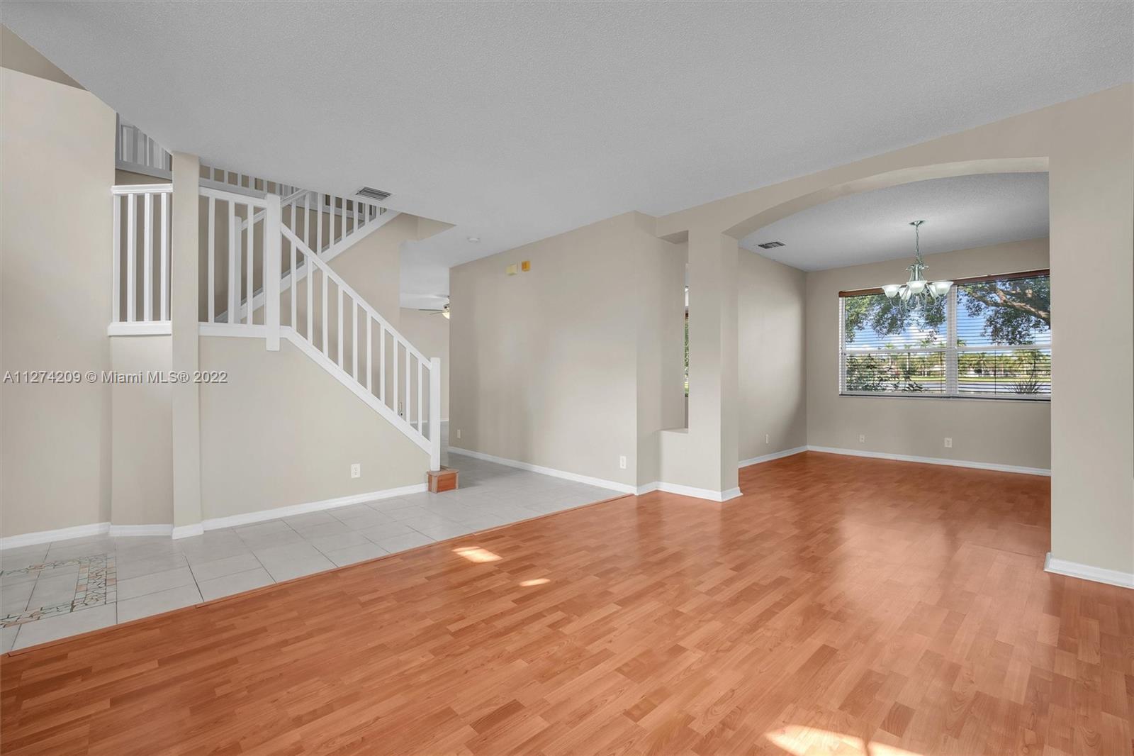 Awesome tropical paradise: 4 Bedrm, 2.5 bath home, amazing lake views in gated resort community of Pembroke Falls. Spacious living area w/ family rm, formal dining, living rm. Gourmet water view eat-in kitchen, new stainless steel appliances incl gas range, wood floors throughout most of home. Huge primary suite w/ large walk-in closets, big bath, roman tub, dual sinks. Superb over-sized waterfront lot, mango, avocado trees, covered patio. Resort-level community amenities: spectacular clubhouse, community pool, fitness center, tennis complex, basketball, much more. HOA dues include: cable, internet, alarm monitoring, 4 manned gates. Great location, super Pembroke Pines Schools. Walk to Grade A Lakeside Elementary. Close to shopping, dining, parks, I-75, easy commutes in every direction.