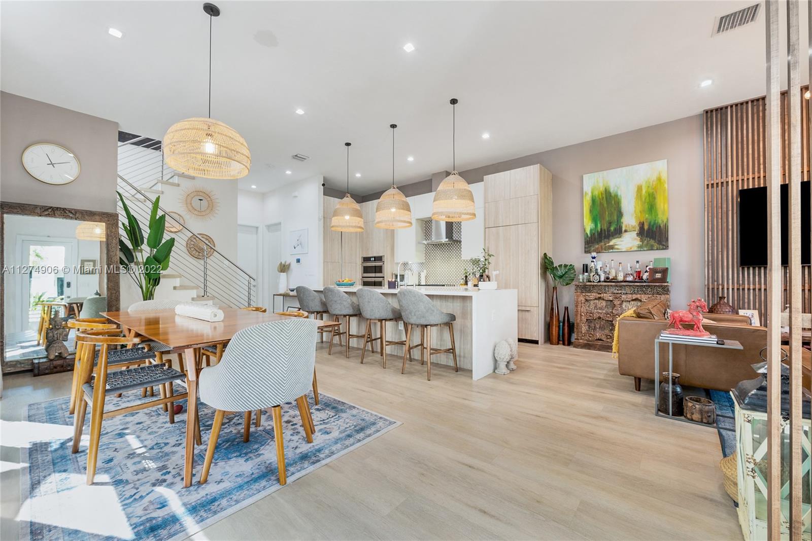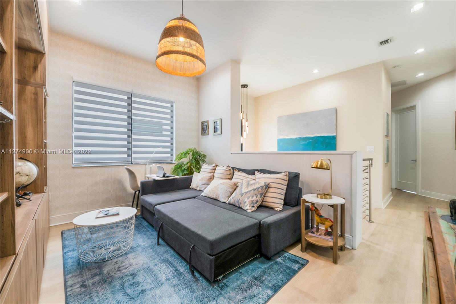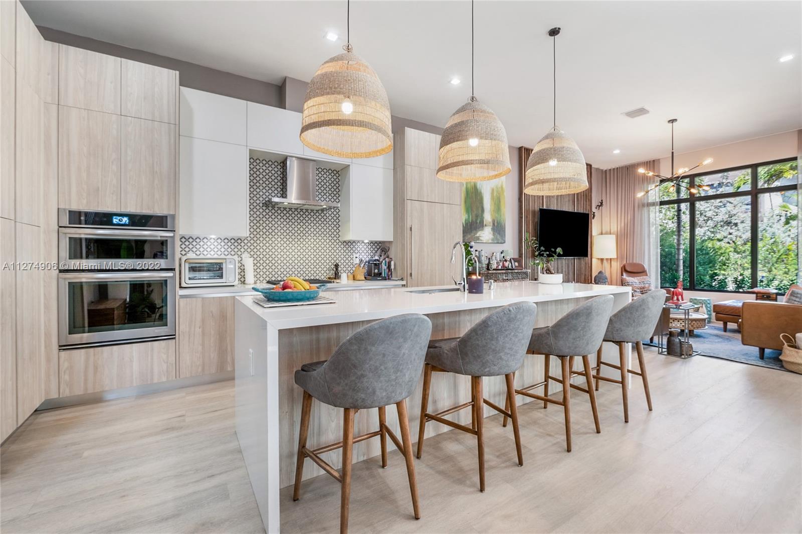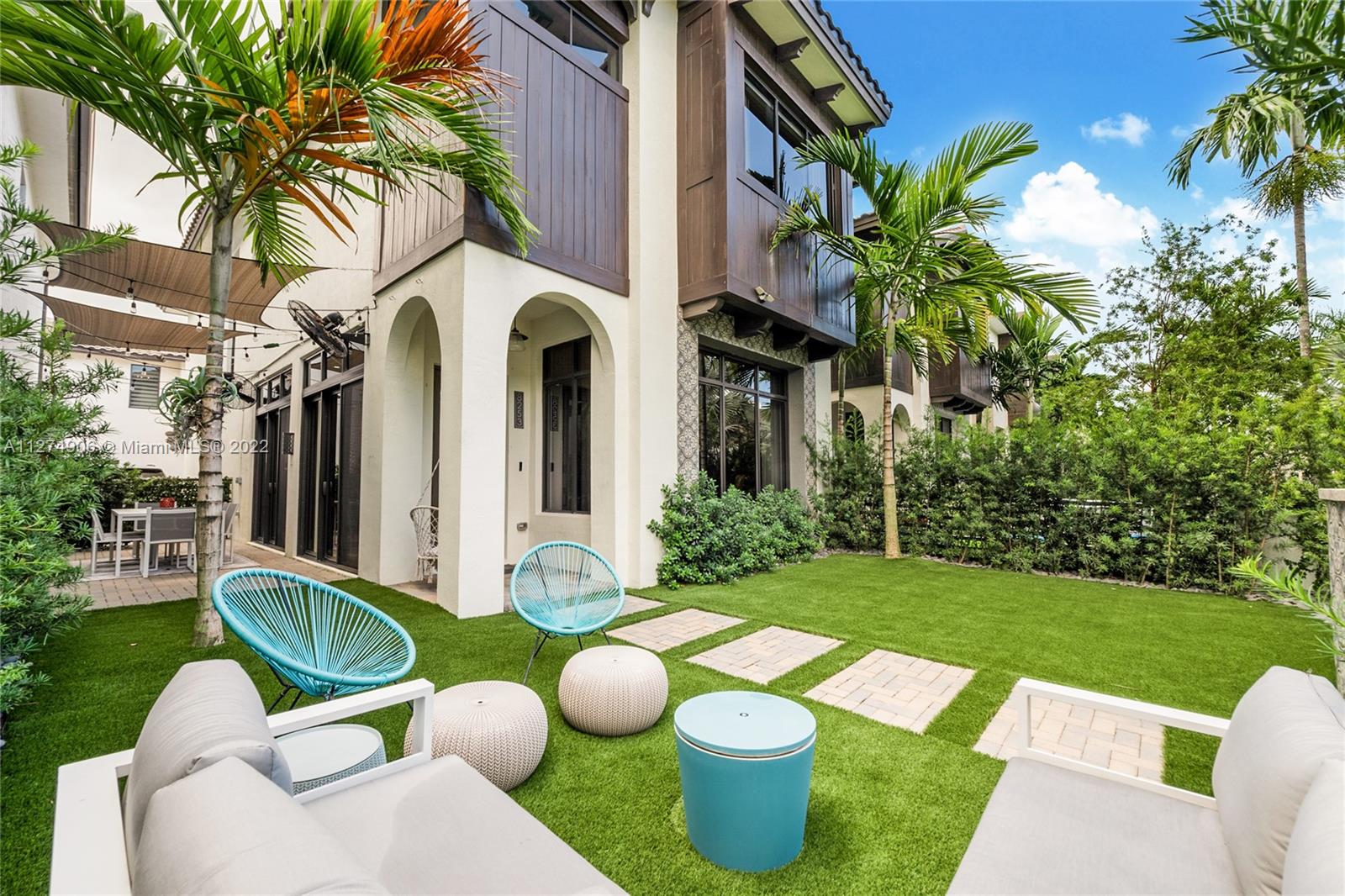 One of a kind single home upgraded with exquisite taste in Downtown Doral. This immaculate home features 3 bed + den 3.5 bath with upgrades such as waterproof wood looking laminate flooring throughout, LED recessed lighting, custom stairs. Kitchen has gas cooktop, Italian tall cabinets, upgraded backsplash, waterfall island, and top of the line Jennair appliances. Custom wood panels in living and Master Bedroom, Italian bathroom cabinets, Californian walking closets in all bedrooms and designer wall papers in main areas and mural in Master as well floor to ceiling linen curtains. Built in library in den area. Impact windows. New garage storage design with high graded epoxy floors. Association approved artificial turf in wrap around terrace with separate dinning, seating and play area