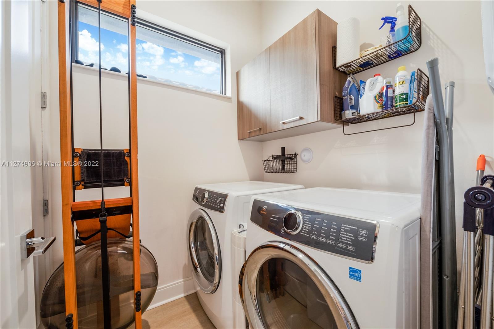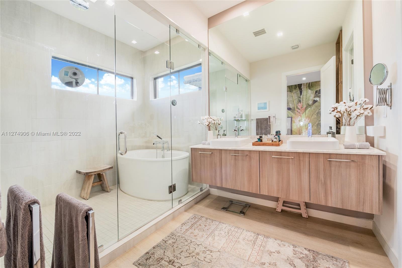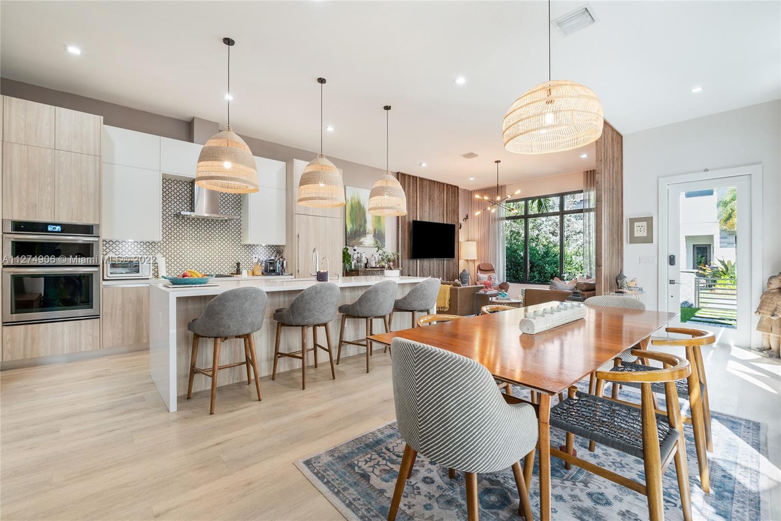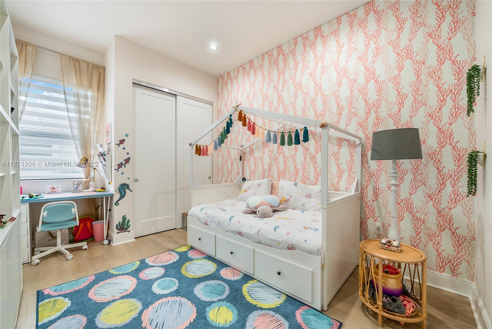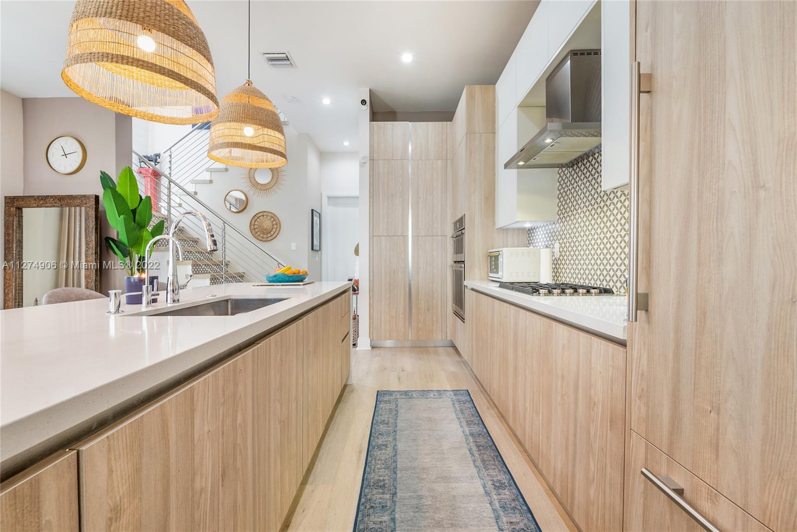 One of a kind single home upgraded with exquisite taste in Downtown Doral. This immaculate home features 3 bed + den 3.5 bath with upgrades such as waterproof wood looking laminate flooring throughout, LED recessed lighting, custom stairs. Kitchen has gas cooktop, Italian tall cabinets, upgraded backsplash, waterfall island, and top of the line Jennair appliances. Custom wood panels in living and Master Bedroom, Italian bathroom cabinets, Californian walking closets in all bedrooms and designer wall papers in main areas and mural in Master as well floor to ceiling linen curtains. Built in library in den area. Impact windows. New garage storage design with high graded epoxy floors. Association approved artificial turf in wrap around terrace with separate dinning, seating and play area