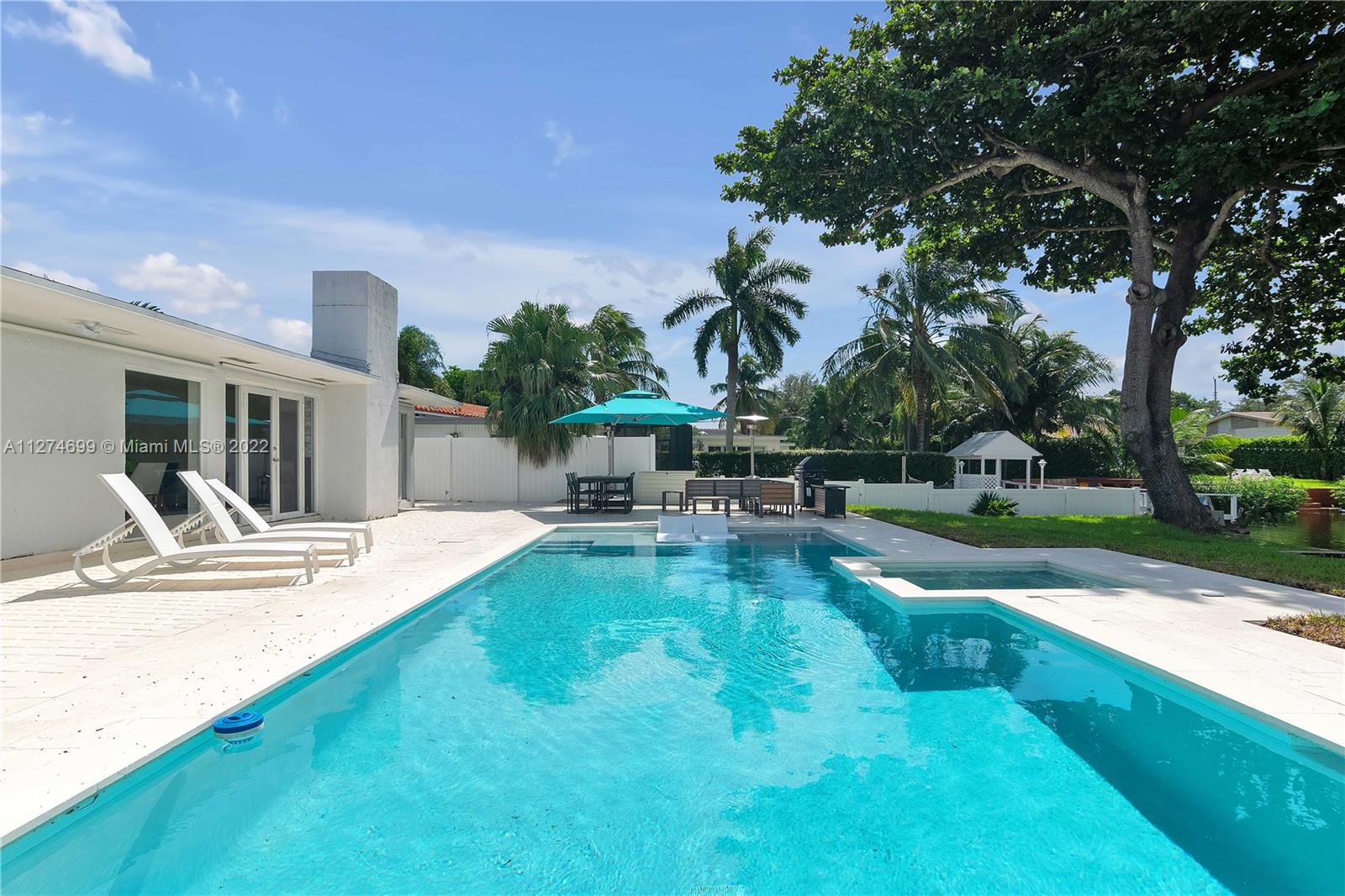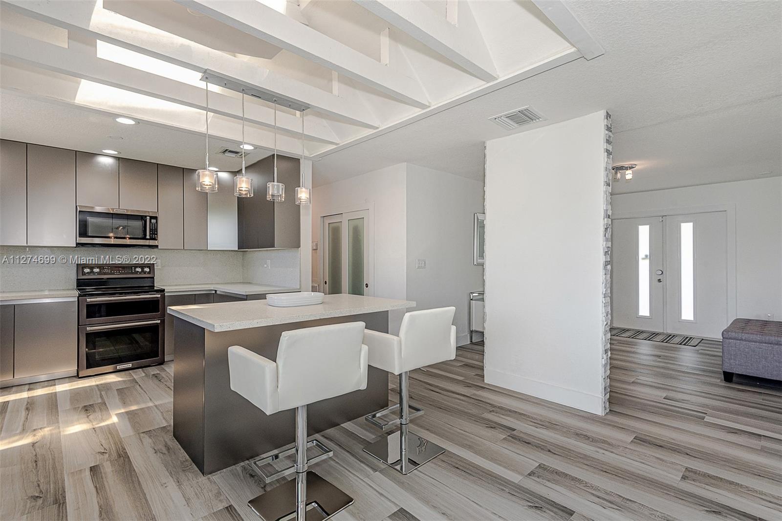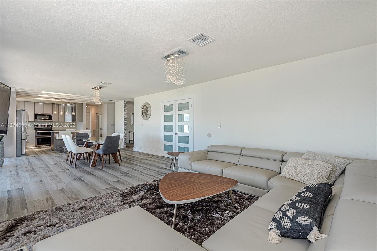 Fully Furnished- Ready to move in! Fully renovated 3Bed 2Bath (1800 sq ft) modern pool home, gorgeous lake views, pool and 6 jet jacuzzi. Outdoor tiki structure, 6 burner grill & outdoor fridge, table seating for 8. Ideal setting for a family, or turn-key short term rental. Property has short-term rental permit and verifiable rental income. Kitchen is open-design with island, quartz countertops and tile backsplash and skylights. Stainless steel appliances and double sinks each with gooseneck sink faucets. Samsung W/D. Located in the beautiful area of Highland Lakes, close to I95. Minutes from Aventura Mall, restaurants, beaches, parks and places of worship. Gorgeous lake and pool views must be seen to be appreciated. Note: Property appraiser reflect incorrect sq ft 2265 vs 1800 actual.