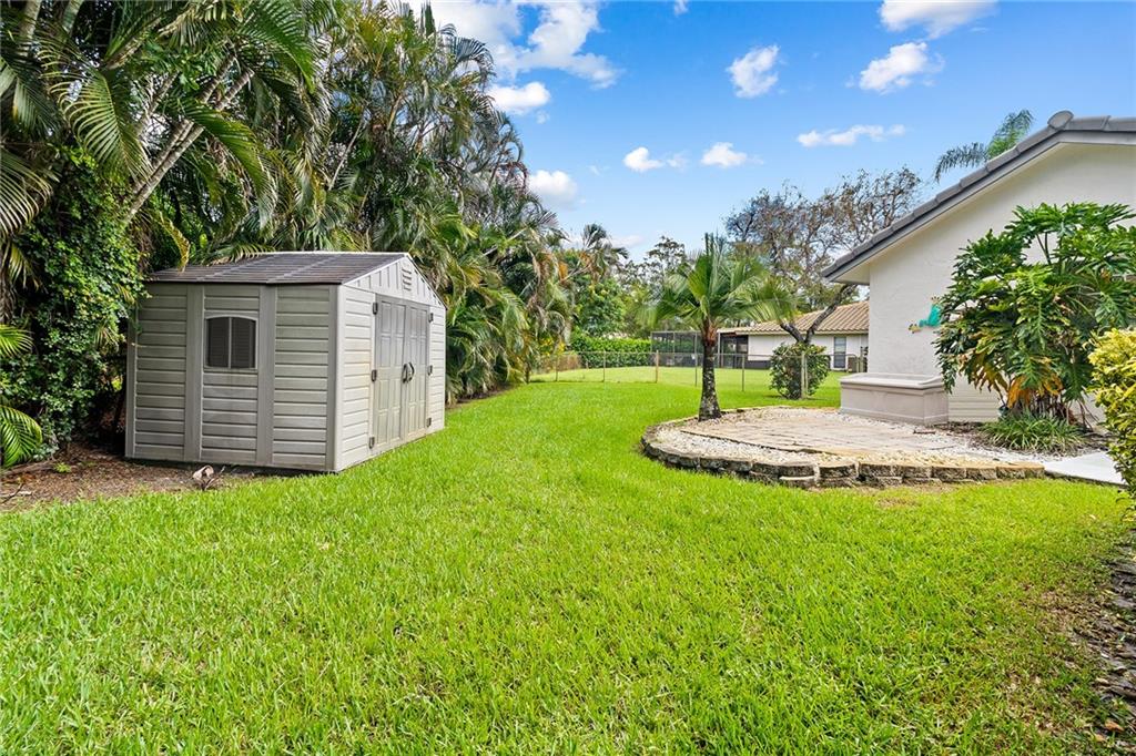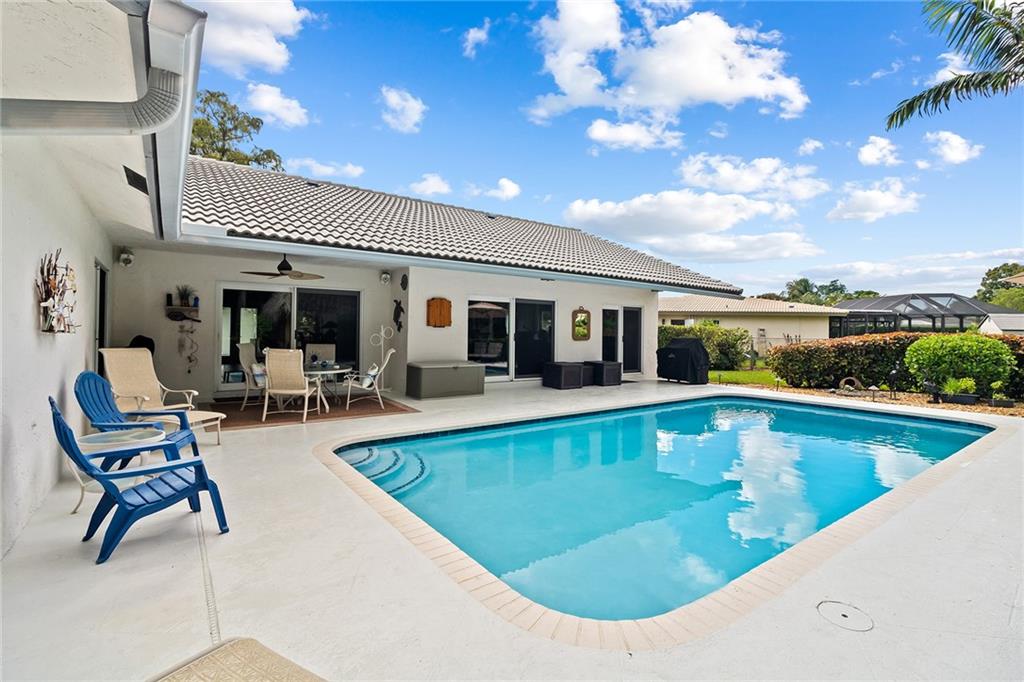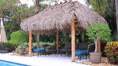 Highly desirable Ramblewood area pool home, 2cg -remodeled with a tropical/resort style and a very private 13, 631 sq ft manicured pie lot with 168 ft wide back yard full of greenery! Tiki hut and extended patio deck surround the oversized heated 30x15 pool which was remarcited in 2022. Updated designer kitchen and baths include stainless steel high-end appliances. New central ac 2017. Double pane argon filled hurricane windows with extra UV protection on the west and south sides. Custom base and crown molding throughout. Reverse osmosis filtration in the kitchen. 50 Amp car charging station in the garage. 6.5 kilowatt hurricane generator. Rust free sprinkler system. New tankless water heater 2021. Long time owners selling their private oasis. Very well maintained-move in condition!