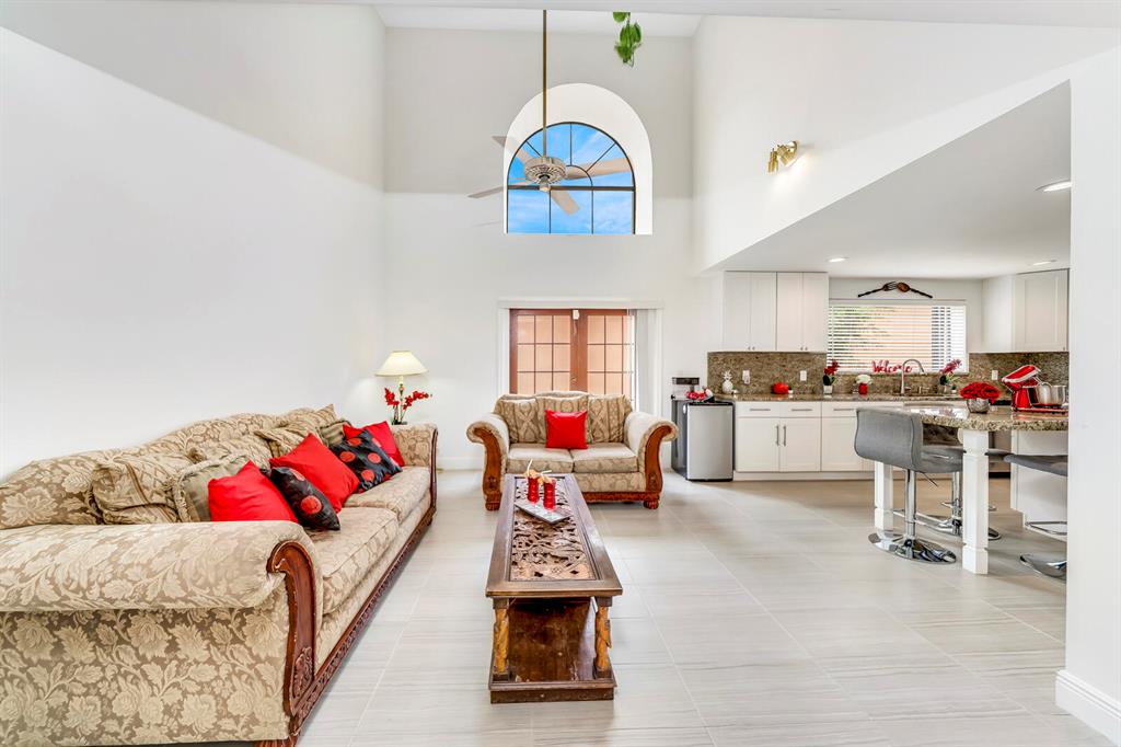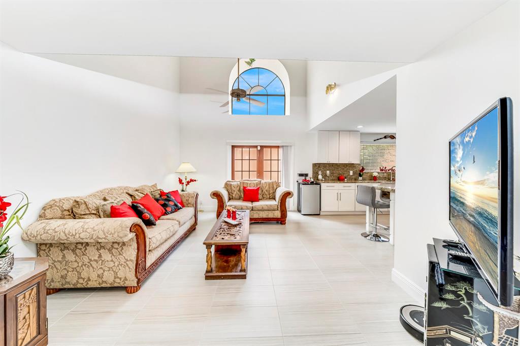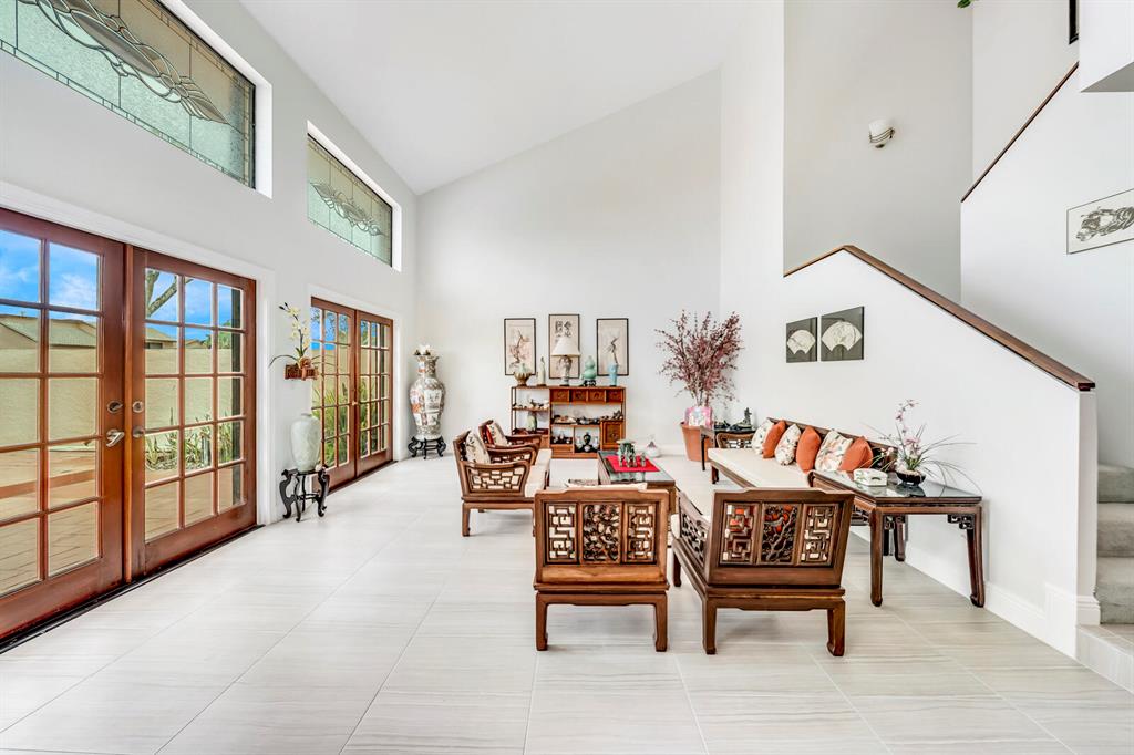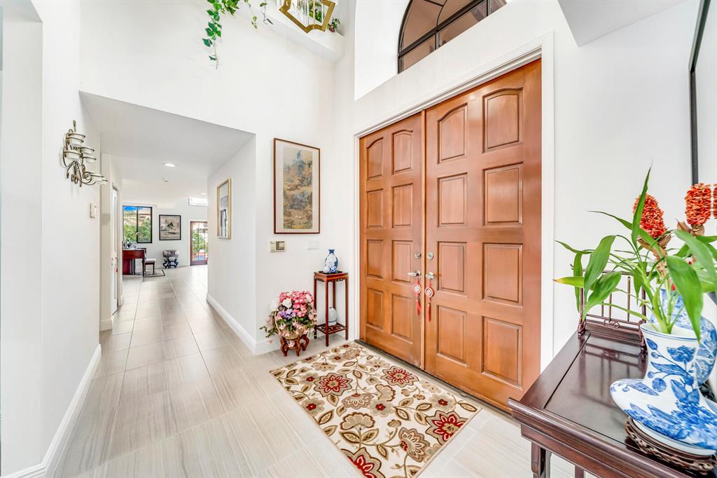 Wow!! Spectacular Mediterranean ''Monte Carlo'' Largest Model Home in Boca Pointe's Villa Flora. Featuring 4 Spacious Bedrooms (all bedrooms have large walk-in closets) 4 Full Baths/2 Car Garage/ Pool/on the water. Long driveway leads to the private & elegant wrought iron double gate/dramatic entrance w/soaring volume ceilings where you really enjoy the sense of openness, volume, & space. Newly remodeled gourmet kitchen w/tons of upgrades including granite countertops & backsplash, Stainless appliances, wood cabinets that go all the way to the ceiling, a huge island that doubles as a snack bar & 2 large pantry's. Family Room off the kitchen with Volume 17 foot ceilings. Large Formal Dining Room + Huge Living Room with 19 foot volume ceilings & views of the beautiful pool Plus