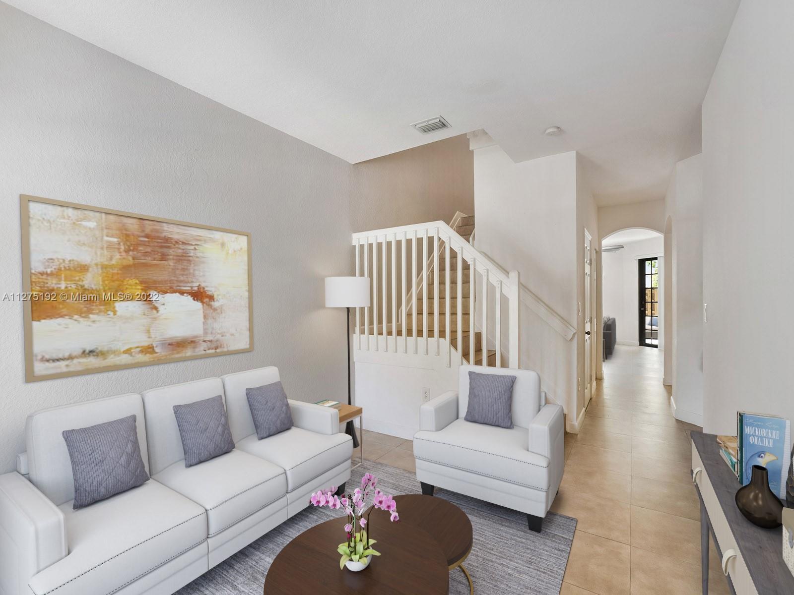Beautiful and spacious townhome in the sought after community of Milan in Doral. Features 4 bedrooms, the main bedroom has a balcony with views to the backyard, large bathtub, separate shower and walking closet, 2.5 bathrooms, porcelain tile throughout, relaxing backyard with a beautiful tree, stainless steel appliances, New Air Conditioner, Less than 1 year old Washer, Dryer and Microwave, granite counter tops, 1 car garage and space to park 2 more cars at the front. Milan is a gated community in the heart of Doral, pool, gym, right next to the Veteran’s Park, a short distance to excellent schools, and on the same street as the U. S. Southern Command. All rooms are upstairs.