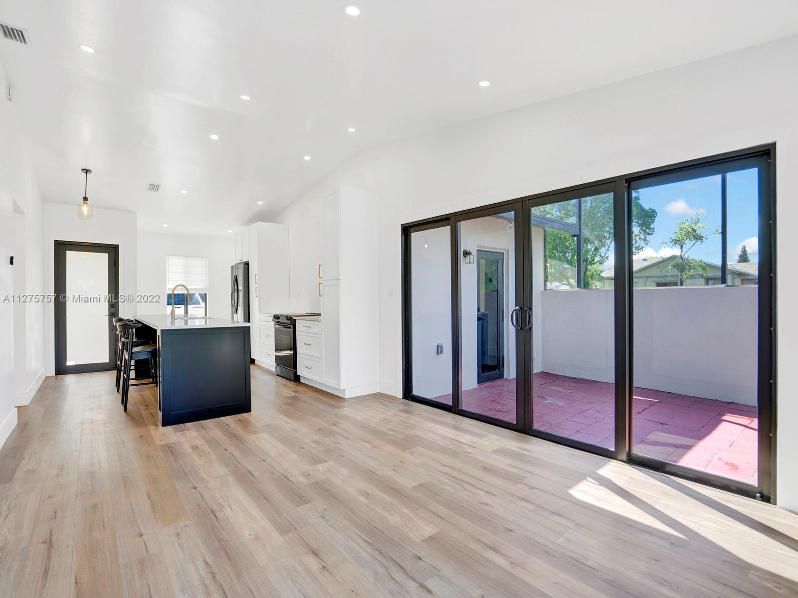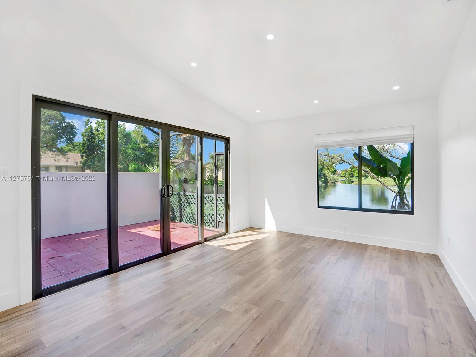 Enjoy all the bells & whistles of this sleek & modern 2 Bedroom 2 Bath home in the highly desirable Meadows of Miramar. East facing corner lot with beautiful lake views from living area, master & enclosed patio. Impact windows & doors. Flooring throughout resembling Oak wood finish. Freshly renovated bathrooms with modern stone tops. Custom linen shades & LED lighting throughout home. Contemporary kitchen with new appliances & custom wood cabinets to include deep drawers, pull out pantry & stunning 10ft island featuring an open kitchen concept. Lovely community recreation area featuring an array of amenities. One car garage with new Samsung washer & dryer and storage cabinetry. Located in the heart of Miramar just minutes from major highways. A one of a kind home in this neighborhood.