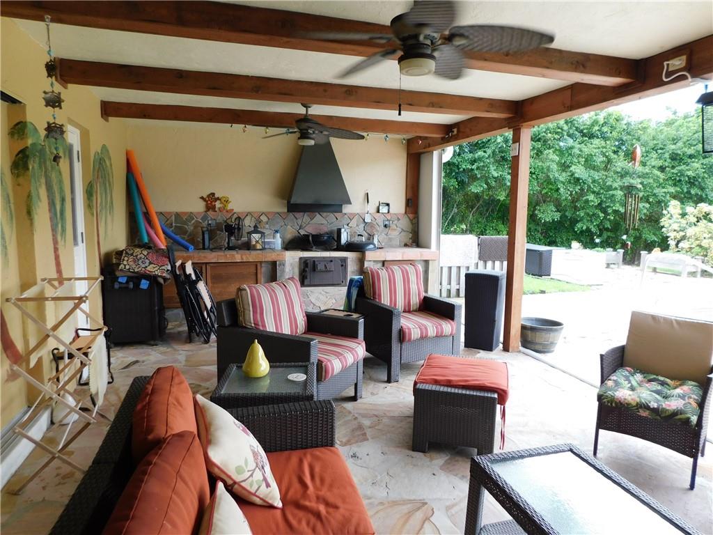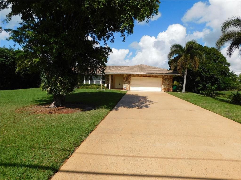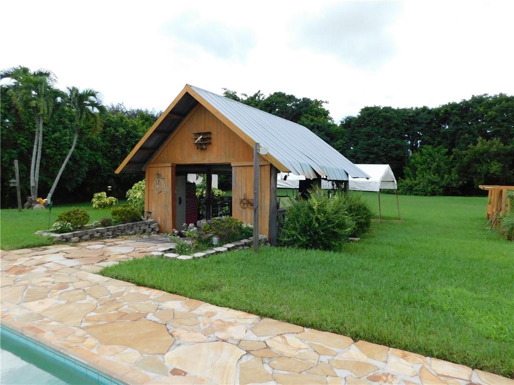 Great Opportunity to live in Plantation Acres! Home features 20 X 40 Oversized Pool 8ft Deep with Spacious Roofed Patio Area and Pool Deck and Gazebo 20 X 15 for Entertaining, Plus 3 Bedrooms 2 Baths with 2 car garage, Wood Cabinets in Kitchen with Large Breakfast Bar plus Coffee Station, Interior Laundry/Utility Room with Cabinets for Extra Storage, Nice Foyer Entrance with French Doors Leading to the Living Room, Open Family Room Adjoining the Kitchen, Lot Approximately 42,345 Sq. Ft. with 2 Storage Buildings/Area Plenty of Room For RV/Boat , Yes Horses Allowed!
