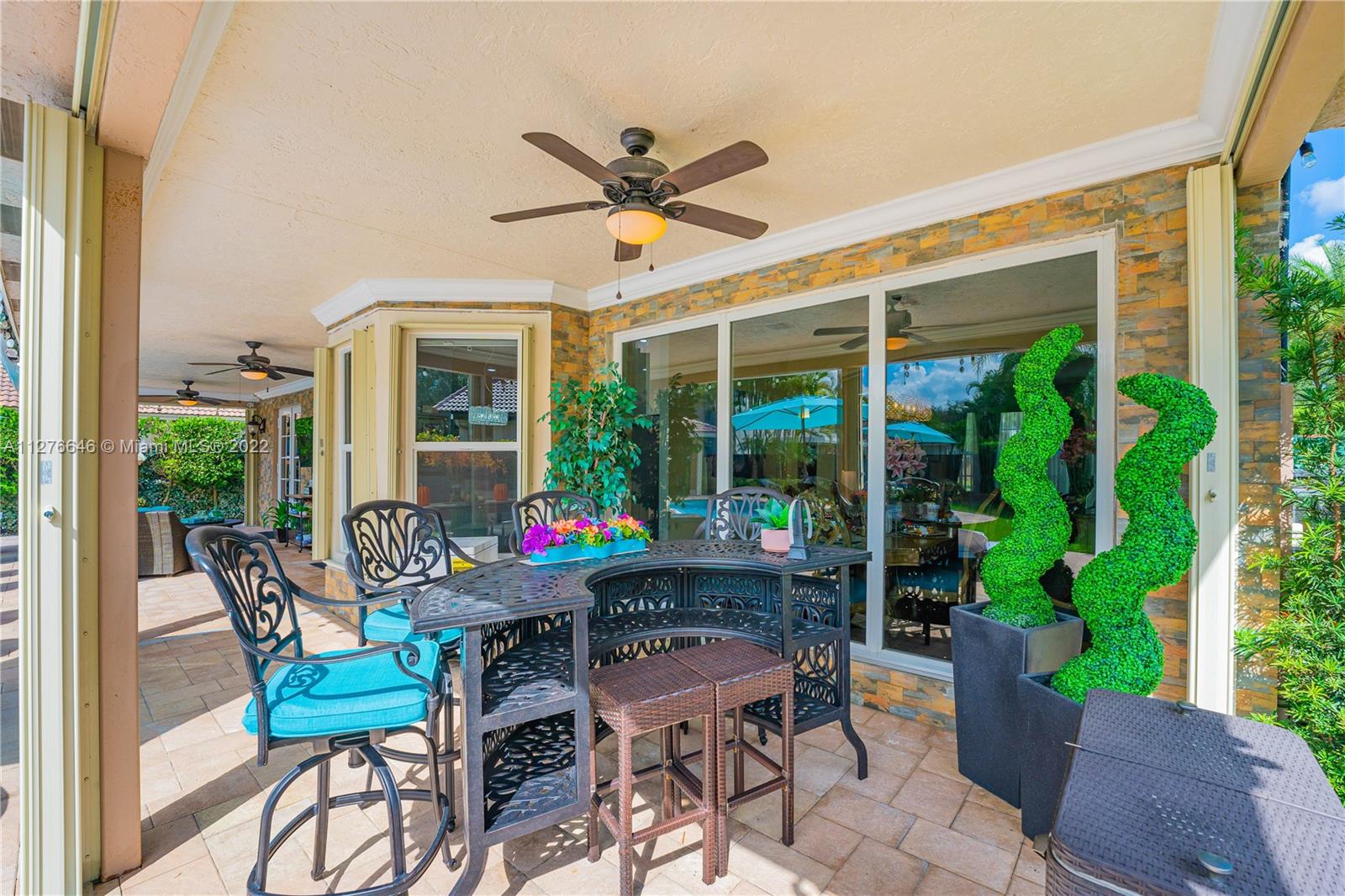 Immaculate one-of-a-kind gem situated in the sought-after gated community of Stoneridge Lake Estates. The Bal Harbour model features 4 Bedrooms, 3 Full Baths, Family Room, and 3 Car Garage. This home is complete with every comfort imaginable, an expansive covered patio ideal for entertaining with an abundance of outdoor space designed to create a uniquely refined indoor/outdoor living experience. Saltwater Pool with Swim-Up table, Gazebo, Fireplace. Renovated with HIGH-END finishes, Impact Windows & Doors, Generac Generator, Newer A/C. Spacious living areas with elegant details, Butler’s Pantry, Wet Bar in Family Room, 2022 High-End Stainless-Steel Appliances, the list goes on! This spectacular home offers a unique opportunity to reside in your piece of paradise.