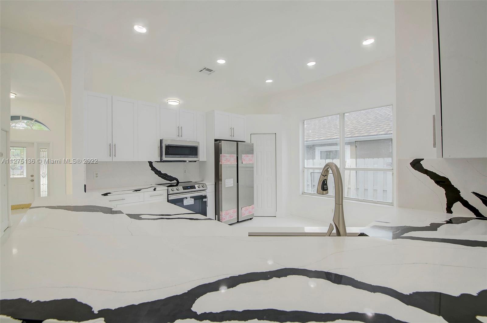 Beautiful triple way split 4 bedroom, 3 full bath in the desirable resort style community of Pembroke Falls. Featuring a modern kitchen with quartz countertop and all new appliances, modern bathrooms, and freshly painted interior, this home is move in ready. Enjoy the endless amenities, such as a state of the art recreation center, large pool, children's play areas, tennis courts, basketball courts, gym, and much more. Association fee includes internet, cable, landline, ADT alarm and much more. Centrally located within minutes of I75, shopping, dining and much more.