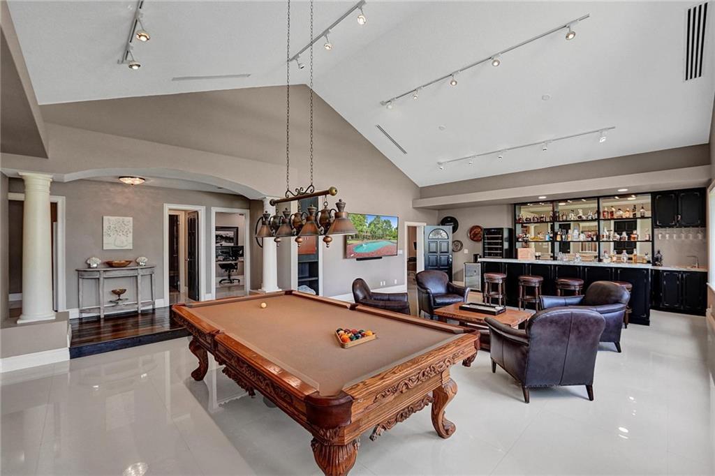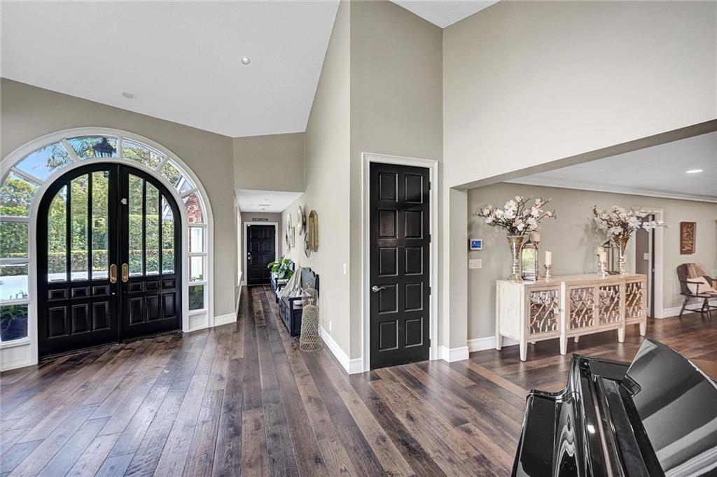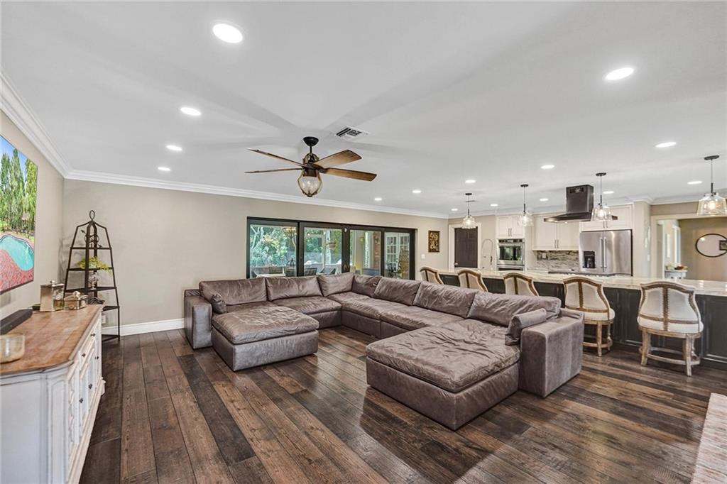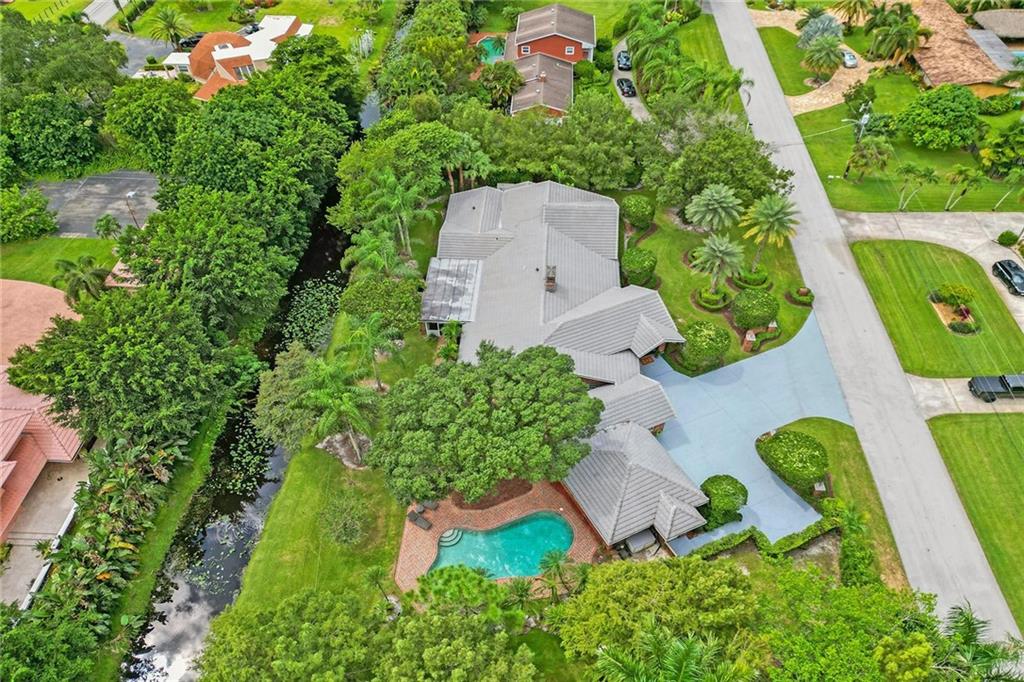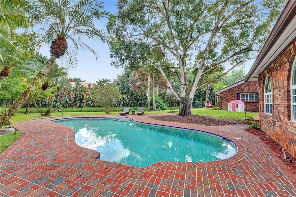 Located in affluent Plantation Acres, this fully remodeled, sprawling single-story estate is perfect for large families and entertaining. The grand foyer opens into massive living and dining areas, a brick fireplace and a stunning remodeled kitchen. The 90sqft kitchen island boasts back to back custom cabinetry, a gas range and plenty of seating. The expansive entertainment room features huge arched windows and a custom built-in bar complete with ice maker, sink and drink cooler. The split floor plan includes two primary suites, updated bathrooms, sauna, walk-in custom closets and a den/office with private entrance. The gorgeous, well-kept property features a 20kw generator, large screened porch, freeform pool, brick patio, tiki hut with wood deck and BBQ, fire pit, tree house, and more.