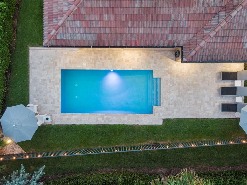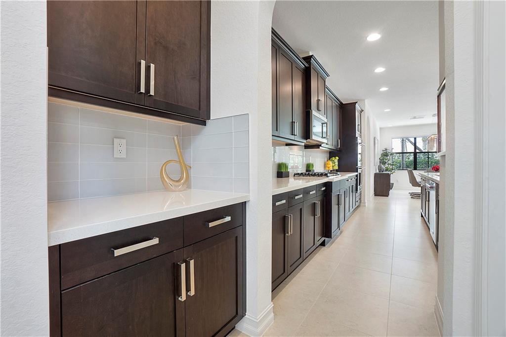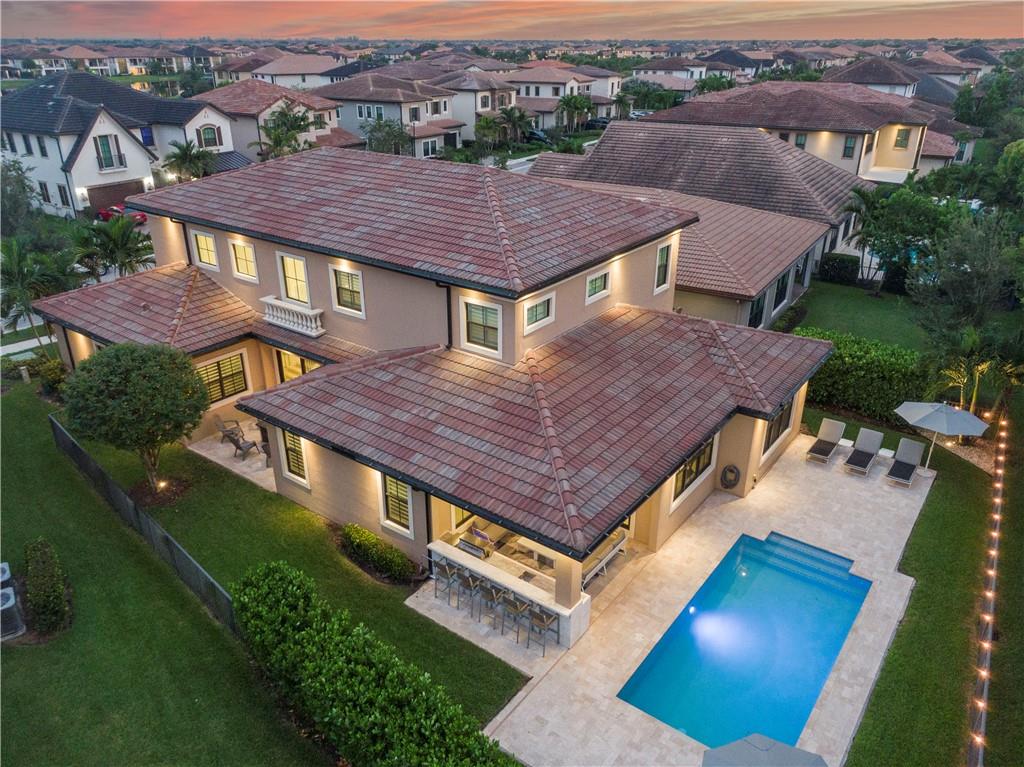 This modern luxury Danbury Model with 5 Beds/5 full & 1 half bath + Oversized Loft. 5th Bedroom is used as an Office/ guestroom w/Custom Built-In desk & queen size Murphy bed, has its own en suite bath. Features include a gas heated pool, marble summer kitchen, mosquito misting system & sound system perfect for entertaining outdoors! This stunning home includes indoor/outdoor security cameras, soffit and landscape lighting, extended driveway, & 3-CAR TANDEM GARAGE perfect for a boat or other "toys." Professionally decorated w/ Norman plantation shutters & Allures, wallpaper accents, custom wall mirrors, designer light fixtures, & LED lights. Highly sought after Watercrest has guard gated security, fitness center, doggy park, basketball/tennis, pool/spa & A+ schools.