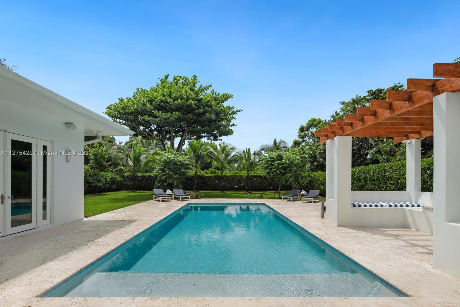 Modern luxury living at its best. Built in 2015 with exceptional attention to detail. Designed around dramatic 16' ceiling great room and Porcelanosa kitchen with 15' Krion waterfall island, top of the line appliances from Wolf Miele and Subzero. Excellent floor plan including downstairs master suite. Five-bedroom layout with den/gym that could easily work as sixth bedroom. Covered terrace with motorized mosquito screen, beautiful pool, large private back yard, summer kitchen and 3-car garage. Visser custom built closets and Sonos music system throughout. Set back in gated deep 28,314 sq ft lot with mature trees. This custom green home was built to LEED Silver certification standards. Full house generator. Great location – close to everything.