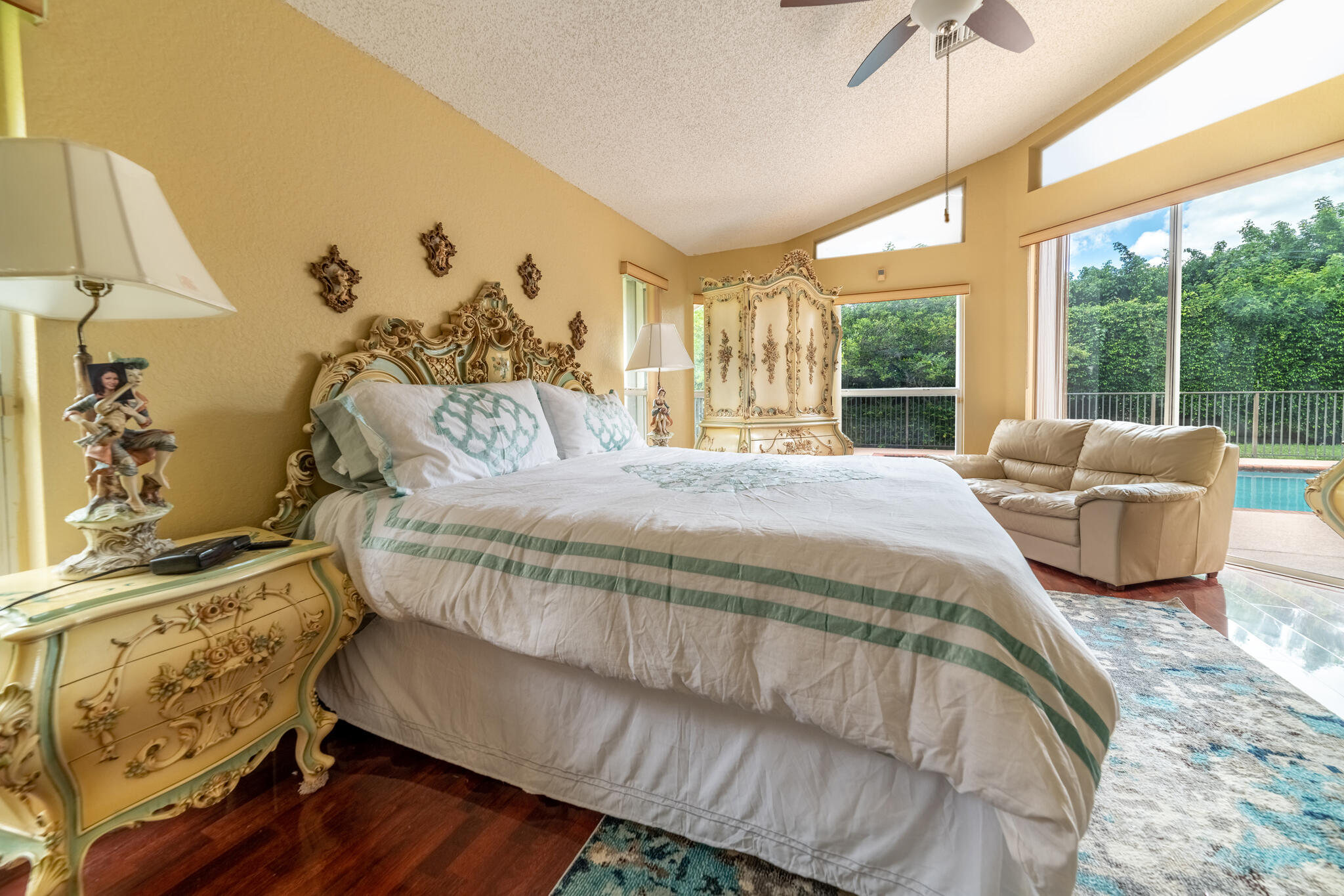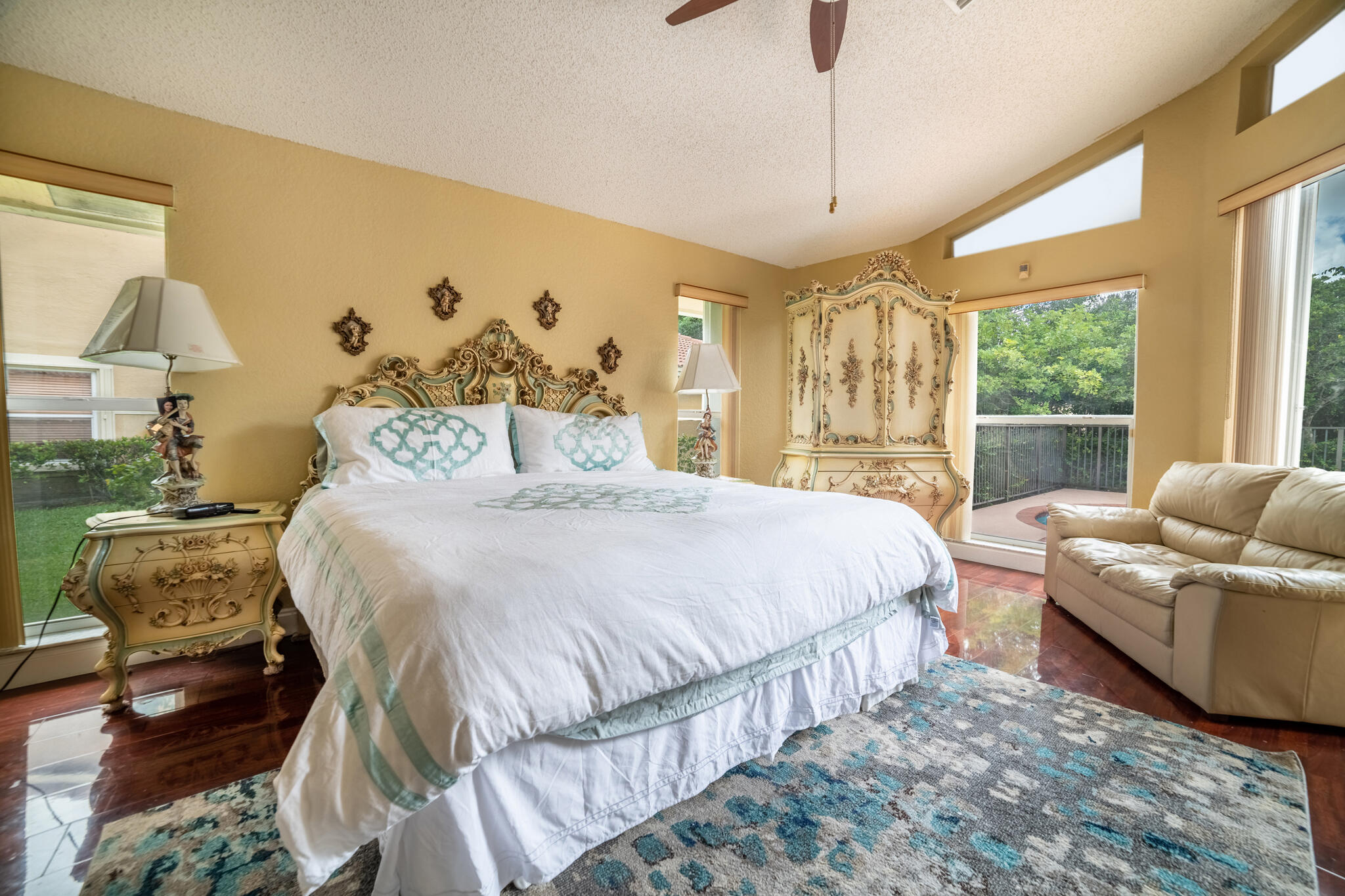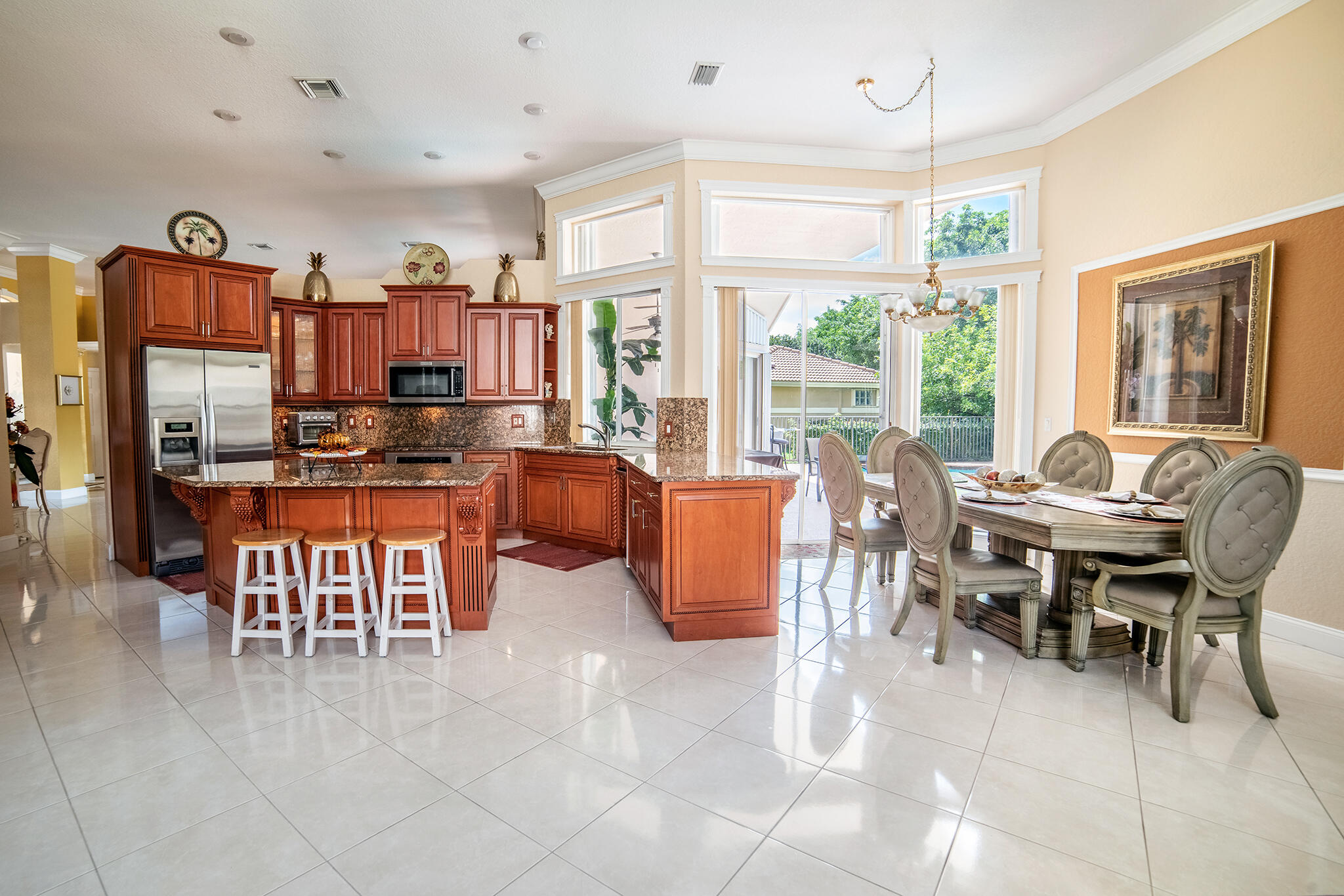 HERE IS A BEAUTY! OWNERS HAVE PRICED TO SELL! Wood and tile flooring throughout property. Kitchen has custom cabinetry, granite, stainless steel appliances and S-tile. Home has accordion shutters and crown moldings throughout living area as well as beautiful fabric window treatments. Immaculate home; owners have taken good care of space. Open living space with generous family room & kitchen area. VOLUME CEILINGS THROUGHOUT- A MUST SEE HOME!